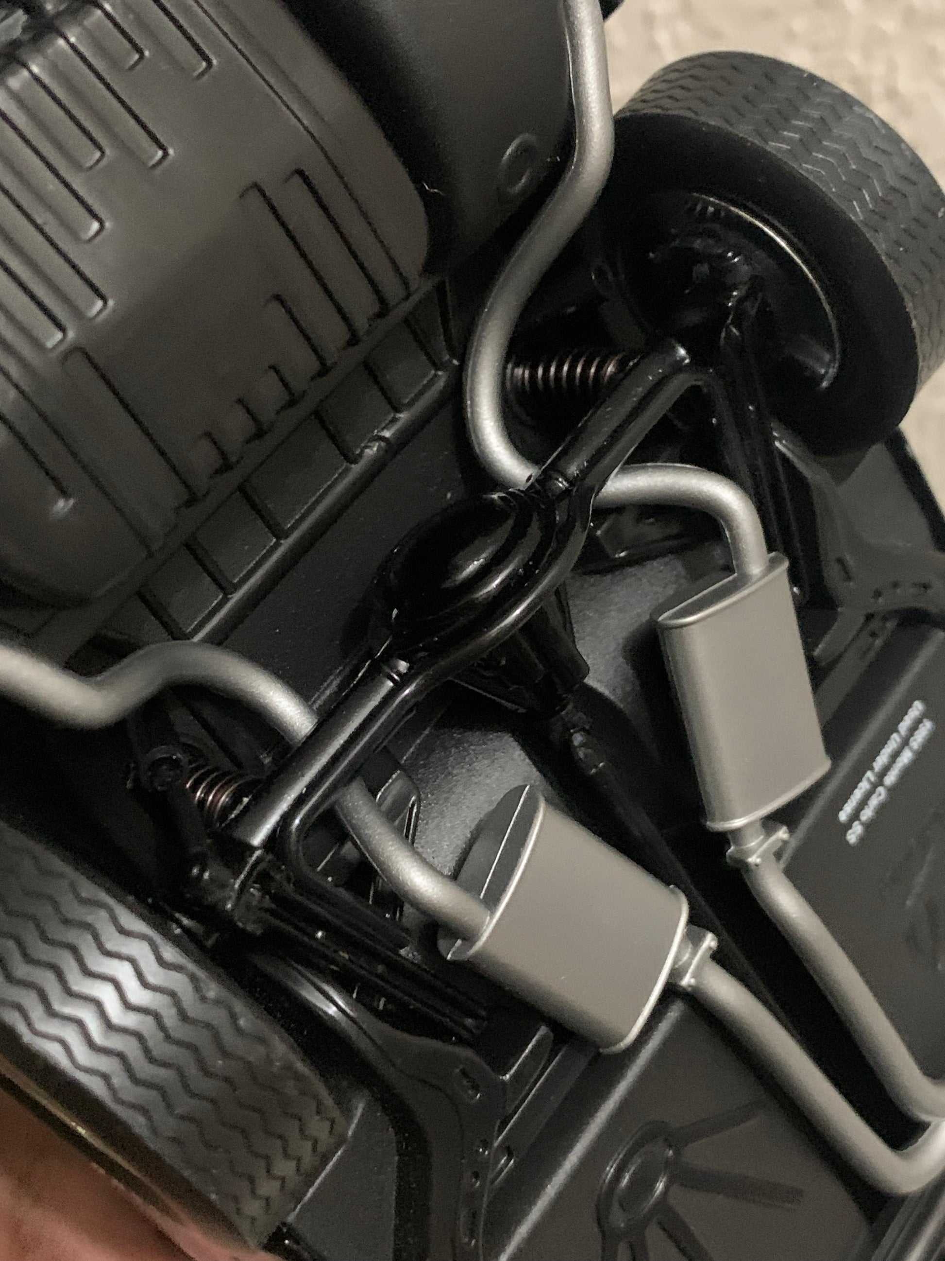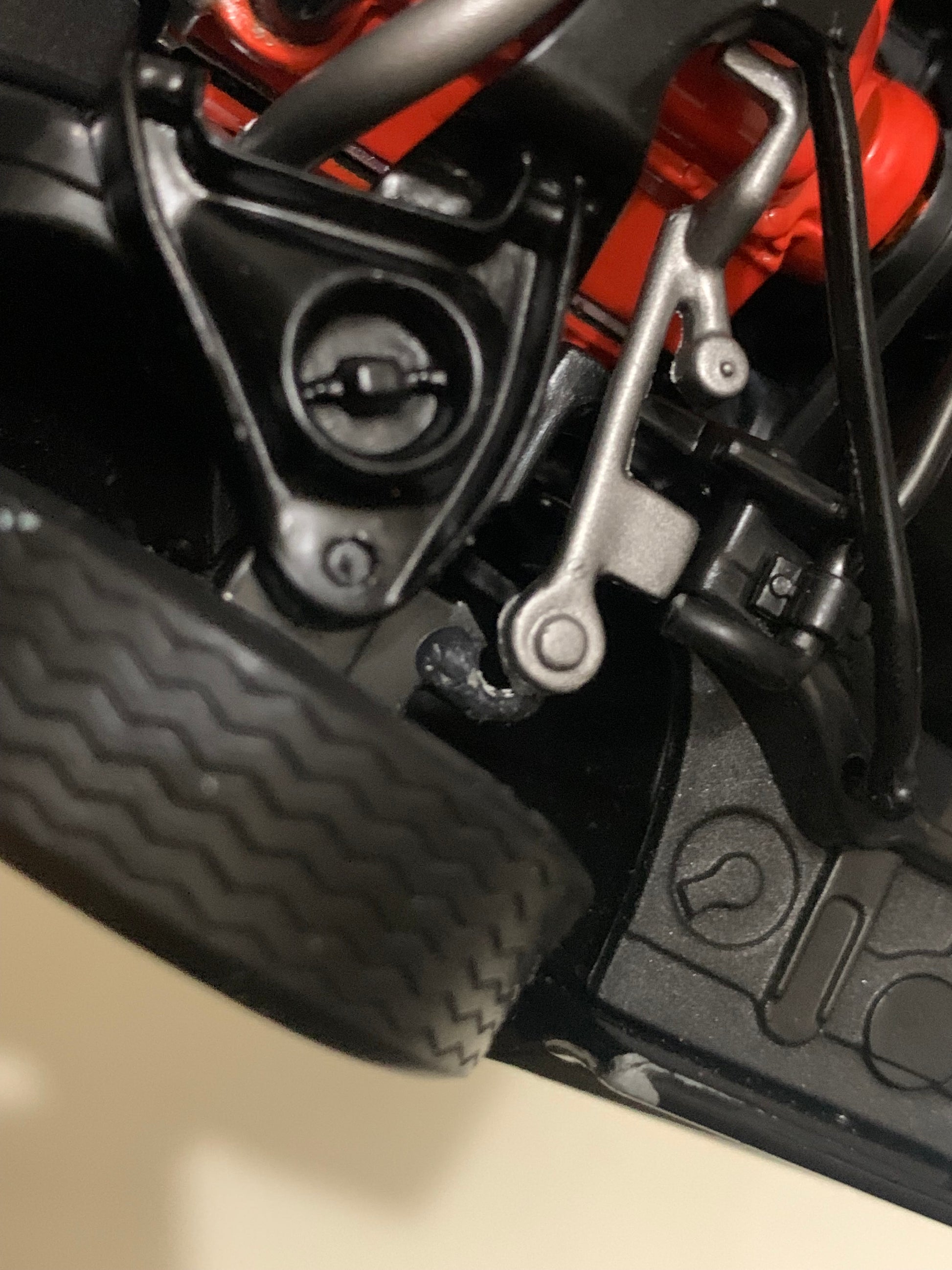 - The box can still be displayed and is in fair shape but shows lots of shelf wear and is not in mint condition but still nice enough to display the car in the box in a collection. The car overall is in nice condition but came with some imperfections when I purchased it. There is a broken knuckle that connects the driver rim to the steering linkage that needs to be glued, easy fix. I included a little video showing this clearly. The paint is overall nice but up close you'll notice some very slight hazing in a couple areas. The side mirrors were removed prior to me getting the car and need to be glued back on as is or after paint etc. A portion of the antenna is missing. There are some micro scratches here and there, but the car shows and displays very nicely as you can see from the photos, I'm just telling you exactly what I see, no surprises.