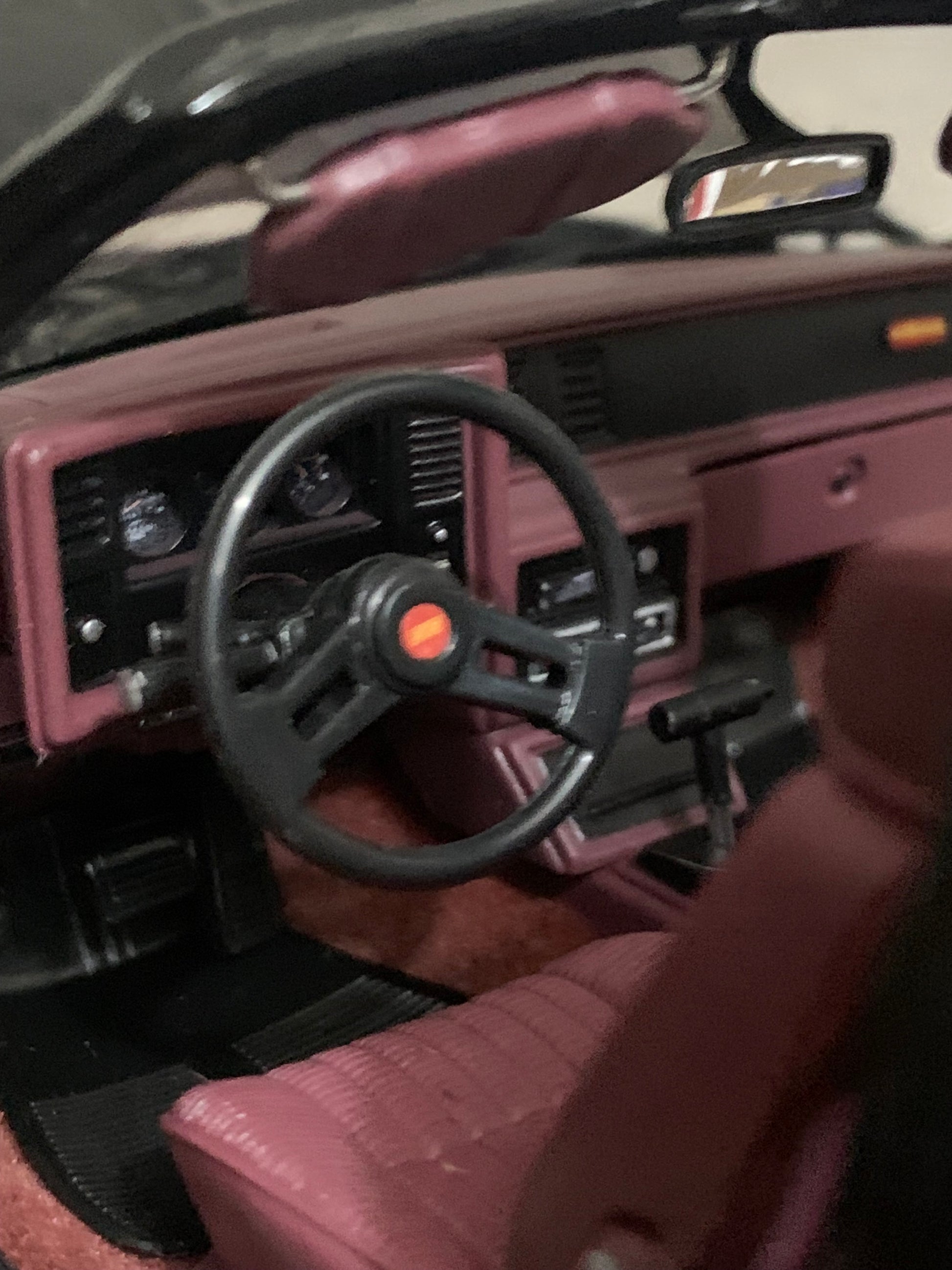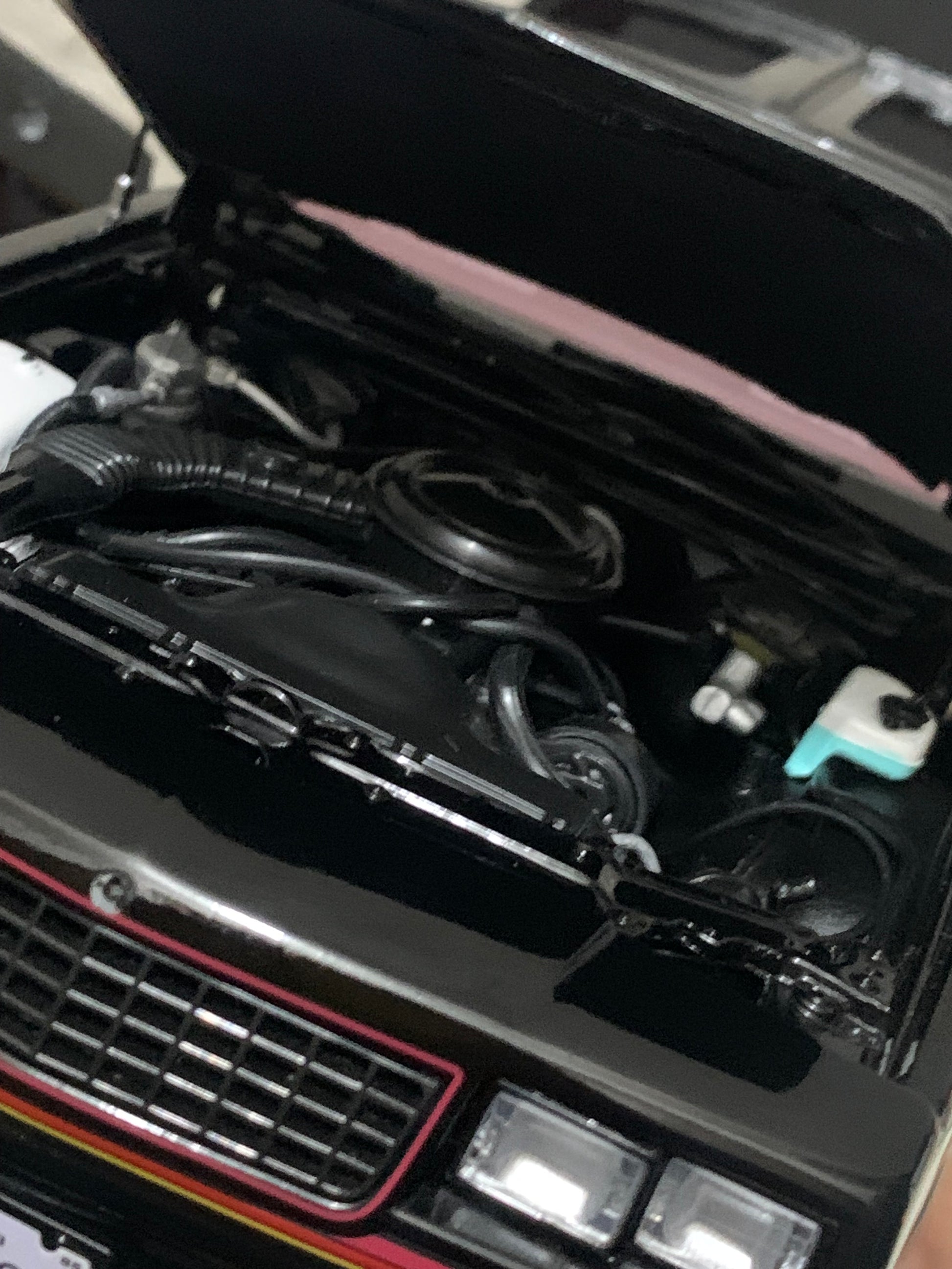 - I love these models; they are so detailed it's crazy for real. The engine bay, the interior and trunk areas are highly detailed, and they didn't miss one detail I swear. I truly wish I had the time to paint this car and add a set of big rims on it but, work calls. The T-tops are in mint shape, and both are stored in the GM T-top covers that reside in the trunk. Look at that interior and trunk detail y'all, crazy!!!