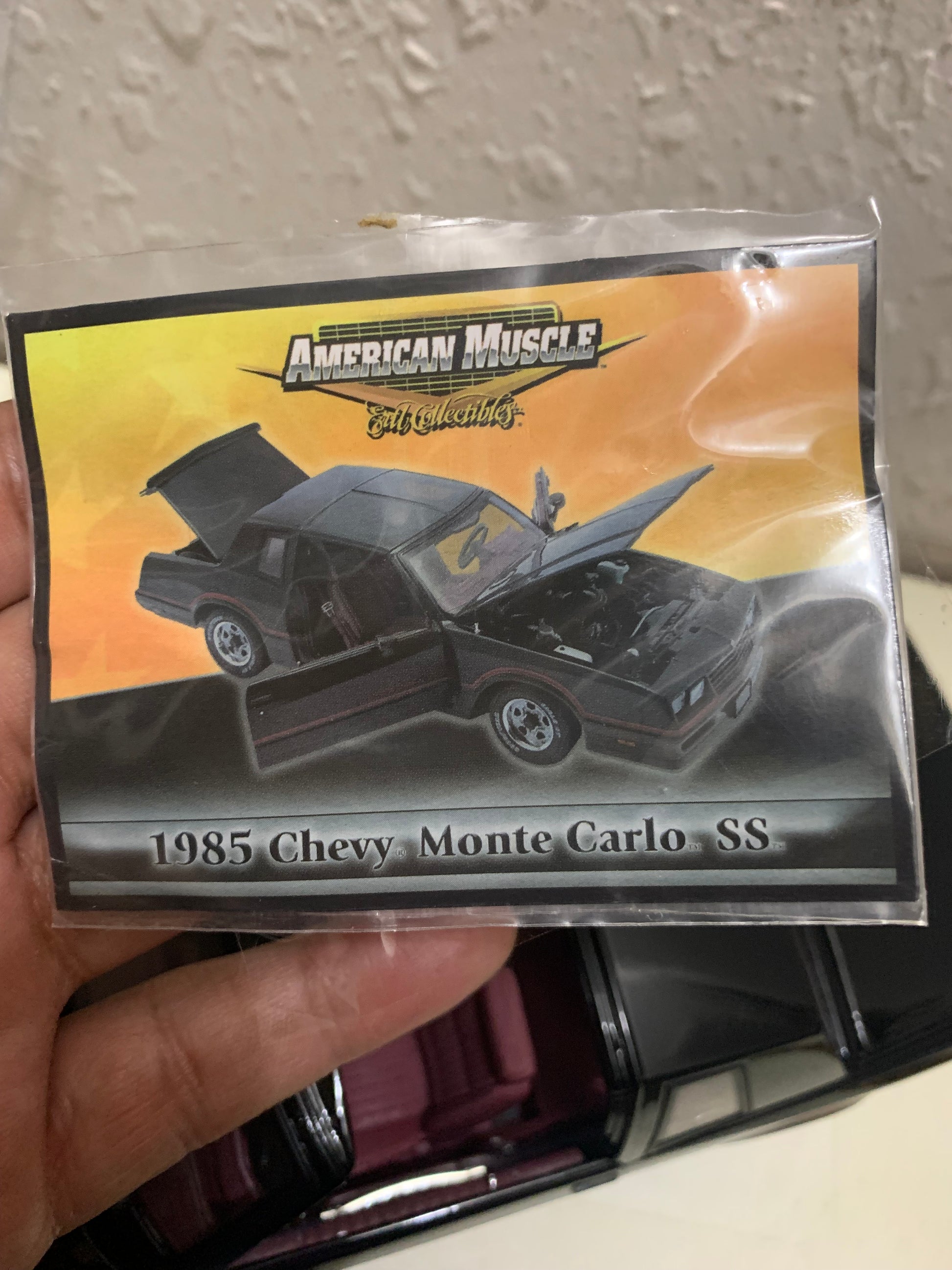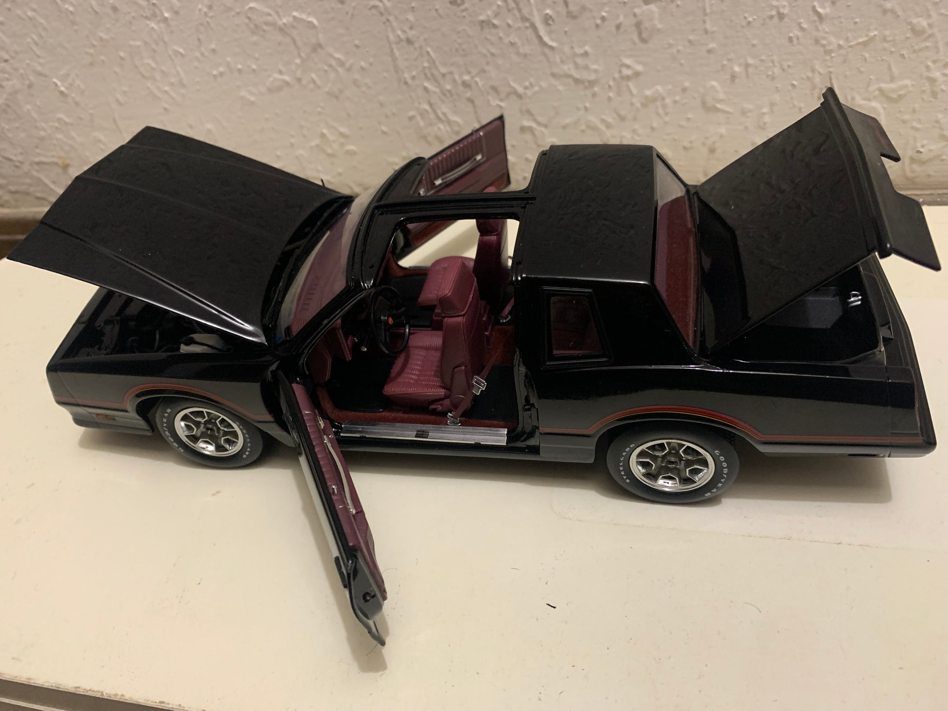1/18 scale American Muscle Authentics '85 Chevy MC SS t-top die-cast model car. Condition is used. This is NOT brand new in the box. I picked this car up a couple years ago to fully customize, paint, rims, interior, trunk audio etc but due to work I just don't have time to do all he builds I would like to as business and customers come first. I figured another fellow builder would appreciate the opportunity as these are getting harder to come by and demanding some steep prices. This one is not mint in a sealed box so I'm offering it for well below current market value. If you've been wanting one for your collection but for a cheaper price this is for you. If you're a flipper, this is a perfect car for you, great room for profit potential after some paint and rims or whatever you choose.