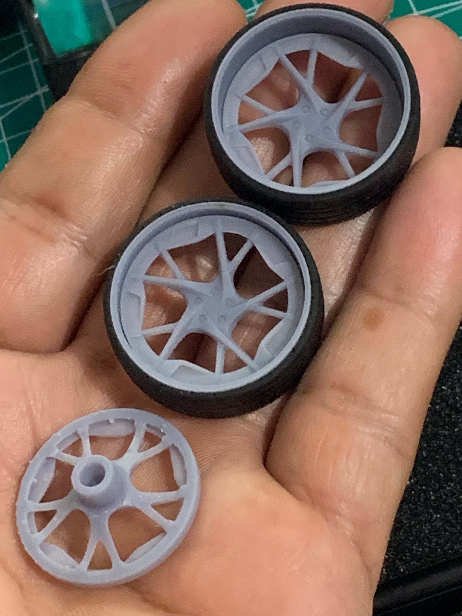 -3D printed resin wheels & tires for a 1/25 scale.