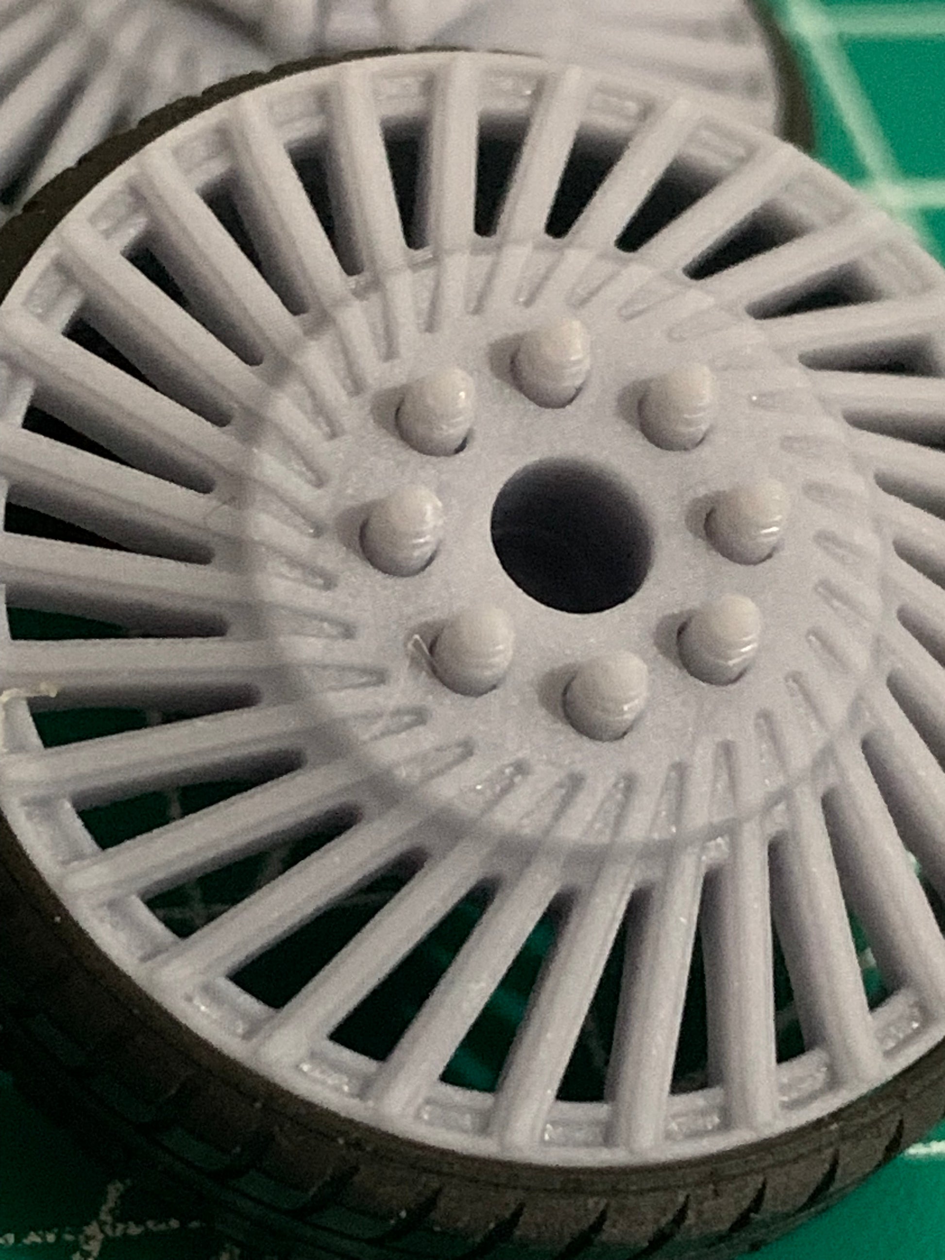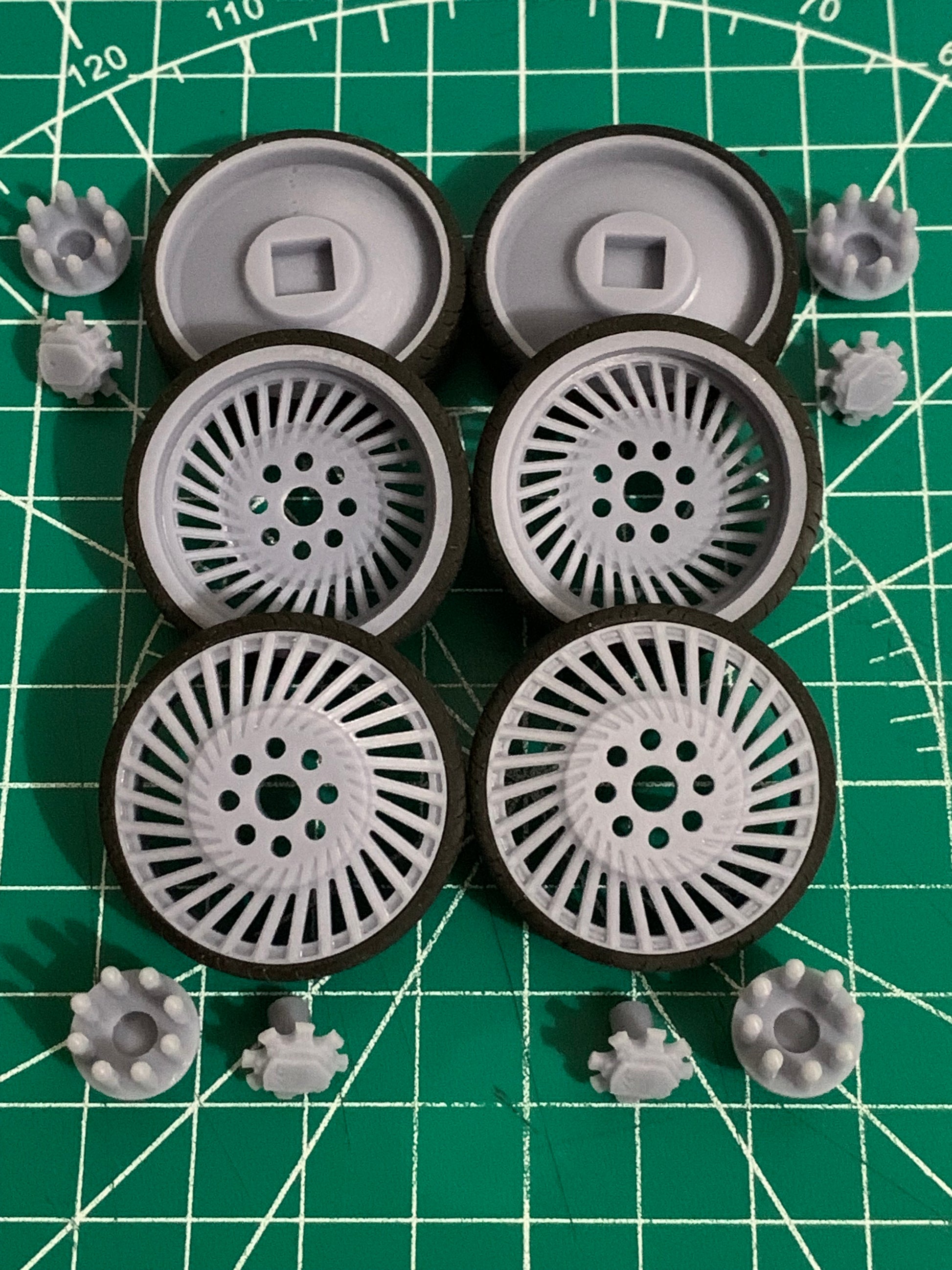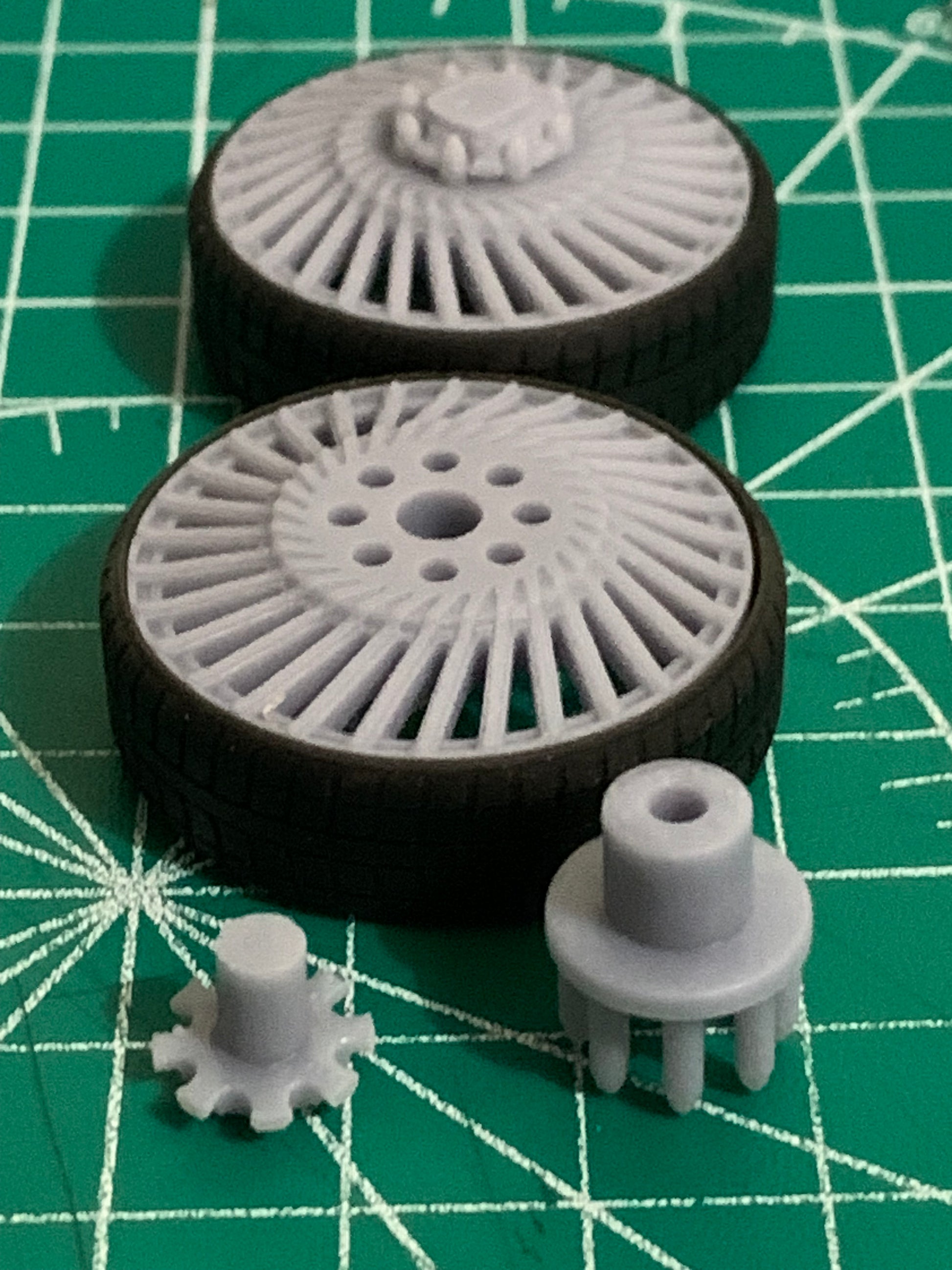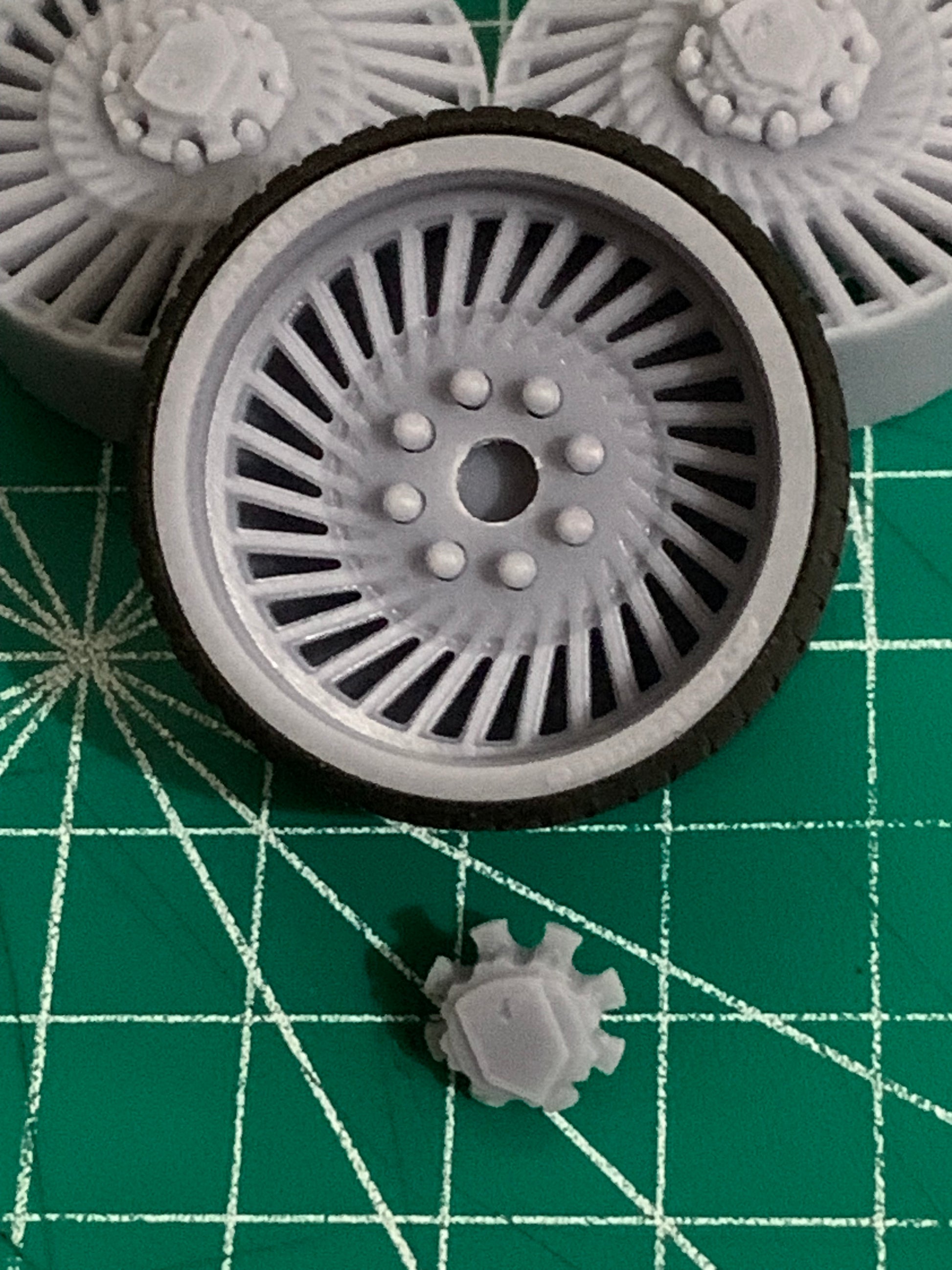 - 3D printed resin wheels & tires for a 1/25 scale model.