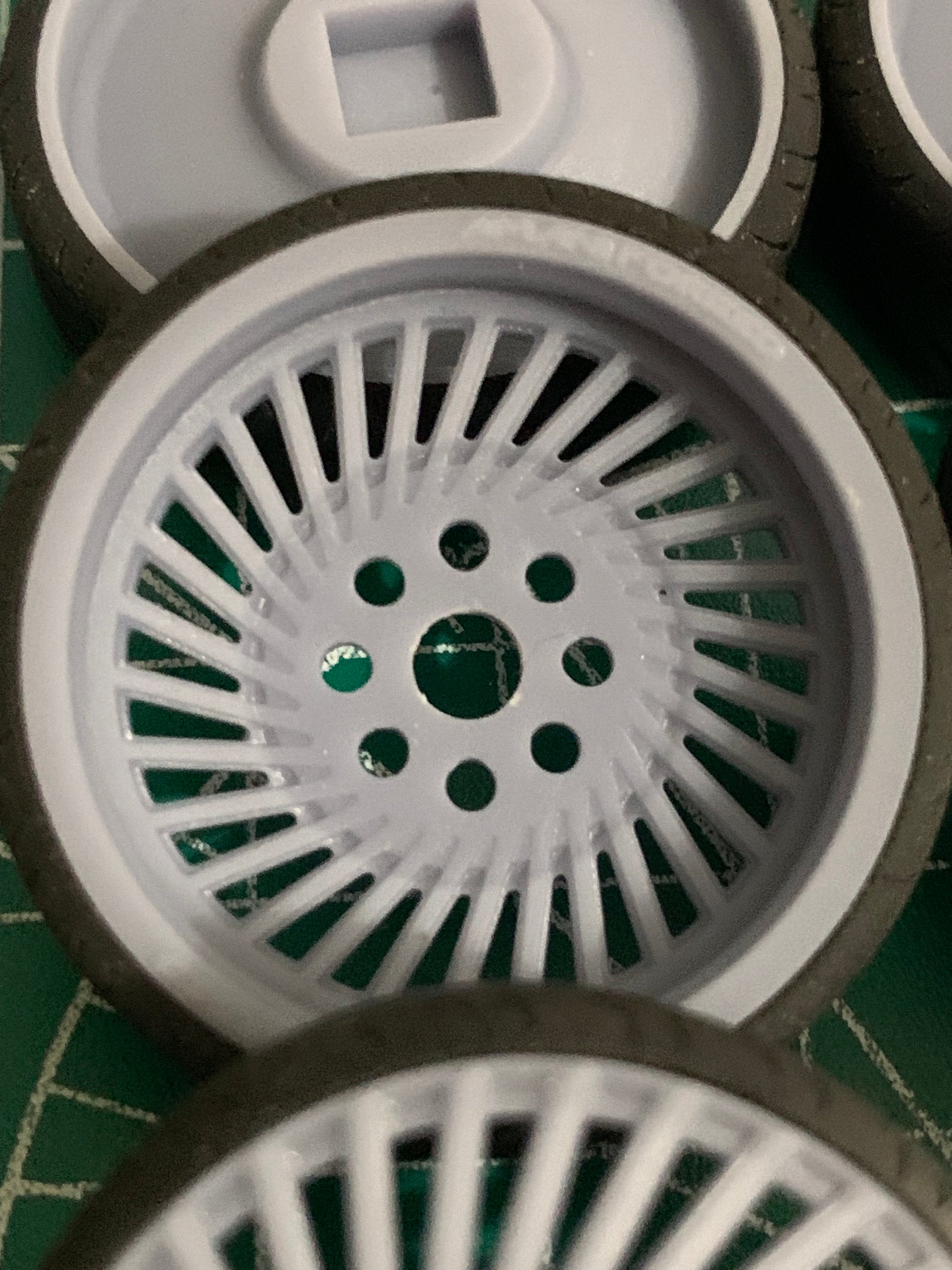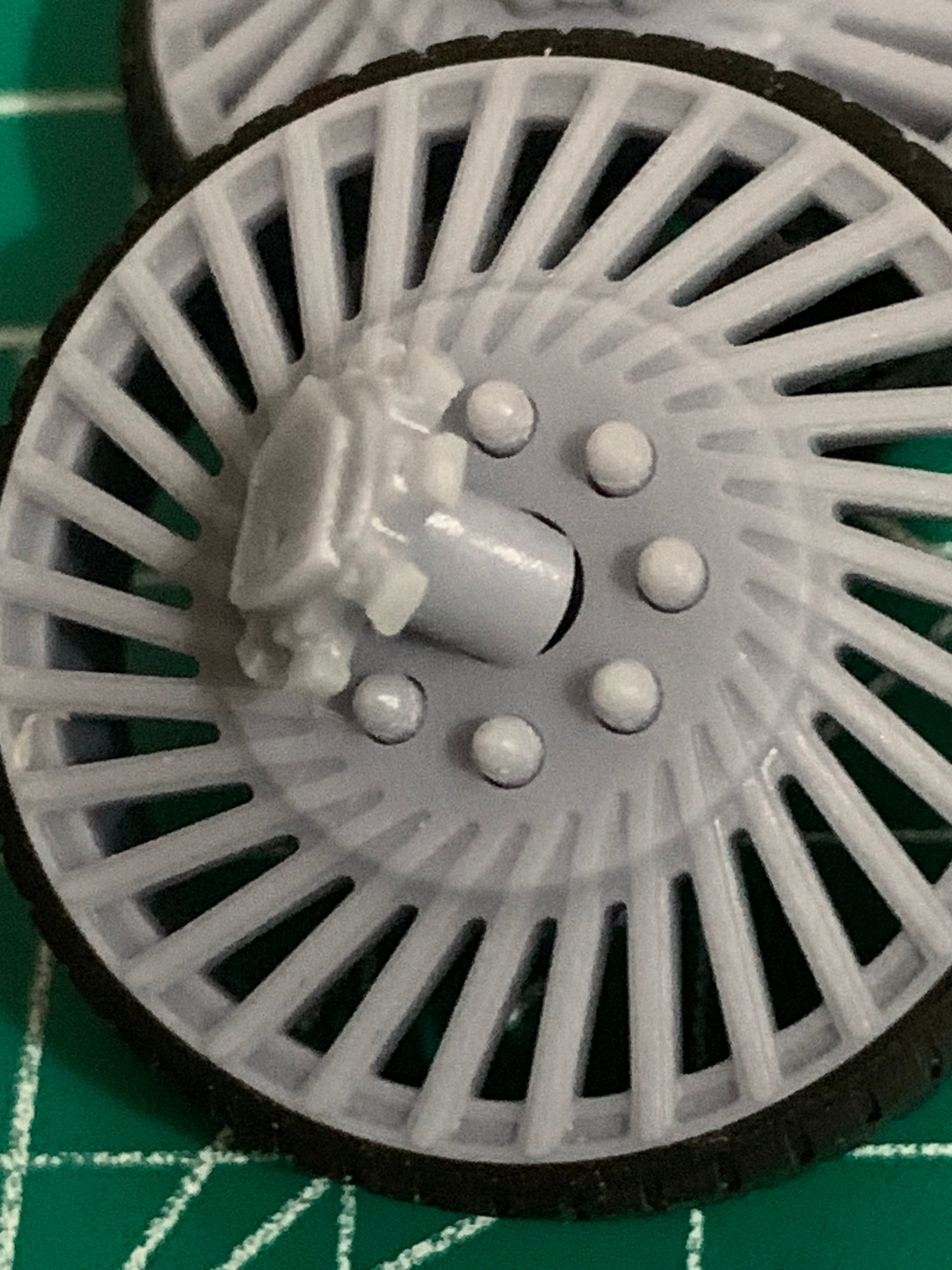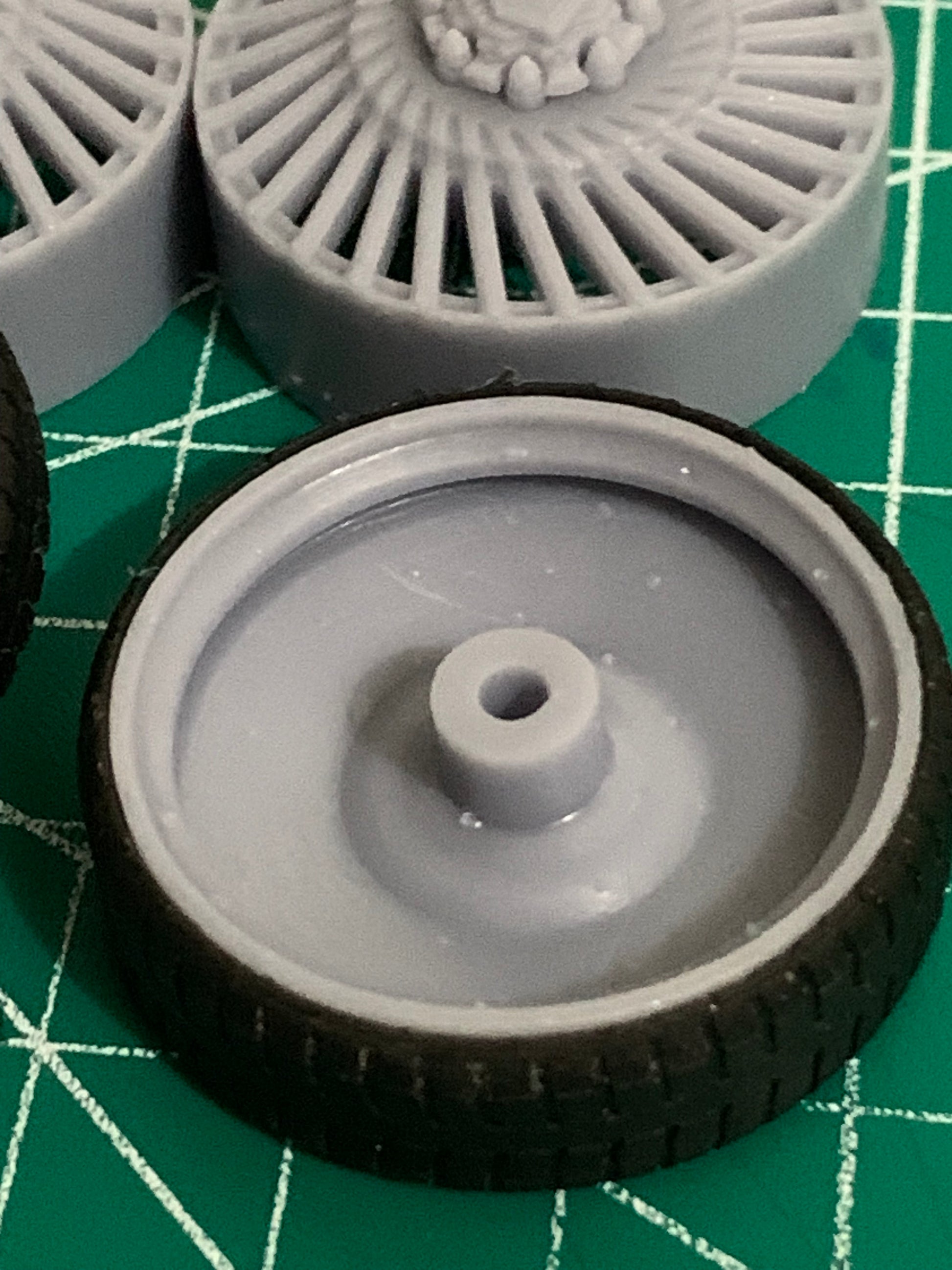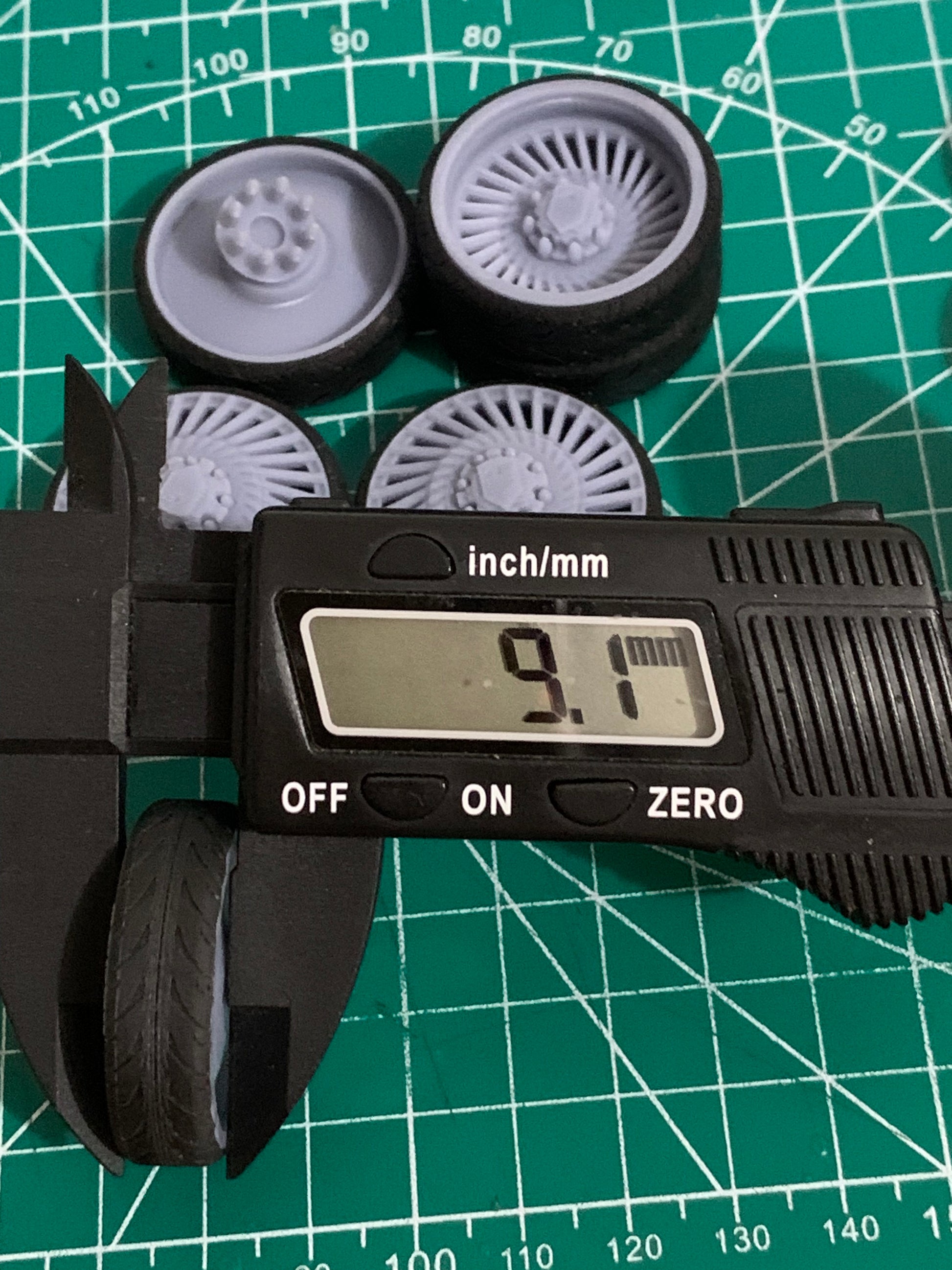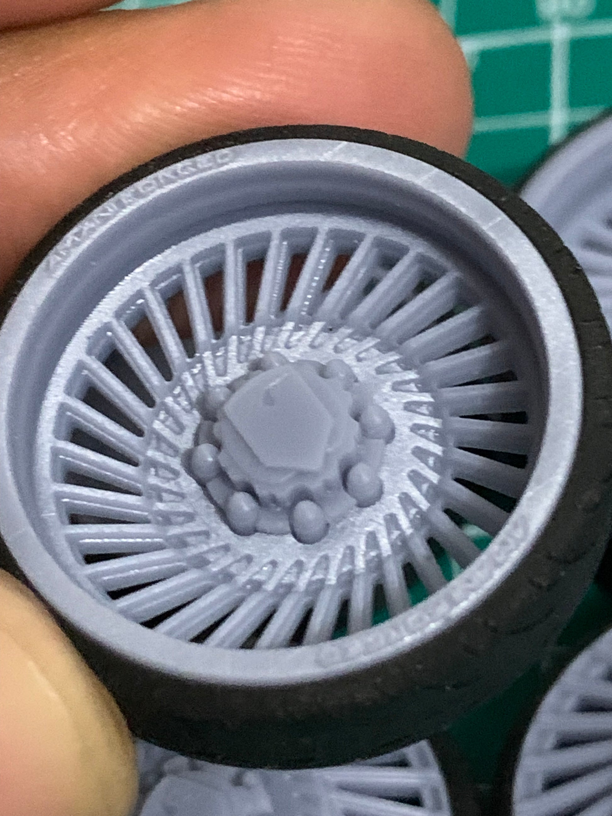- 3D printed resin wheels & tires for a 1/25 scale model.