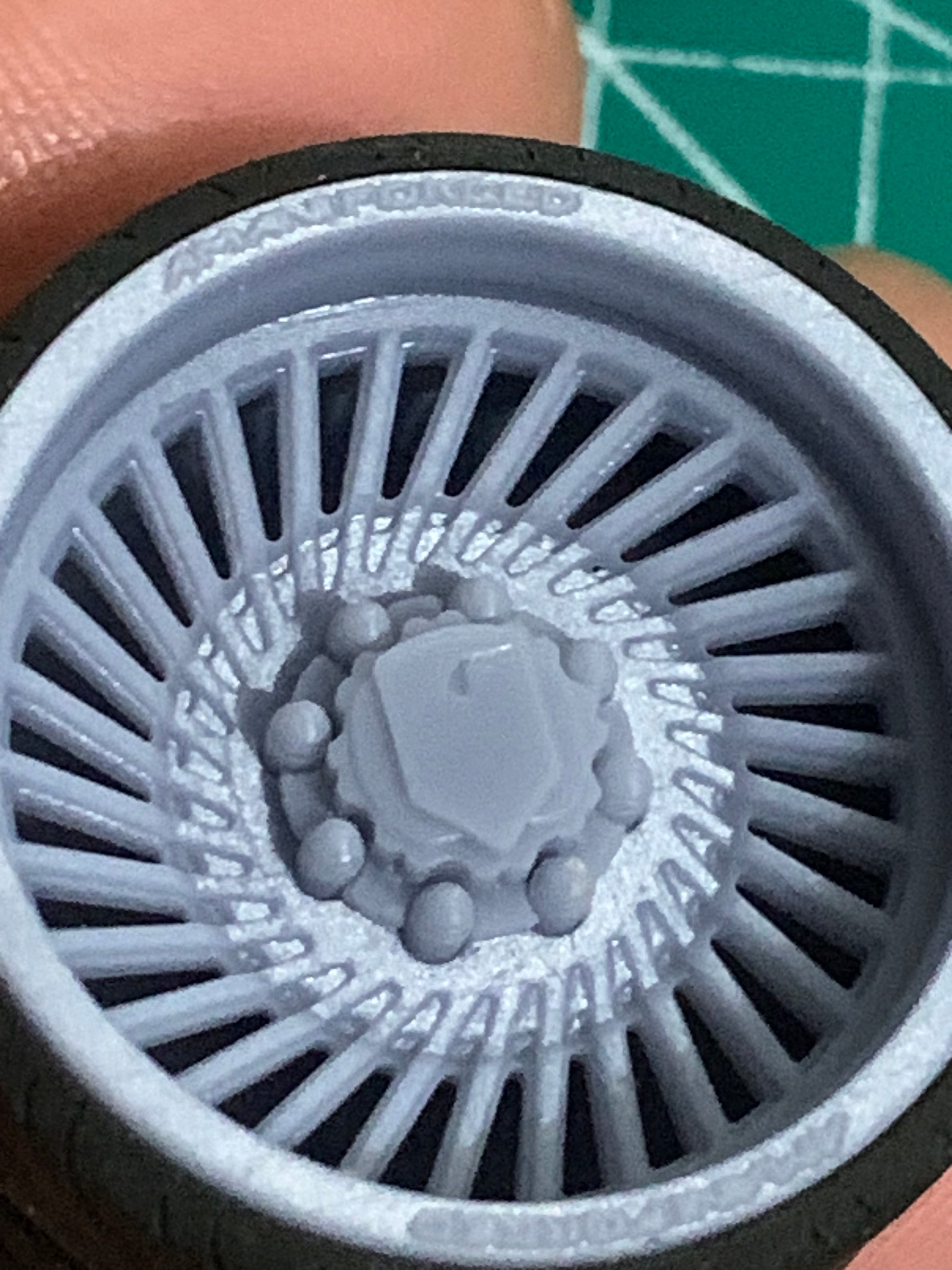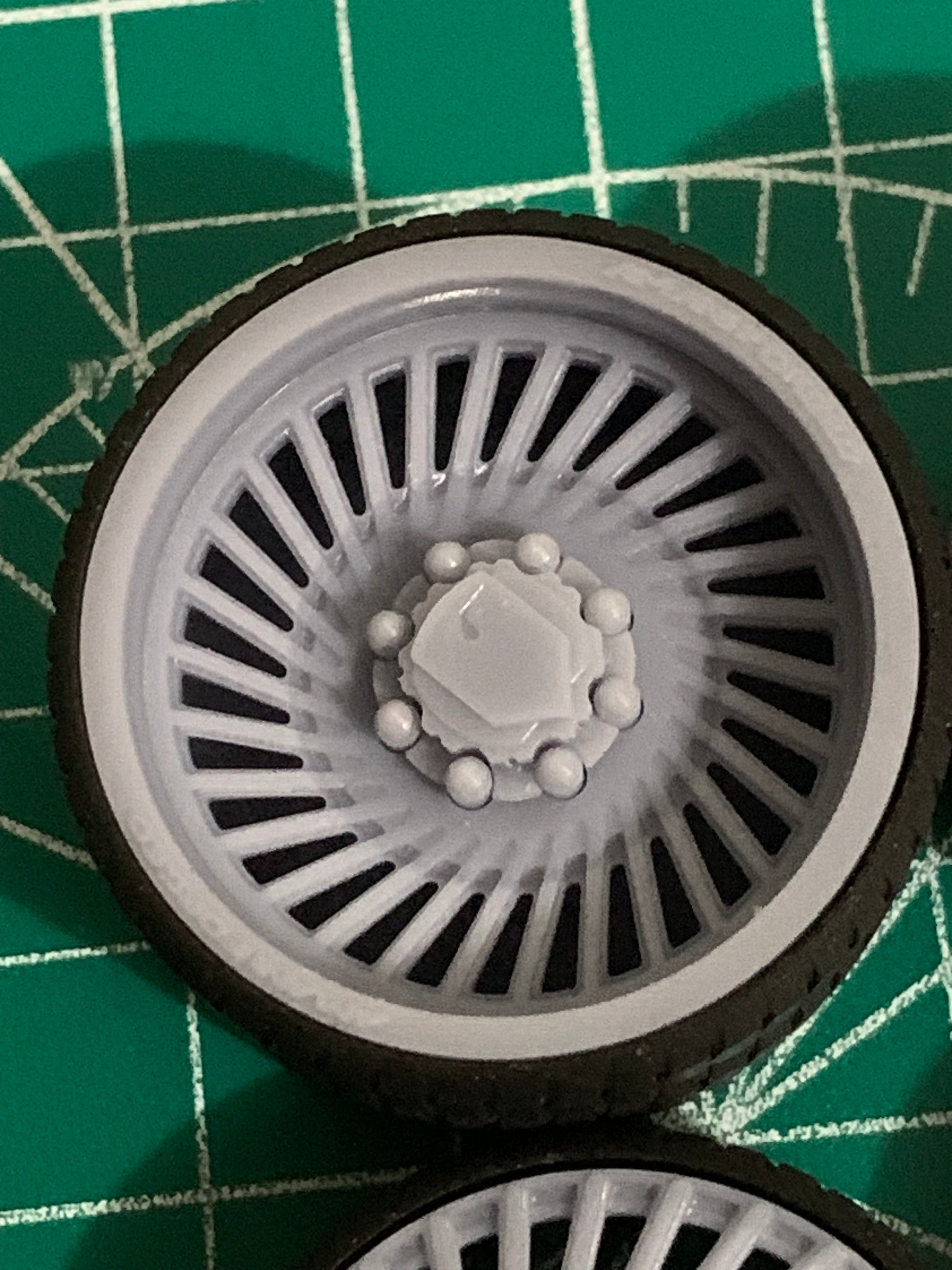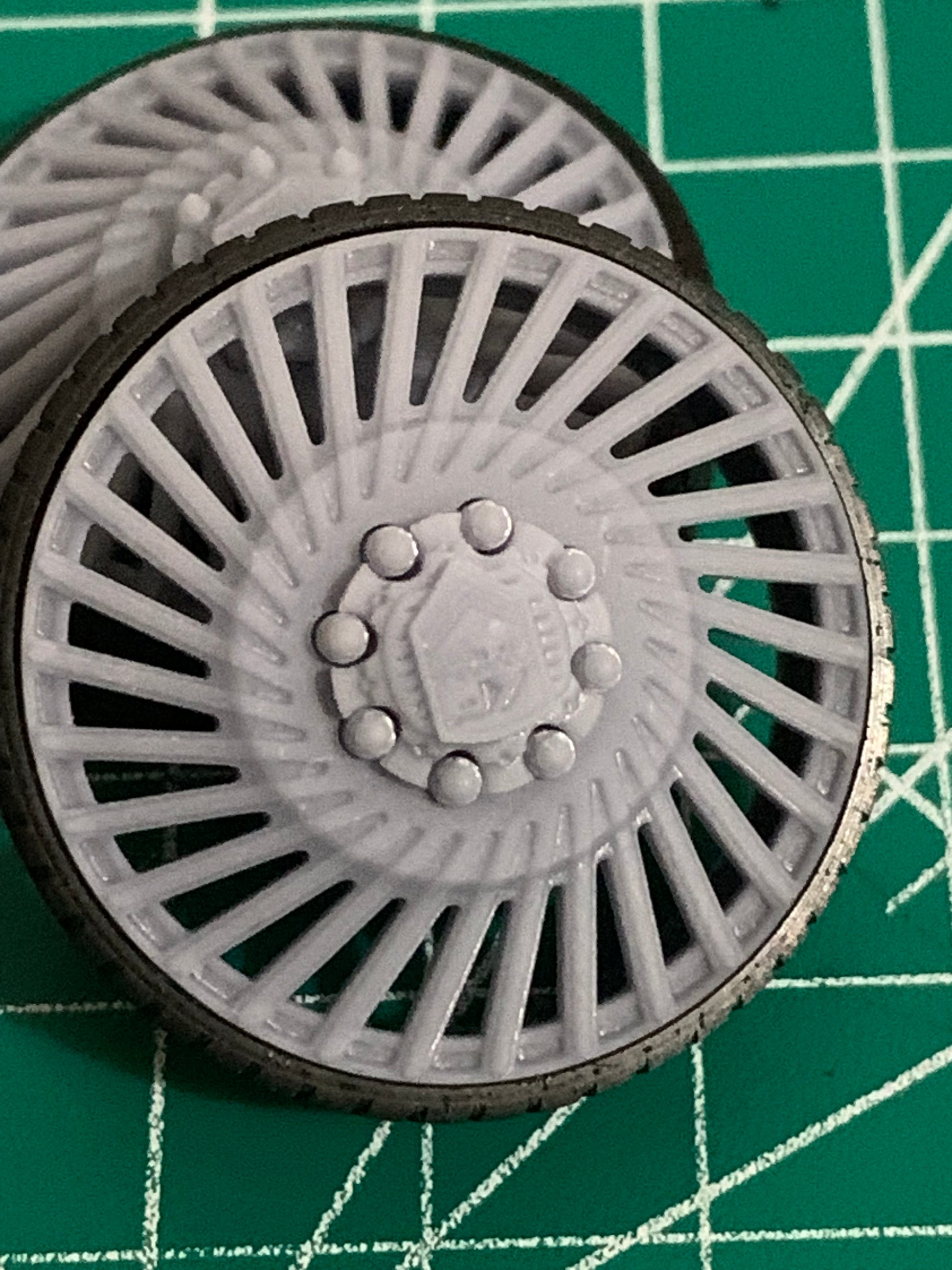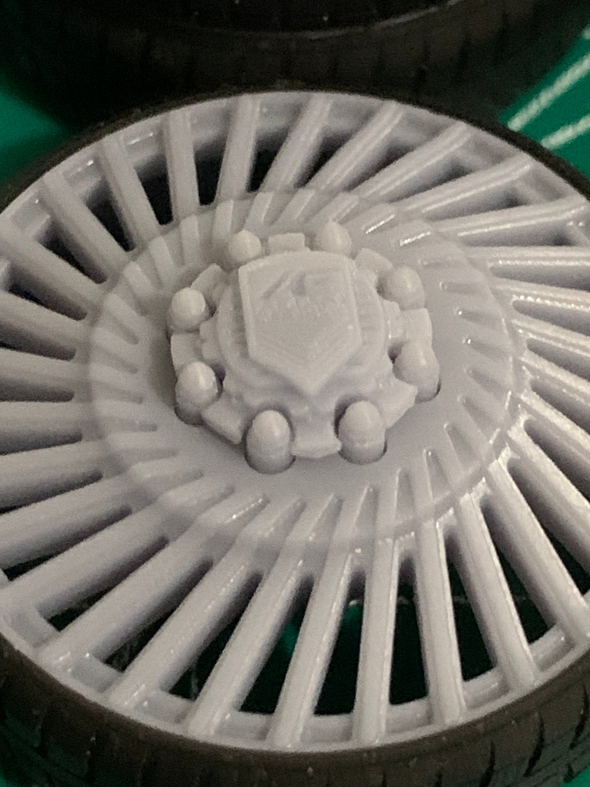 - 3D printed resin wheels & tires for a 1/25 scale model.