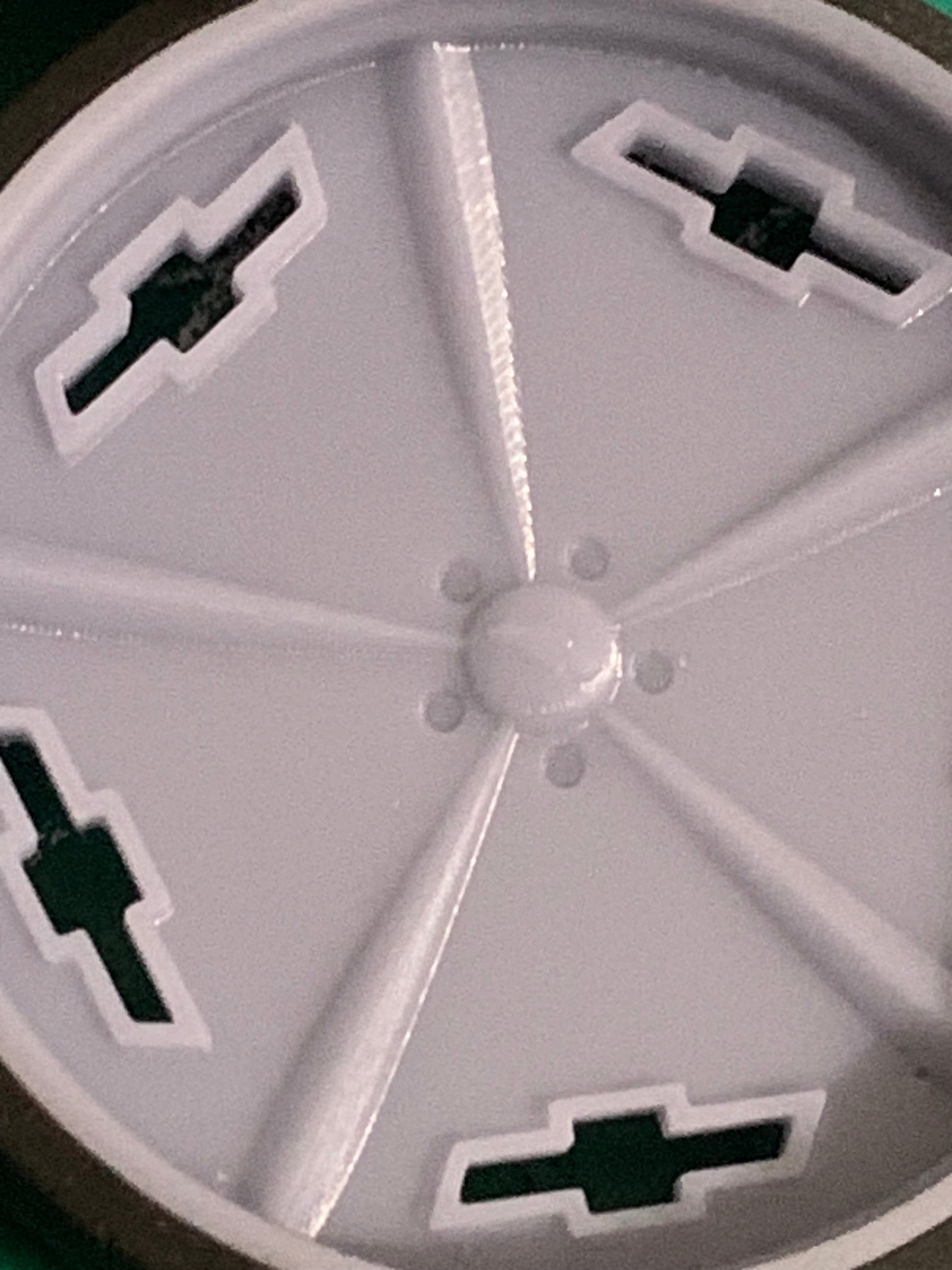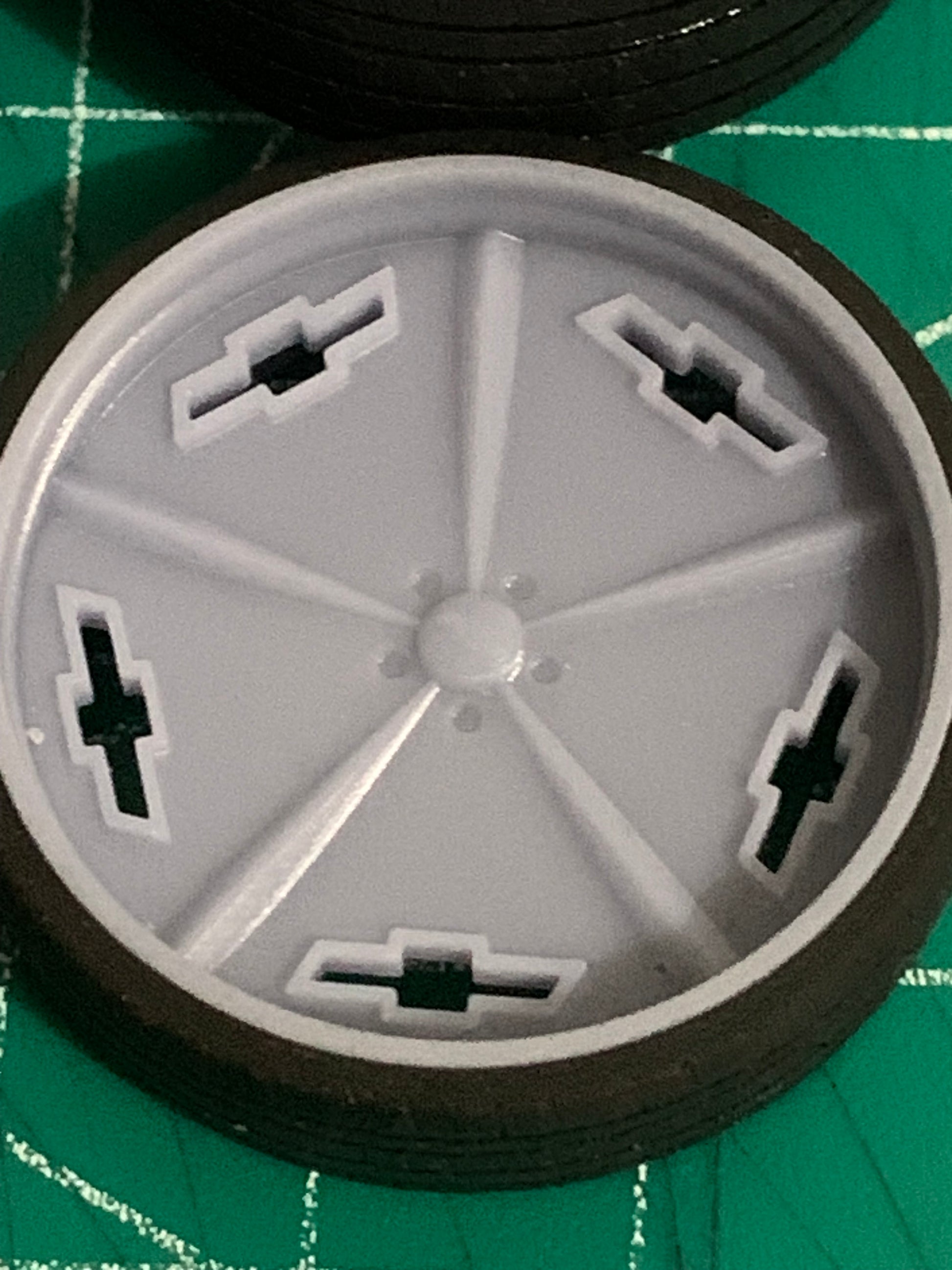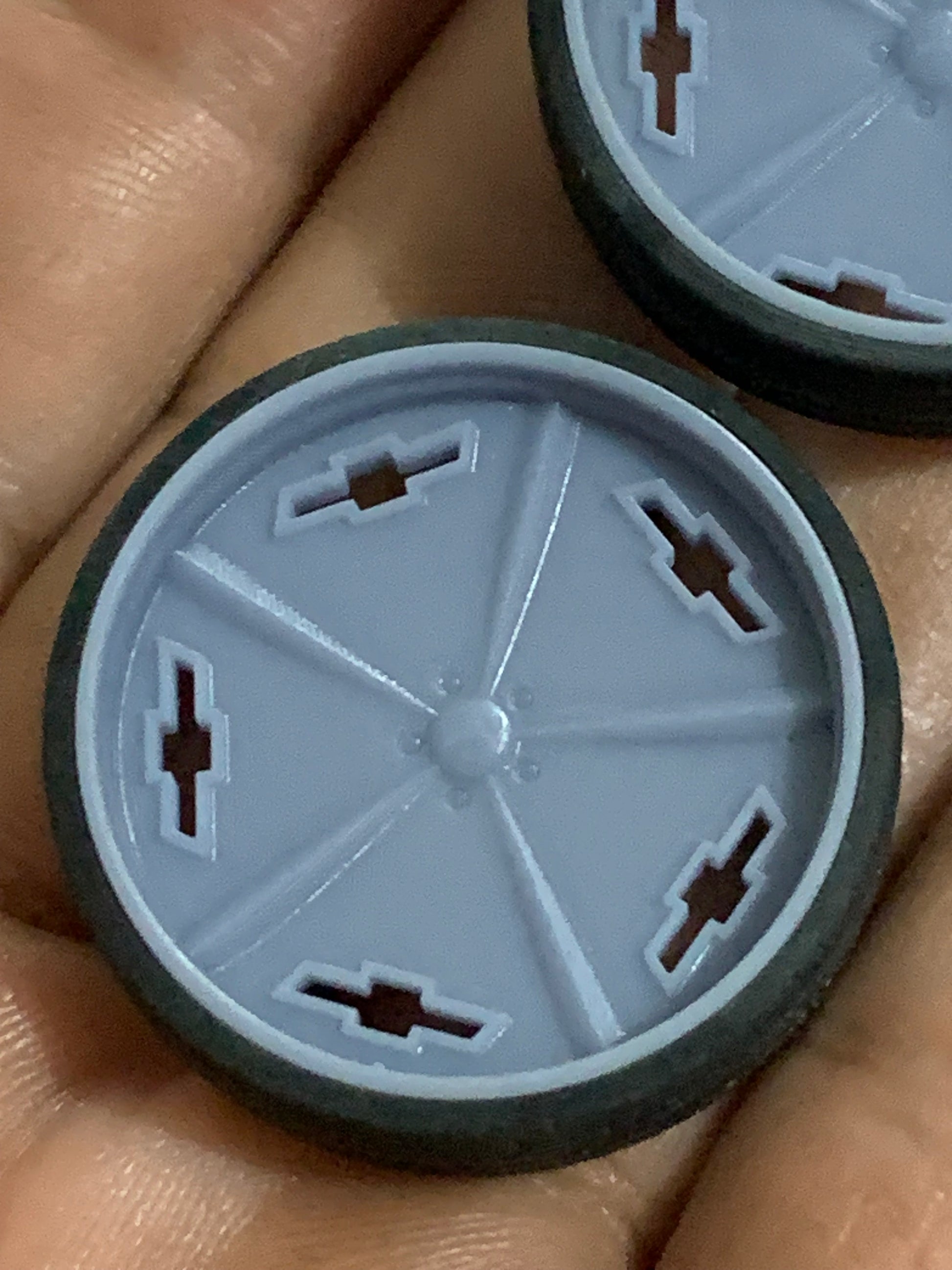 - 3D printed resin wheels & tires for a 1/25 scale.