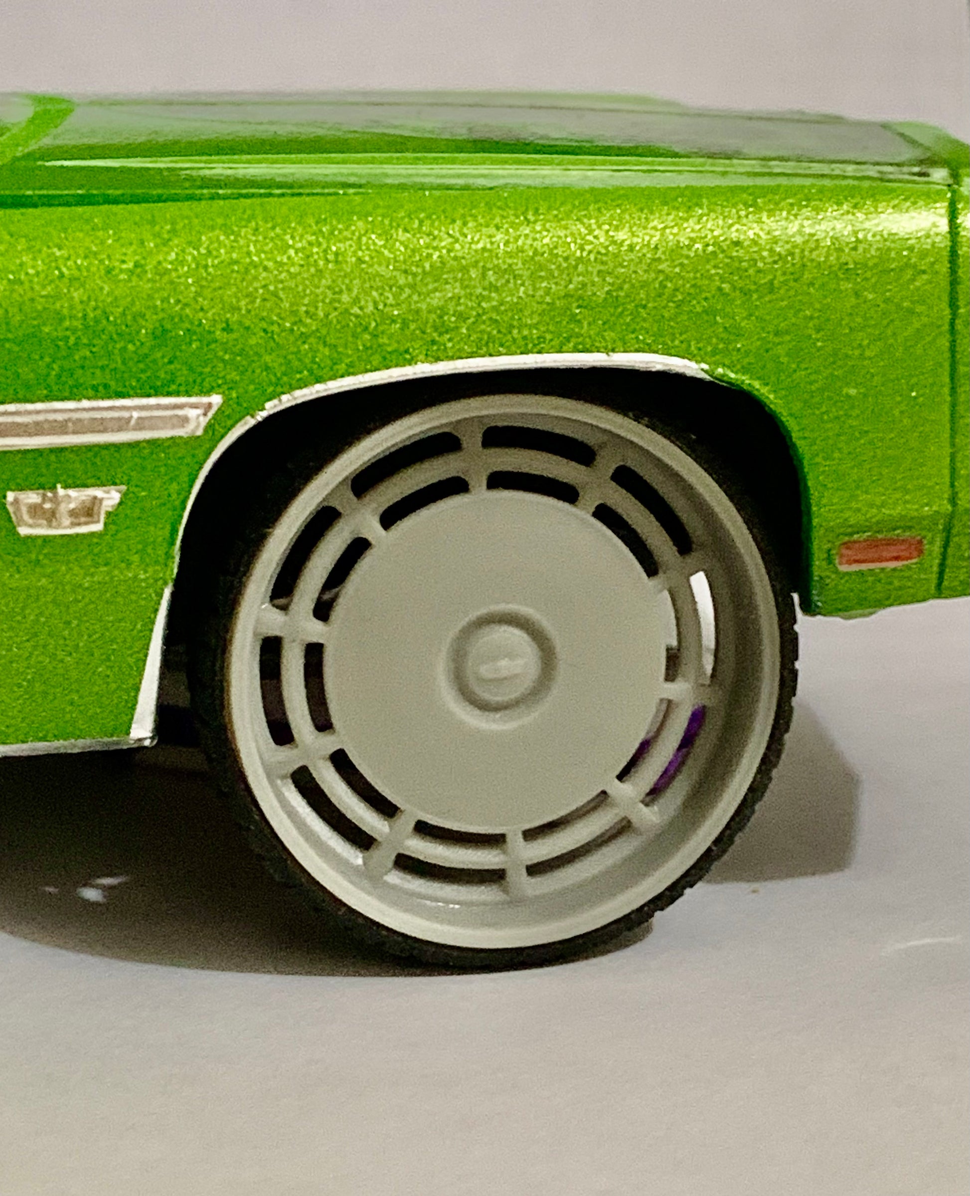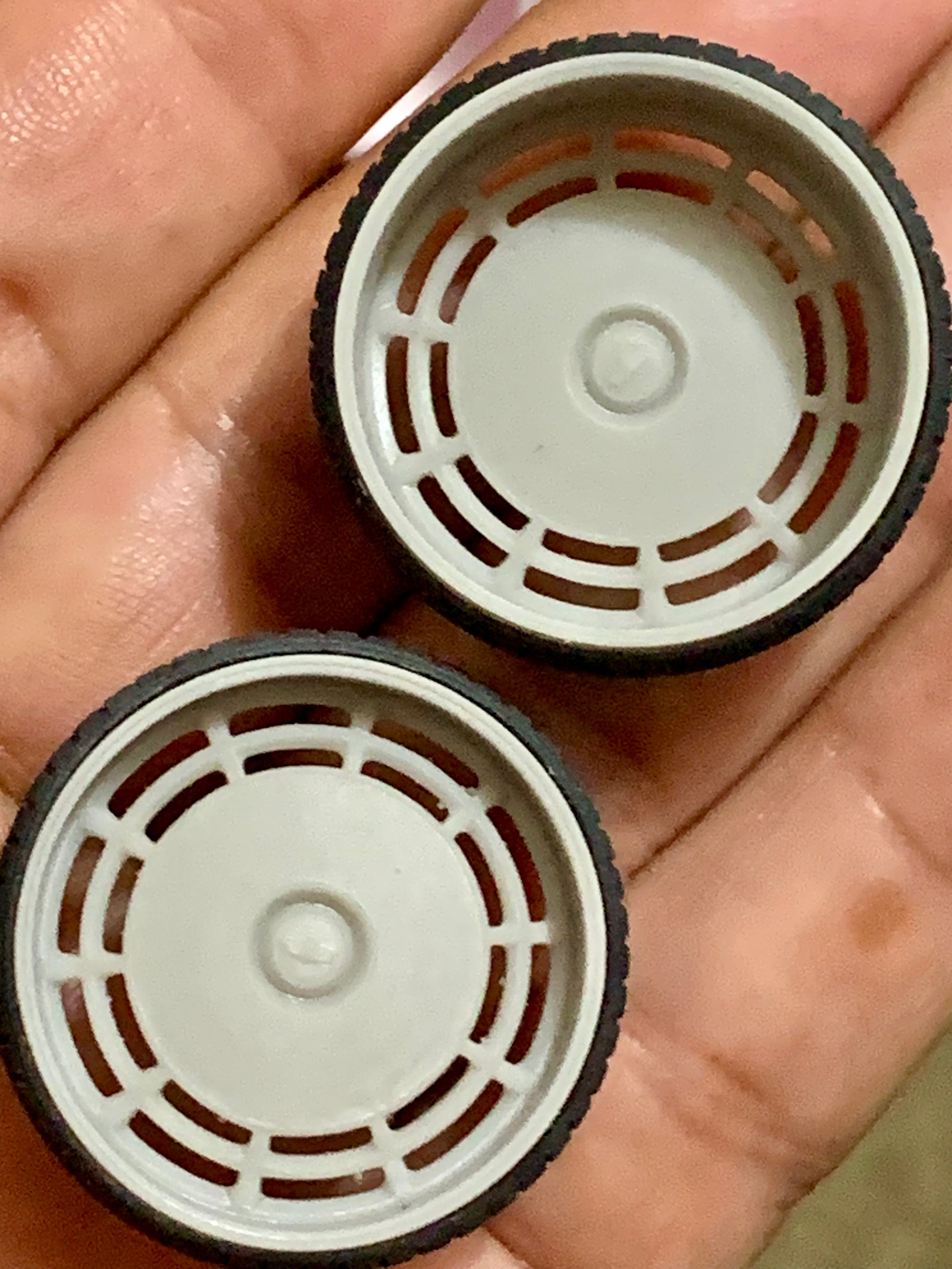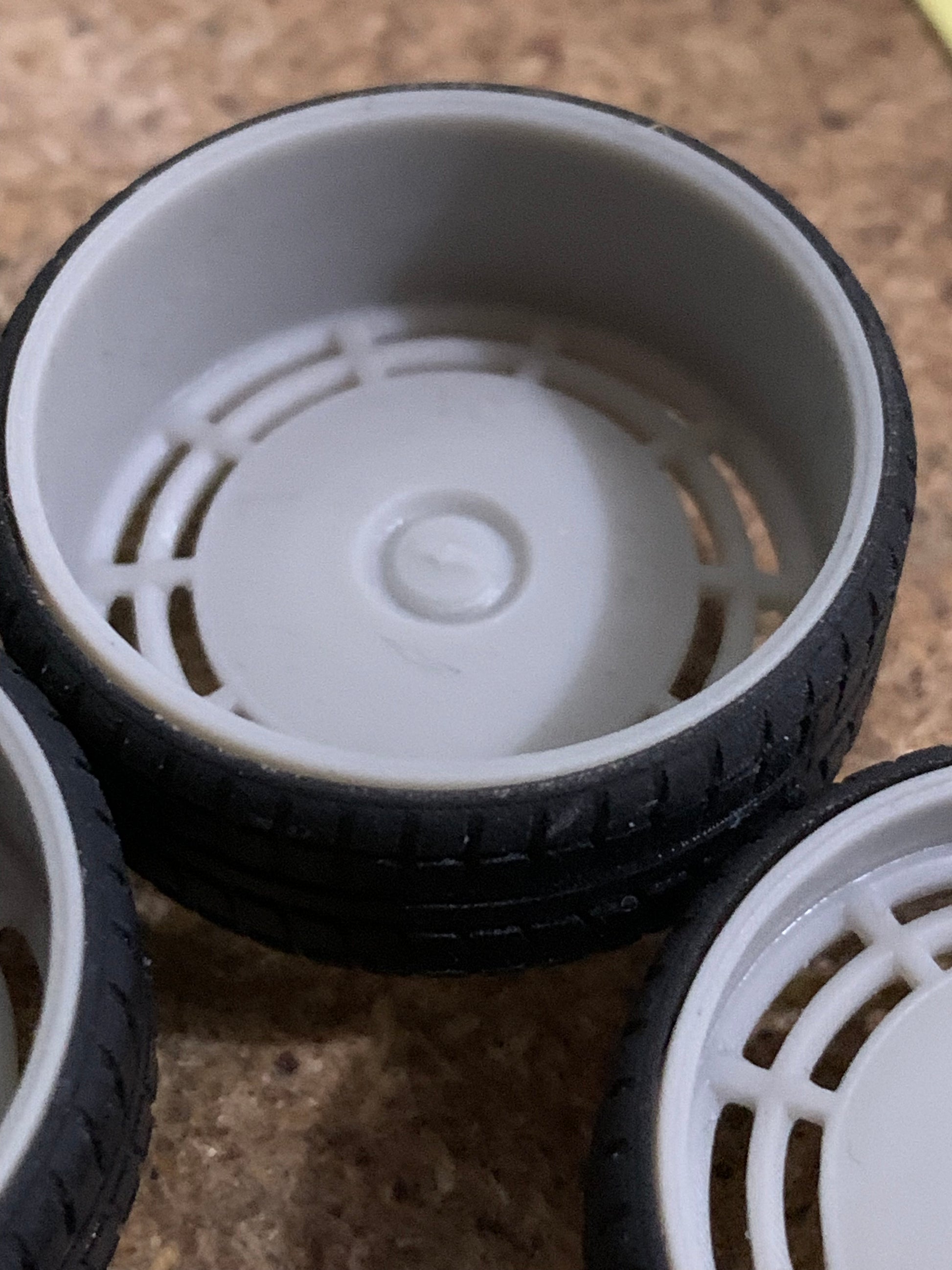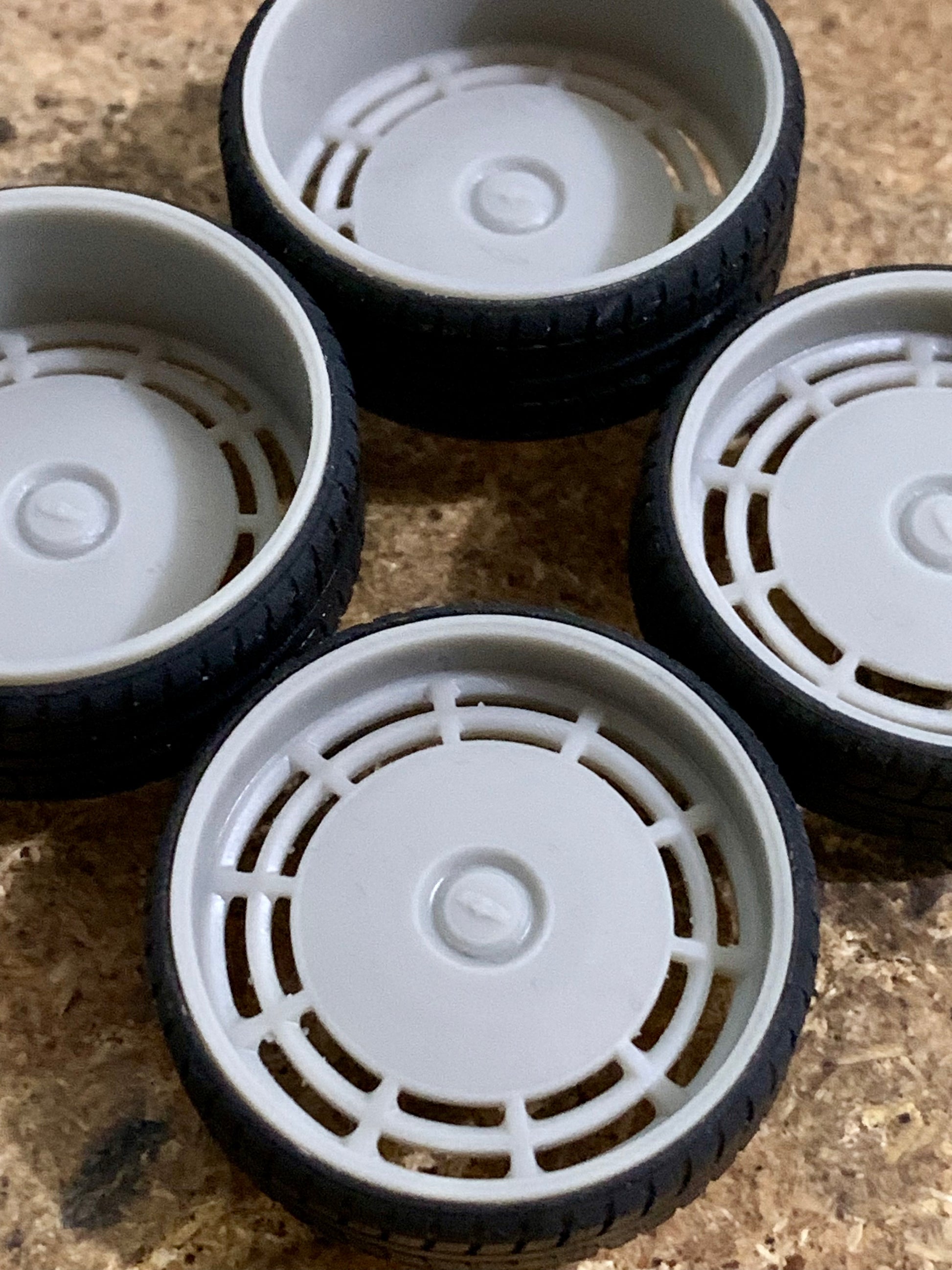 - 3D printed resin wheels & tires for a 1/25 scale.