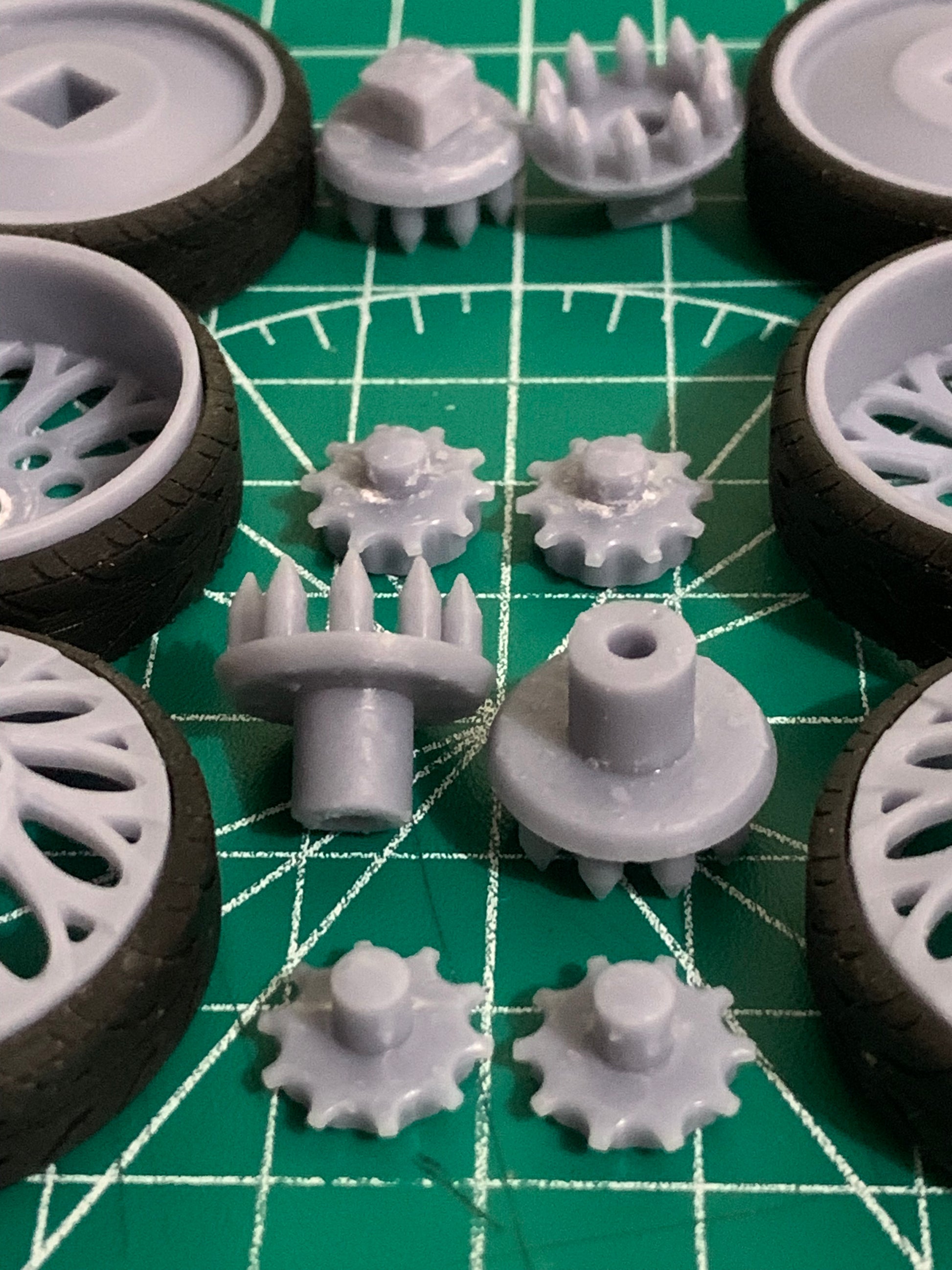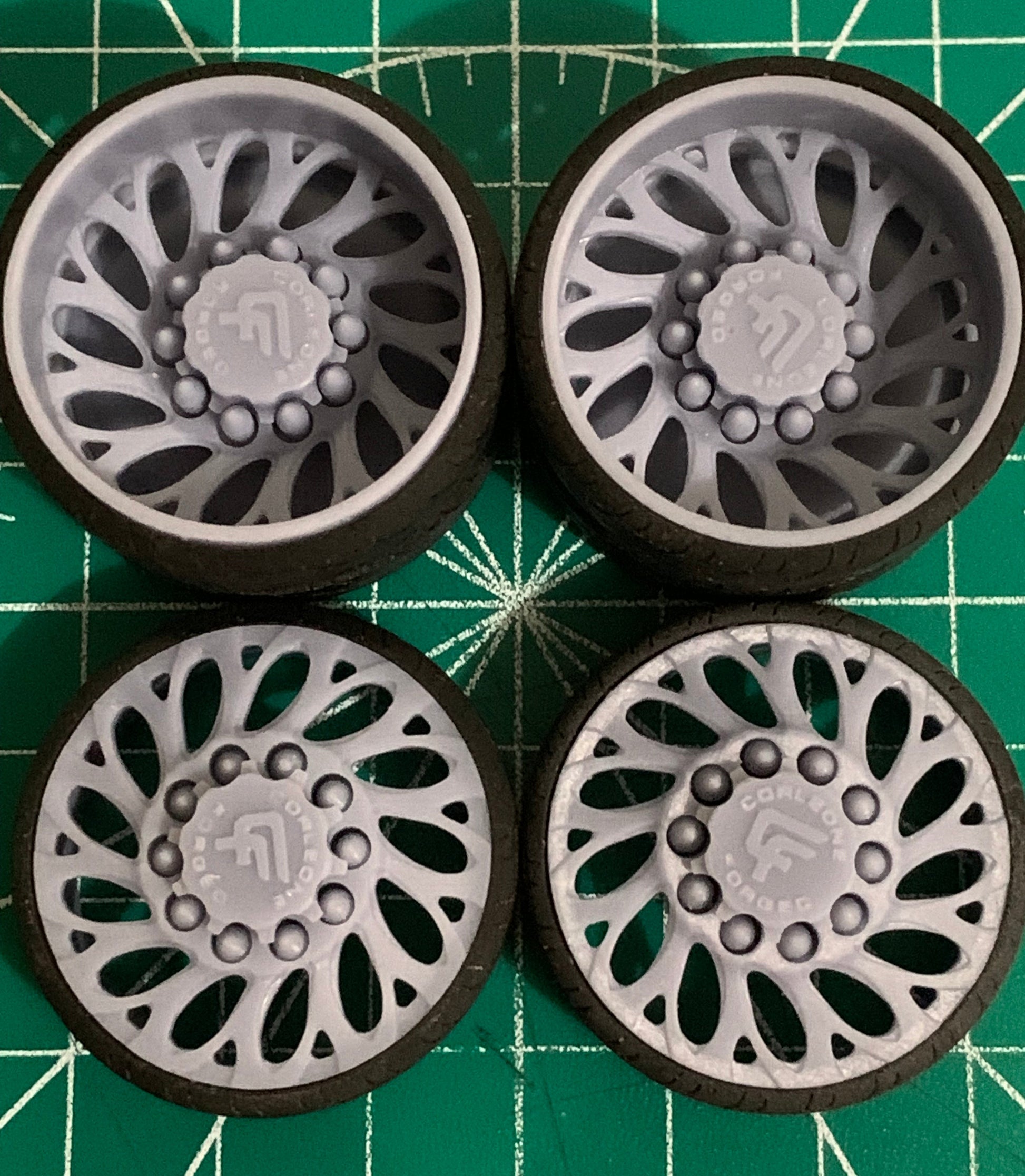 - 3D printed resin wheels & tires for a 1/25 scale model.