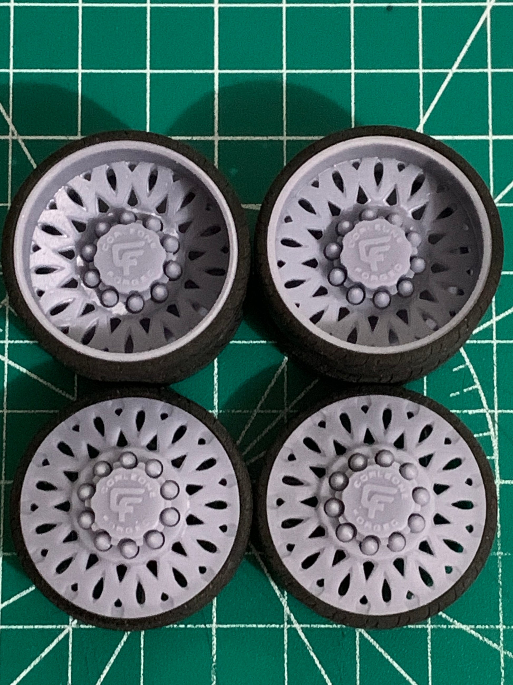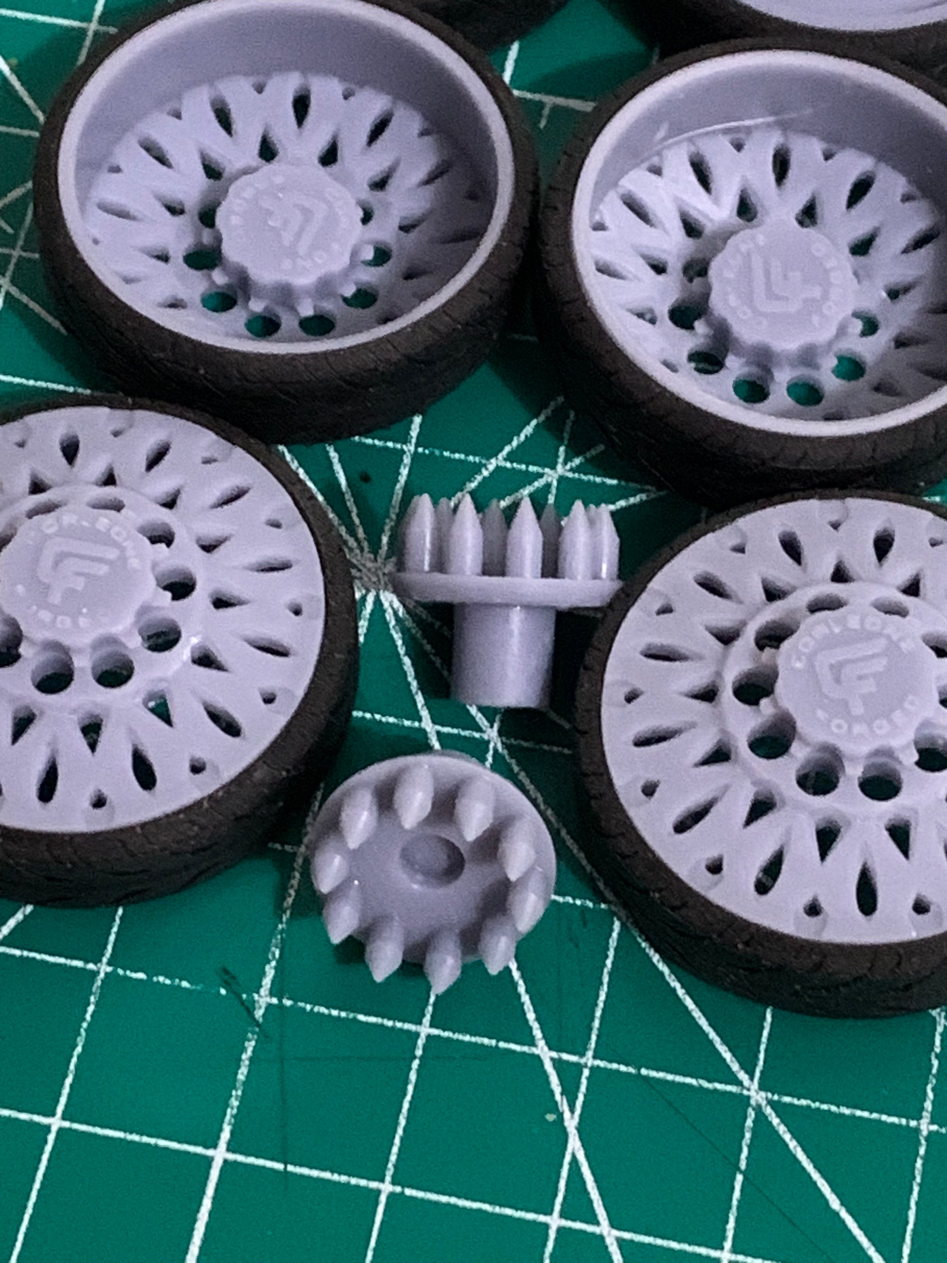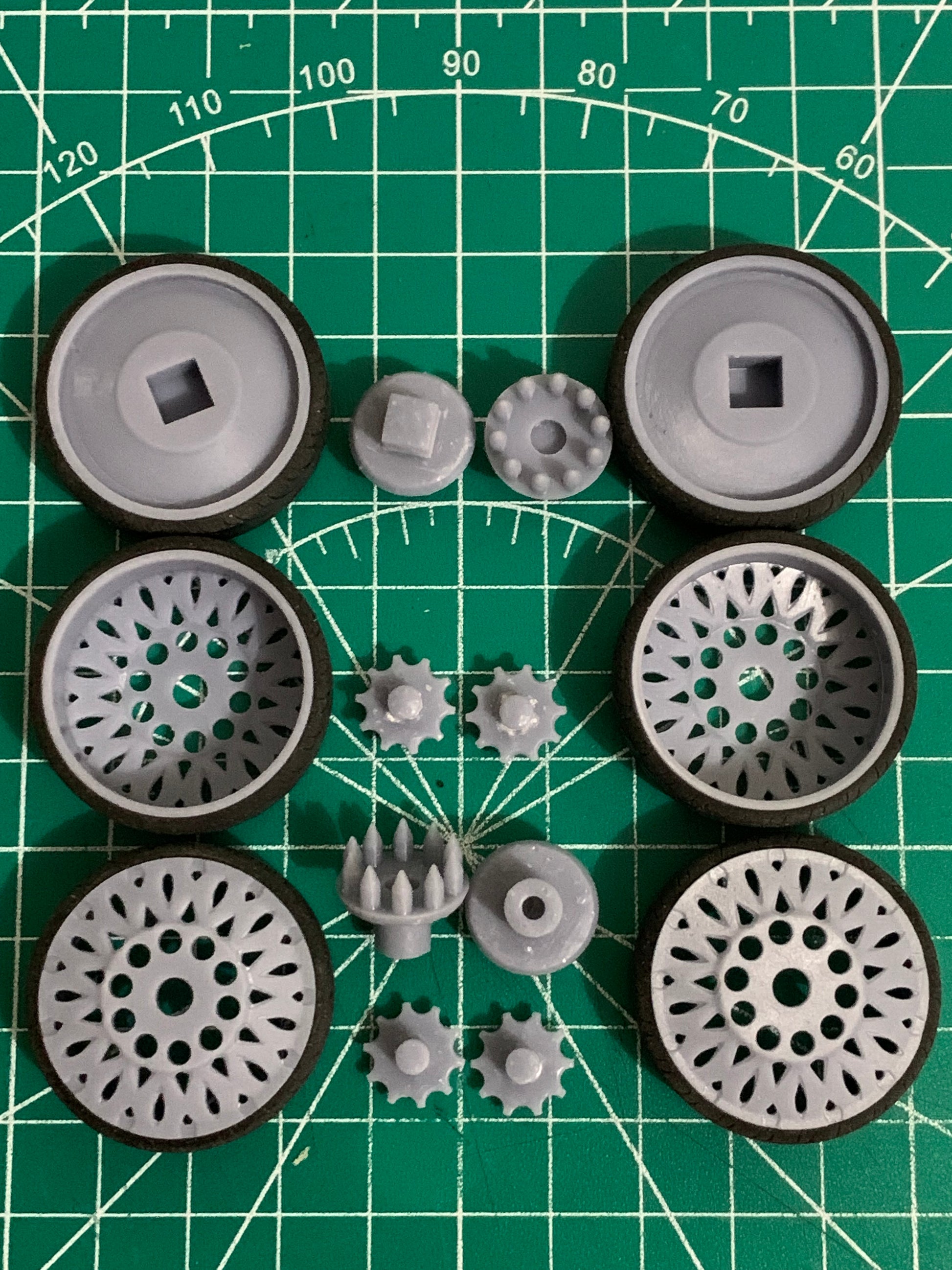 - 3D printed resin wheels & tires for a 1/25 scale model.