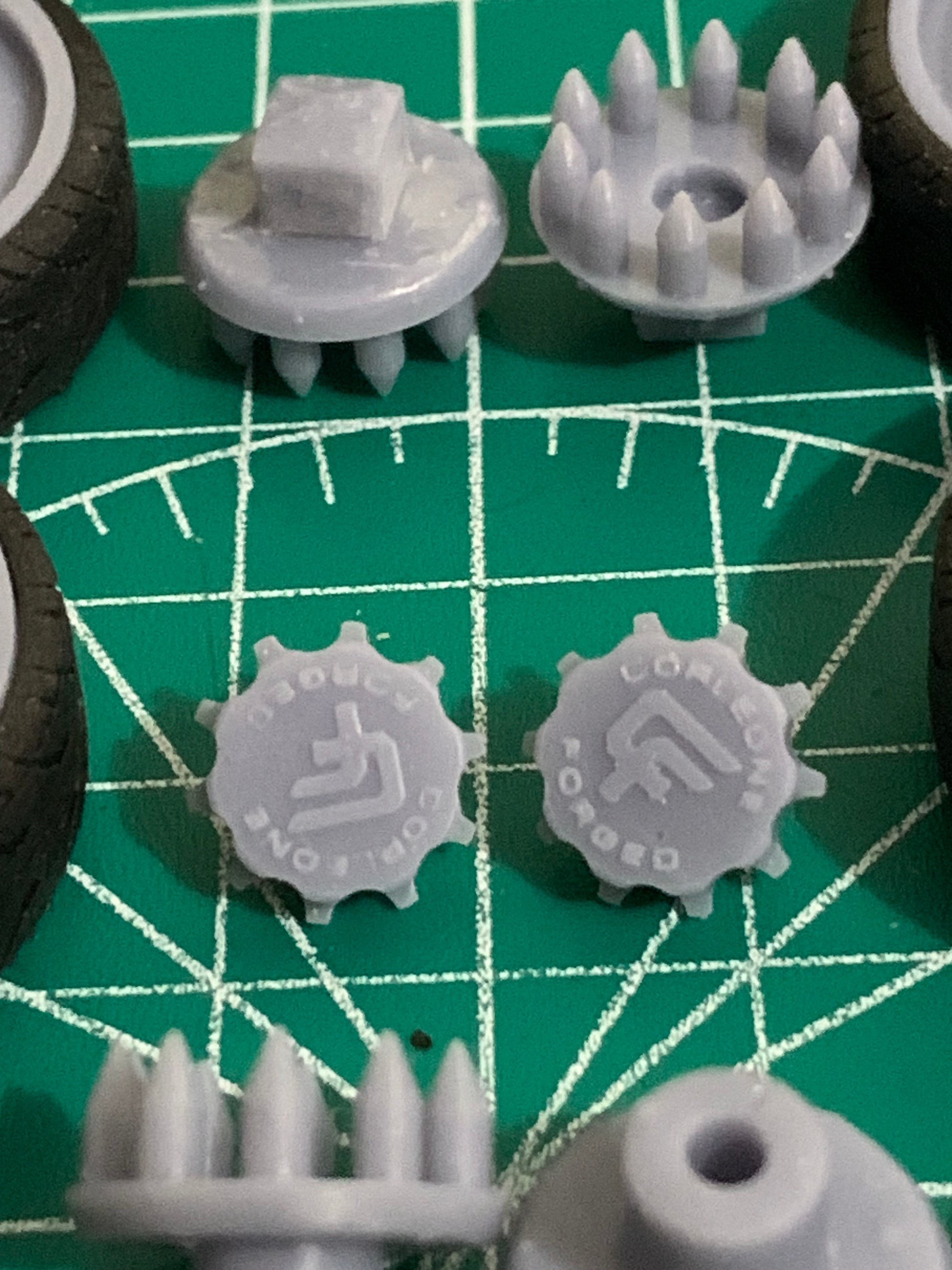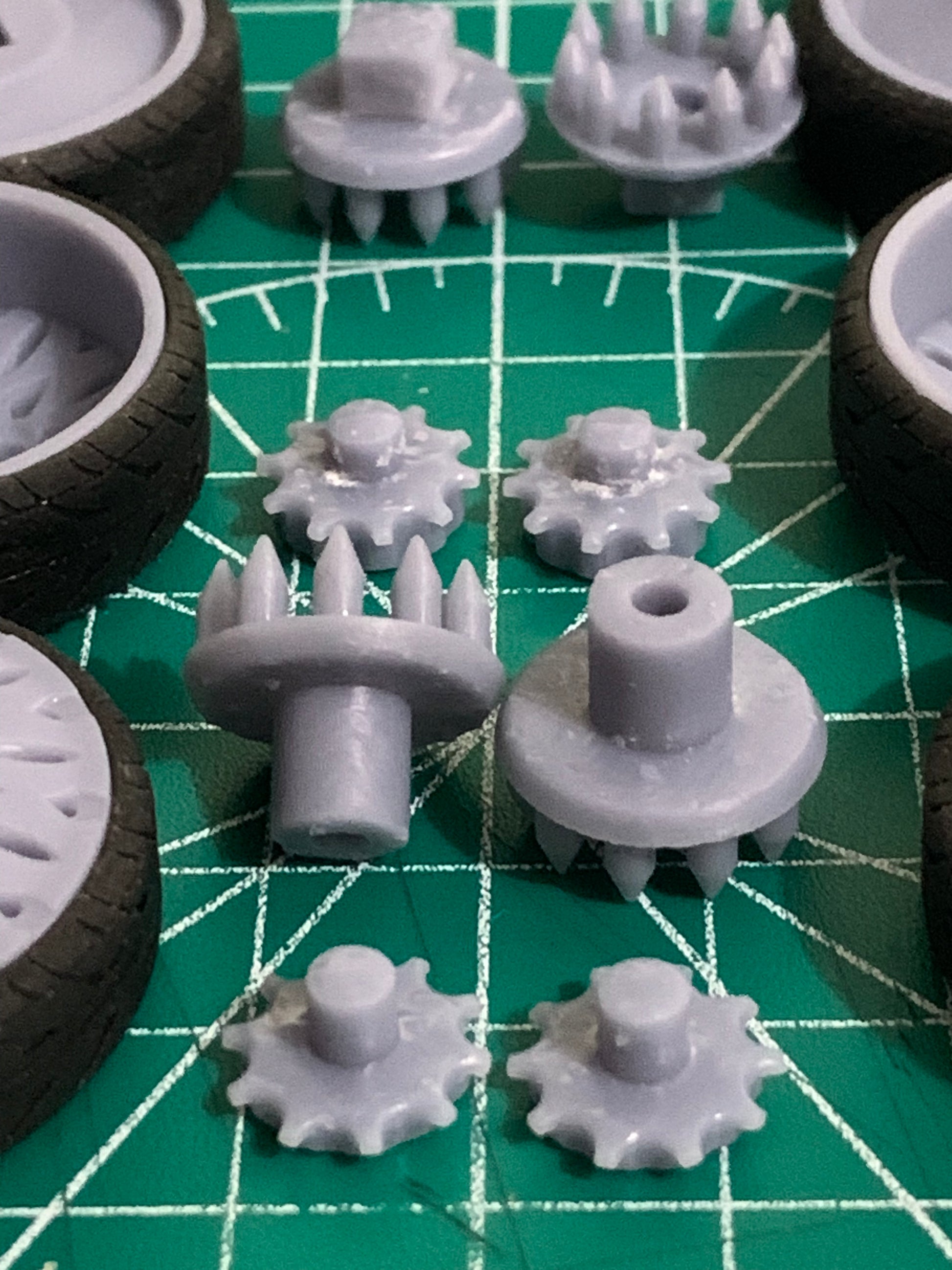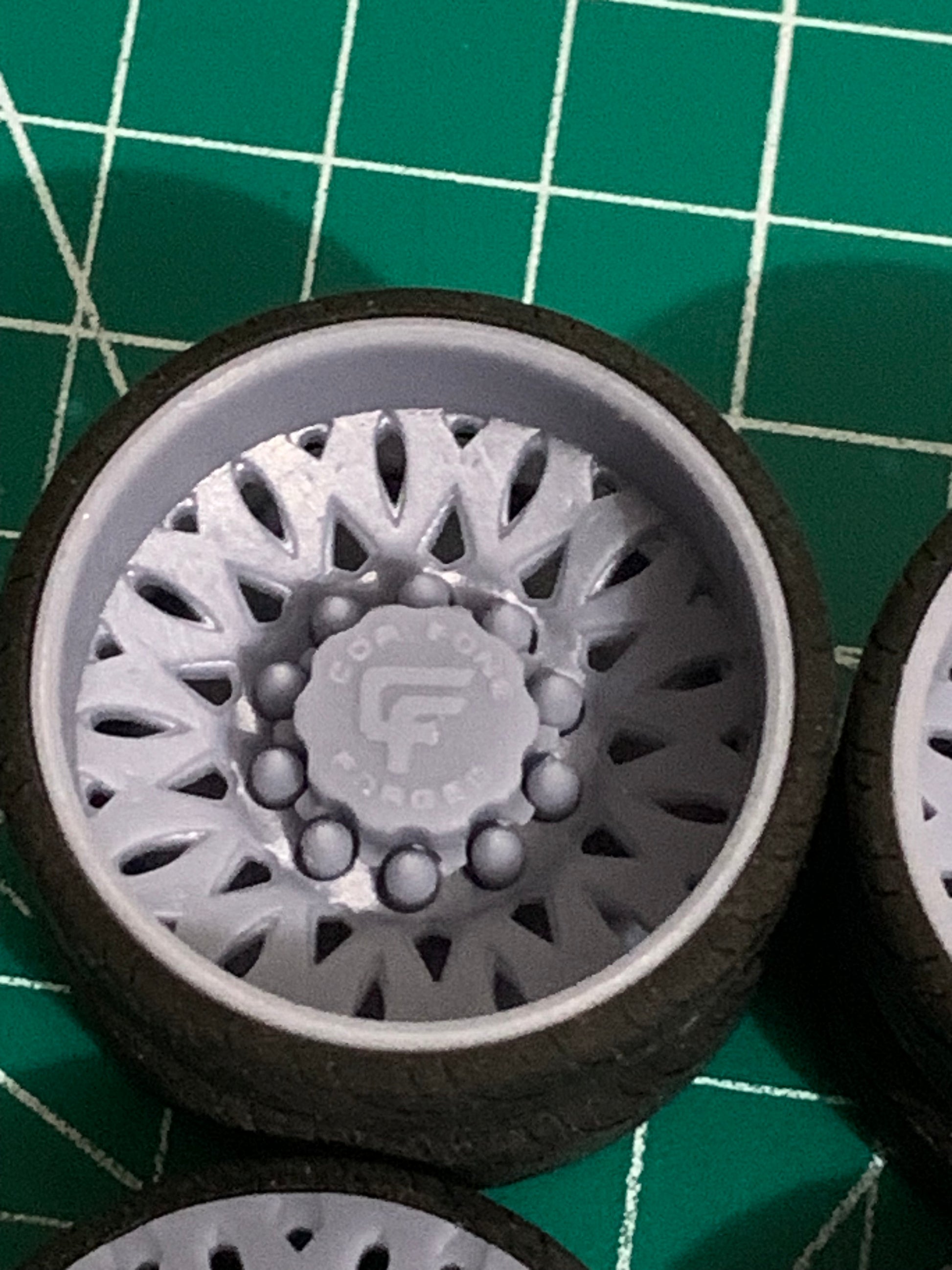 - 3D printed resin wheels & tires for a 1/25 scale model.