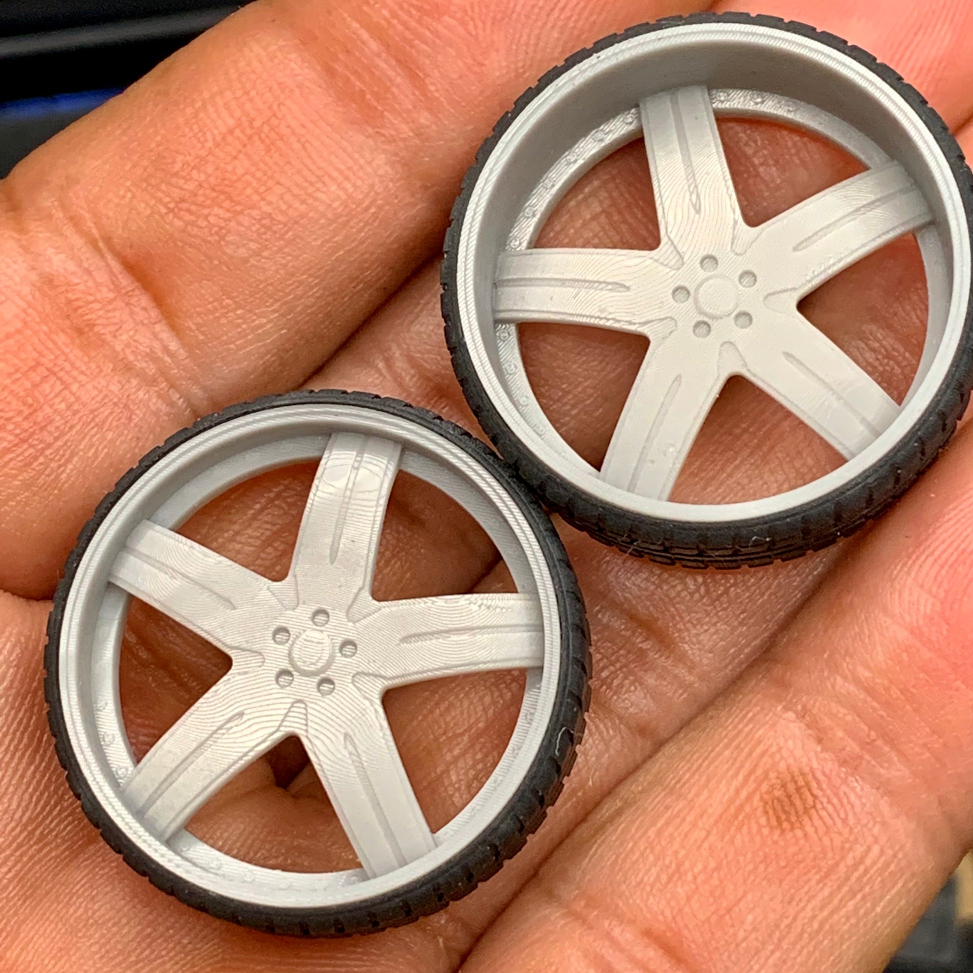 -3D printed resin wheels & tires for a 1/25 scale.
