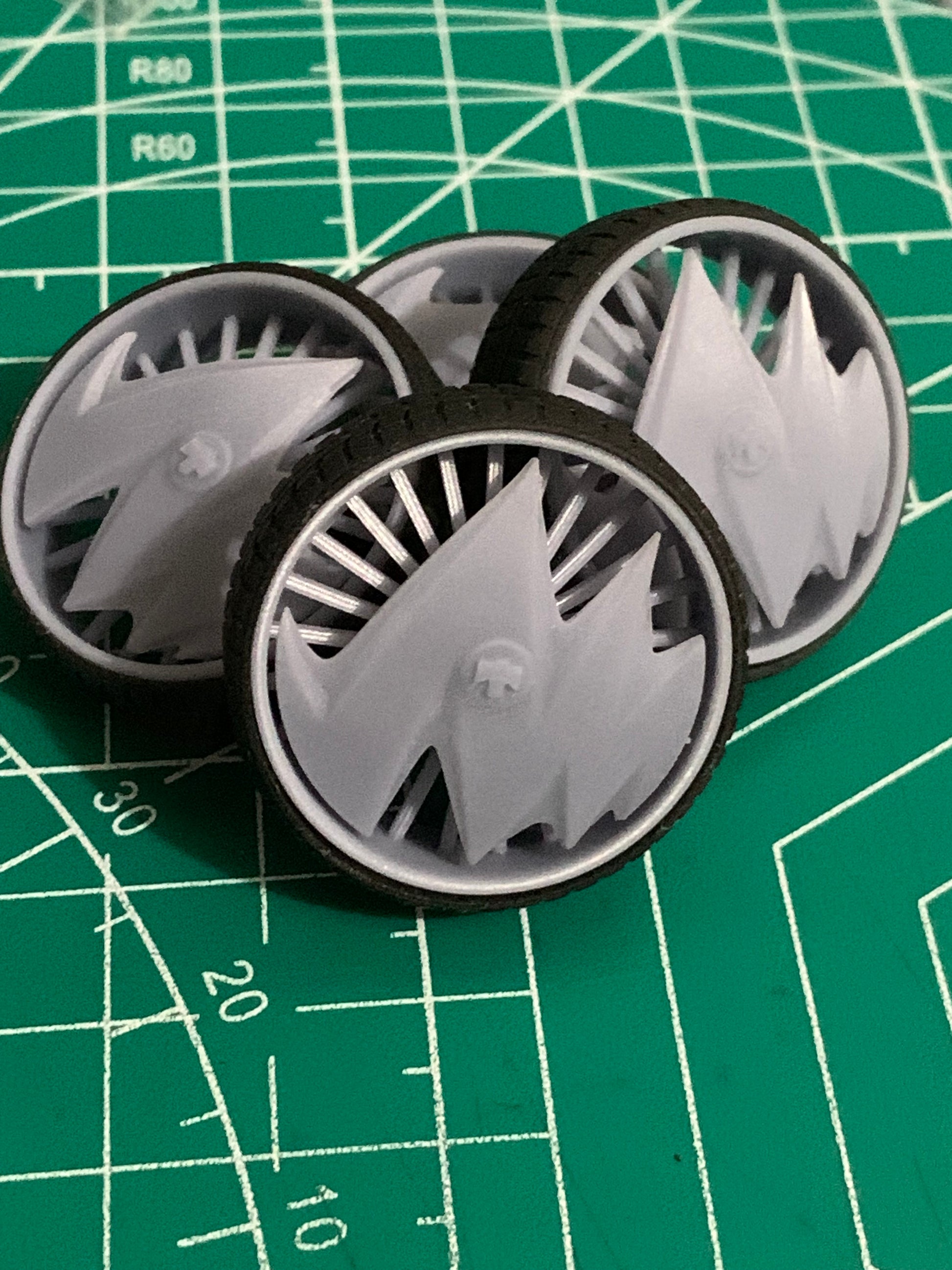 -3D printed resin wheels & tires for a 1/25 scale.