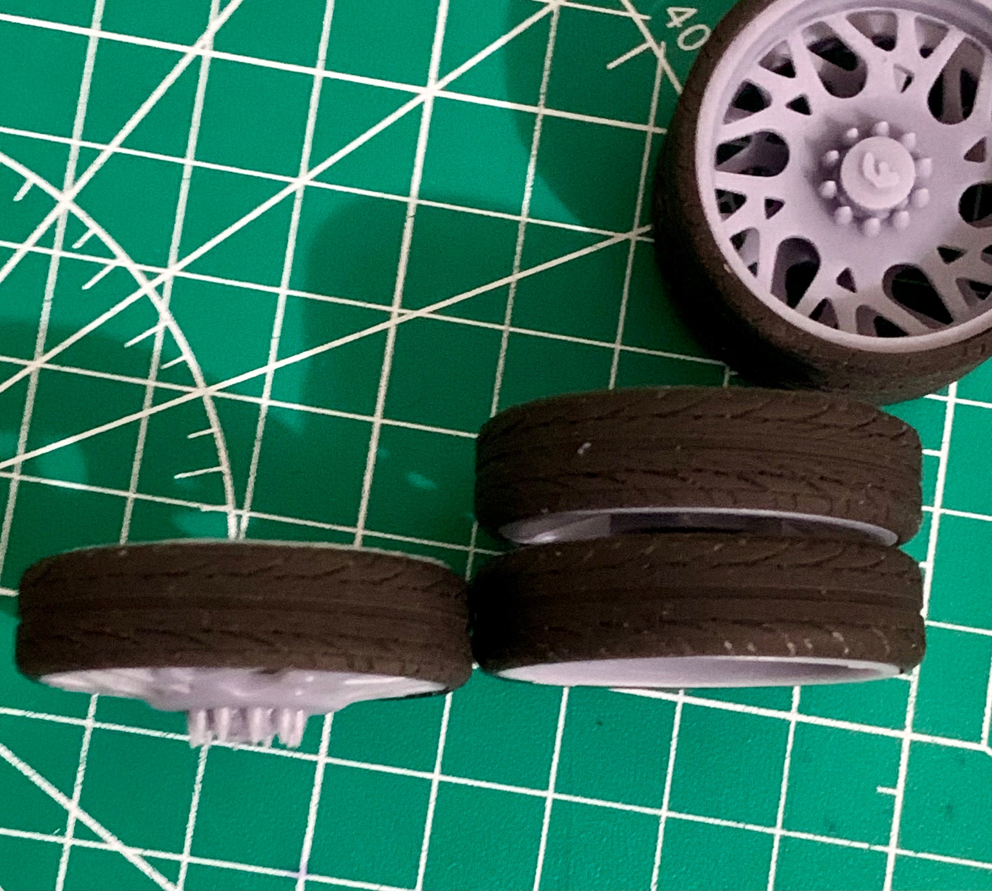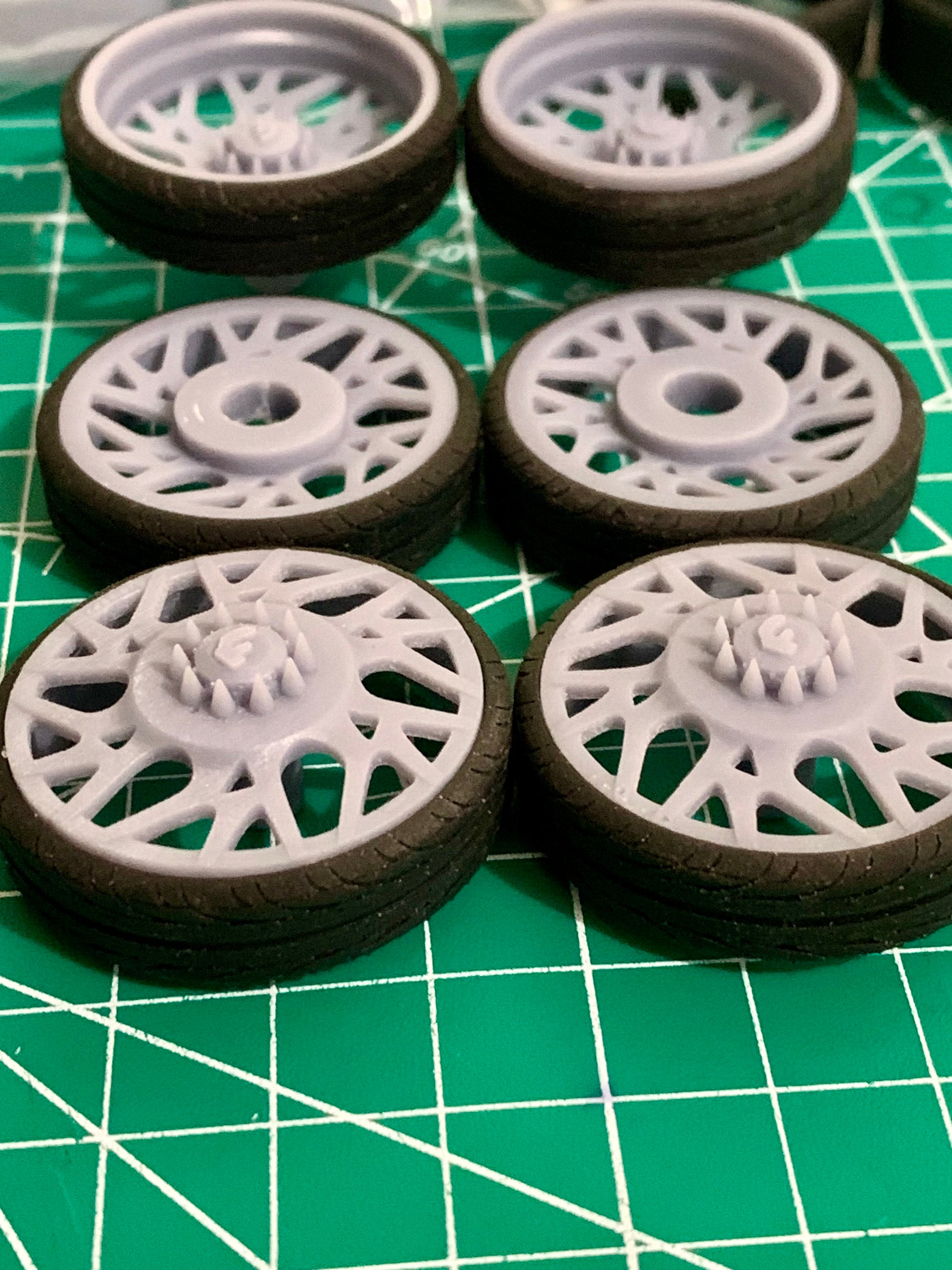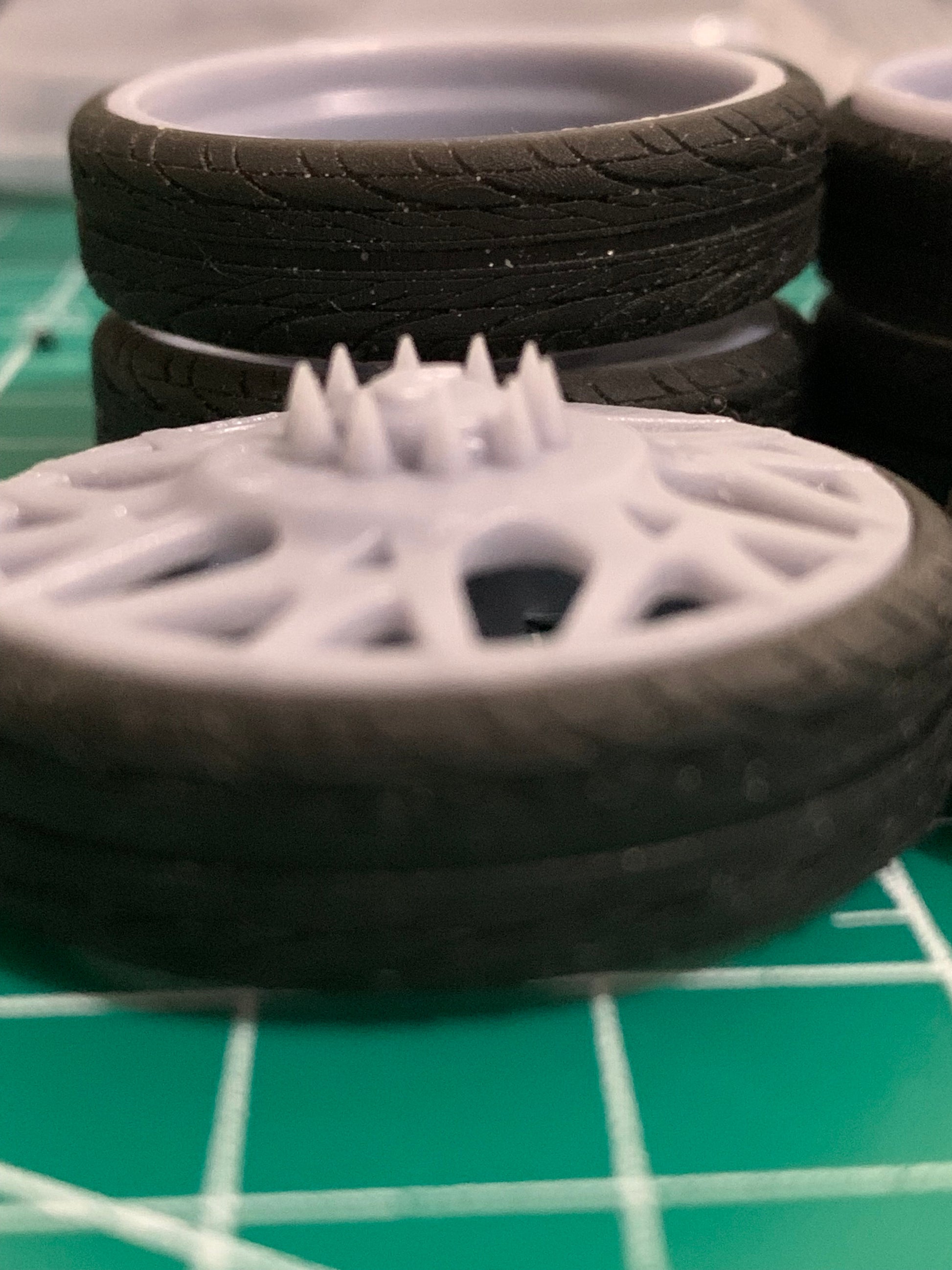 - 3D printed resin wheels & tires for a 1/25 scale model.