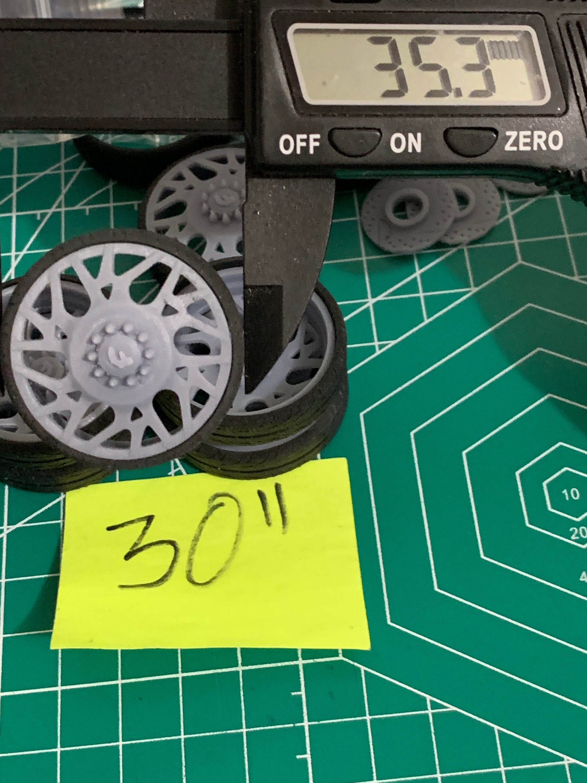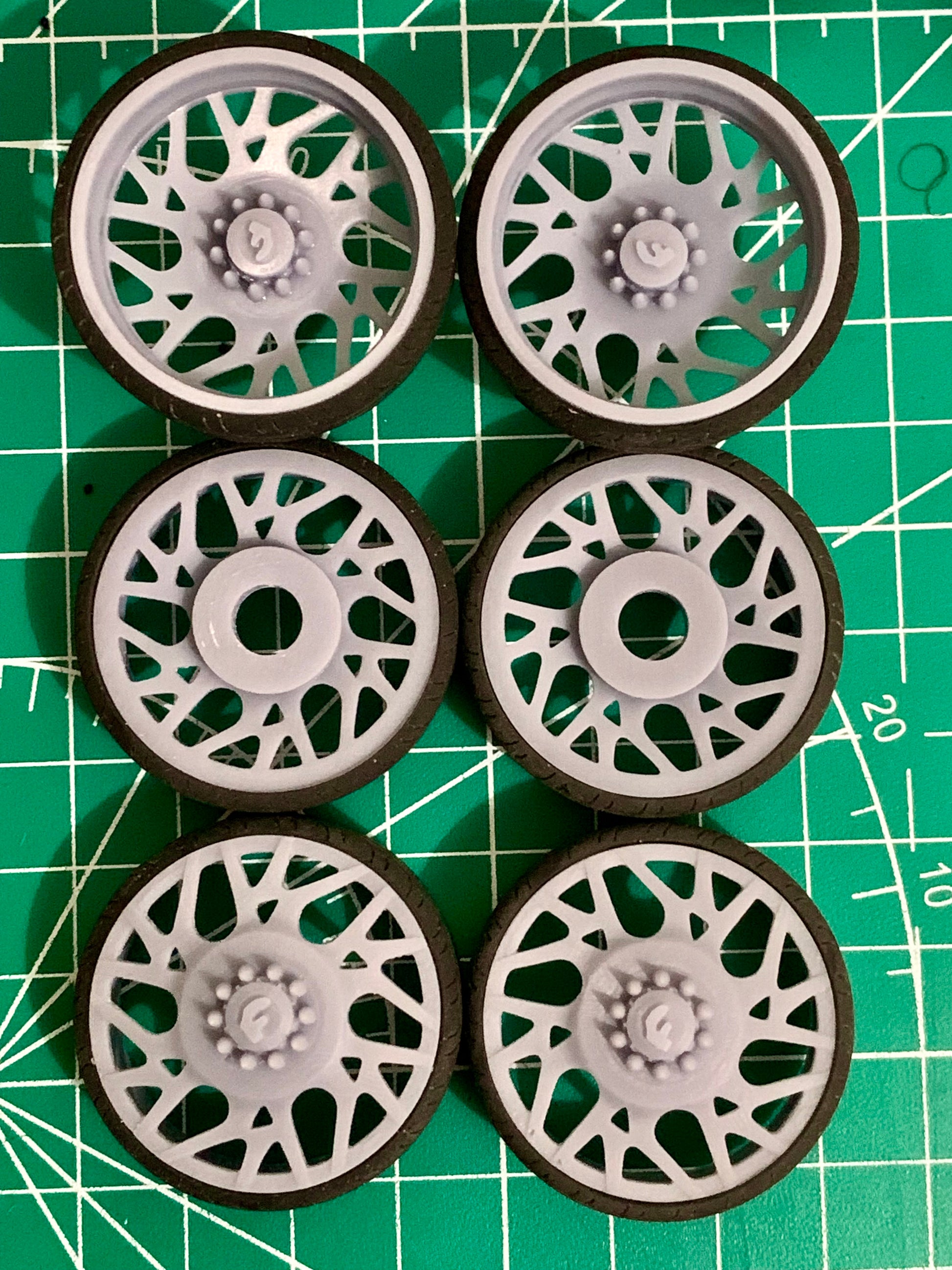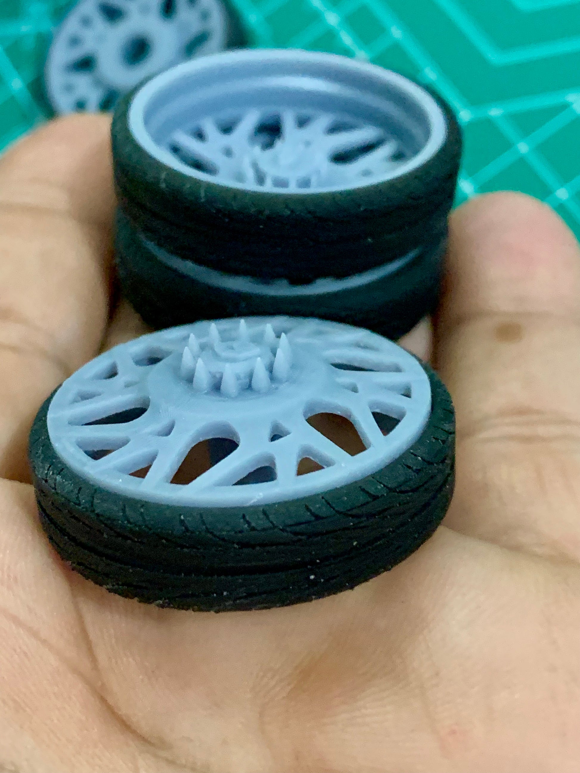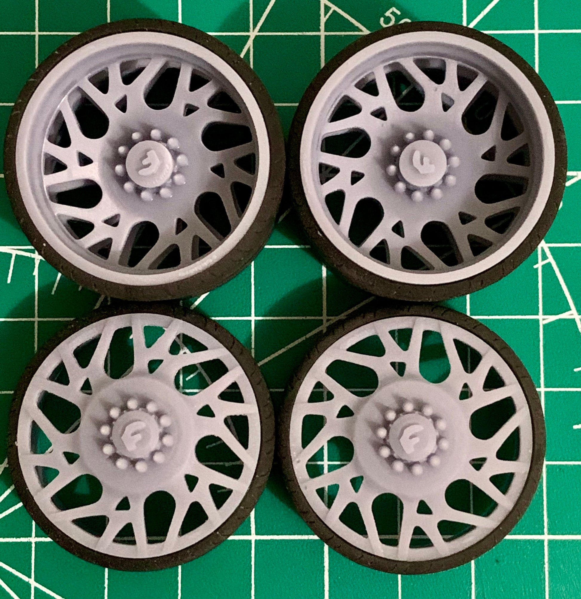 - 3D printed resin wheels & tires for a 1/25 scale model.