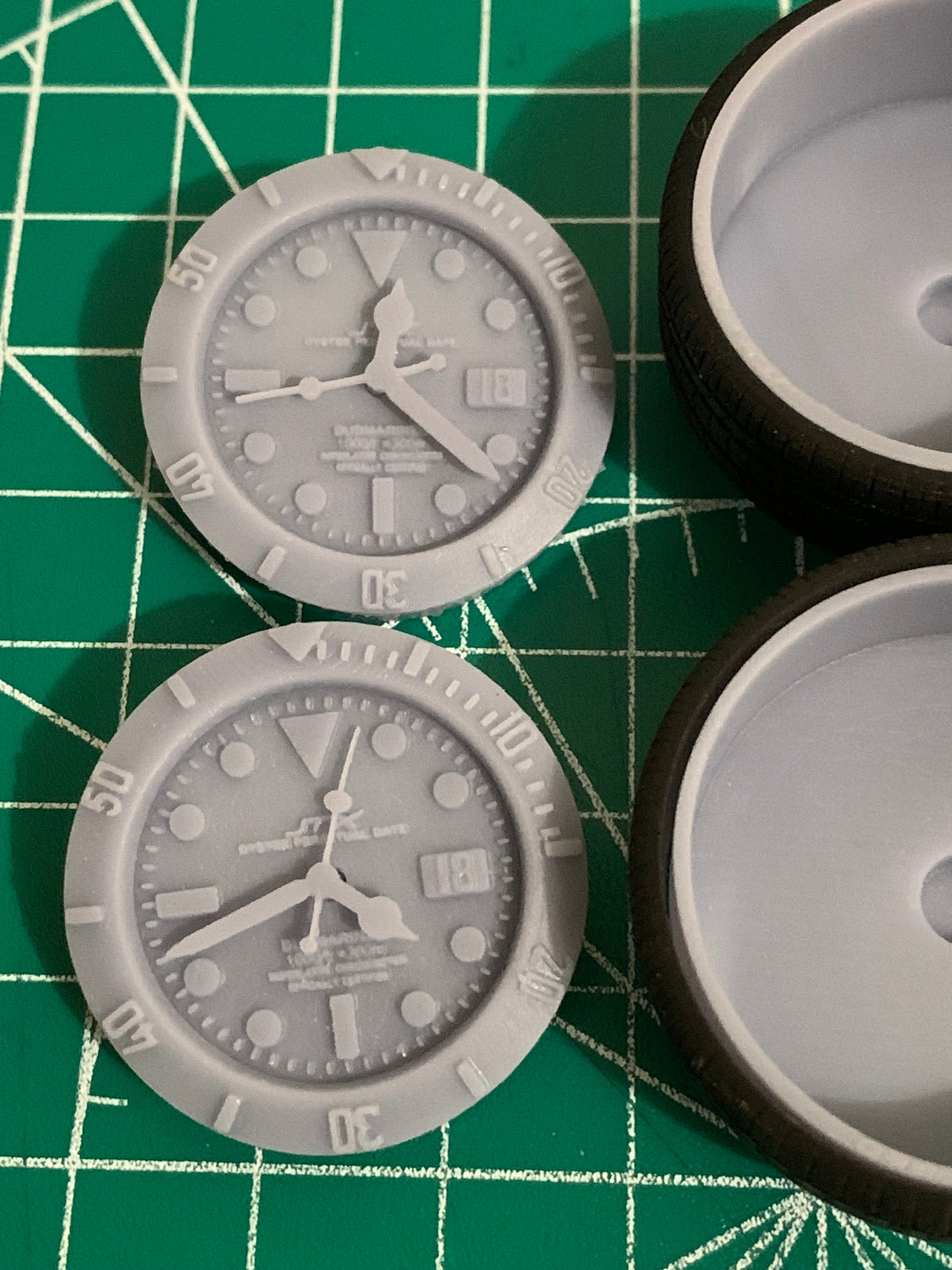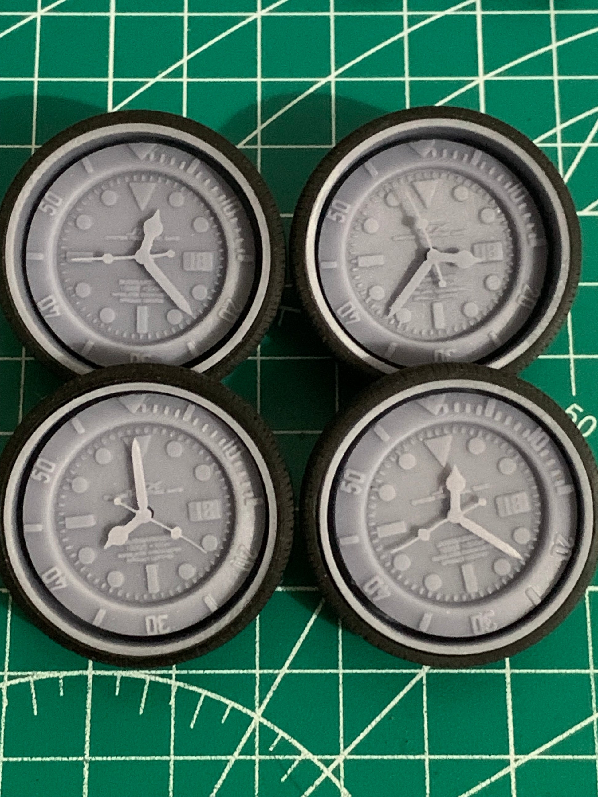 - JTX DUBMARINER CUSTOM FLOATERS - Comes in a staggered (has deeper rear rim) or standard offset (4-Front Rims). I made the dial, bezel and hands all separate for easier customization. Purchased sets will have two tiny holes on either side of the hub so can use a thick paper clip or equivalent to push the face out from the back of the rim once the face is installed, easy peezy.