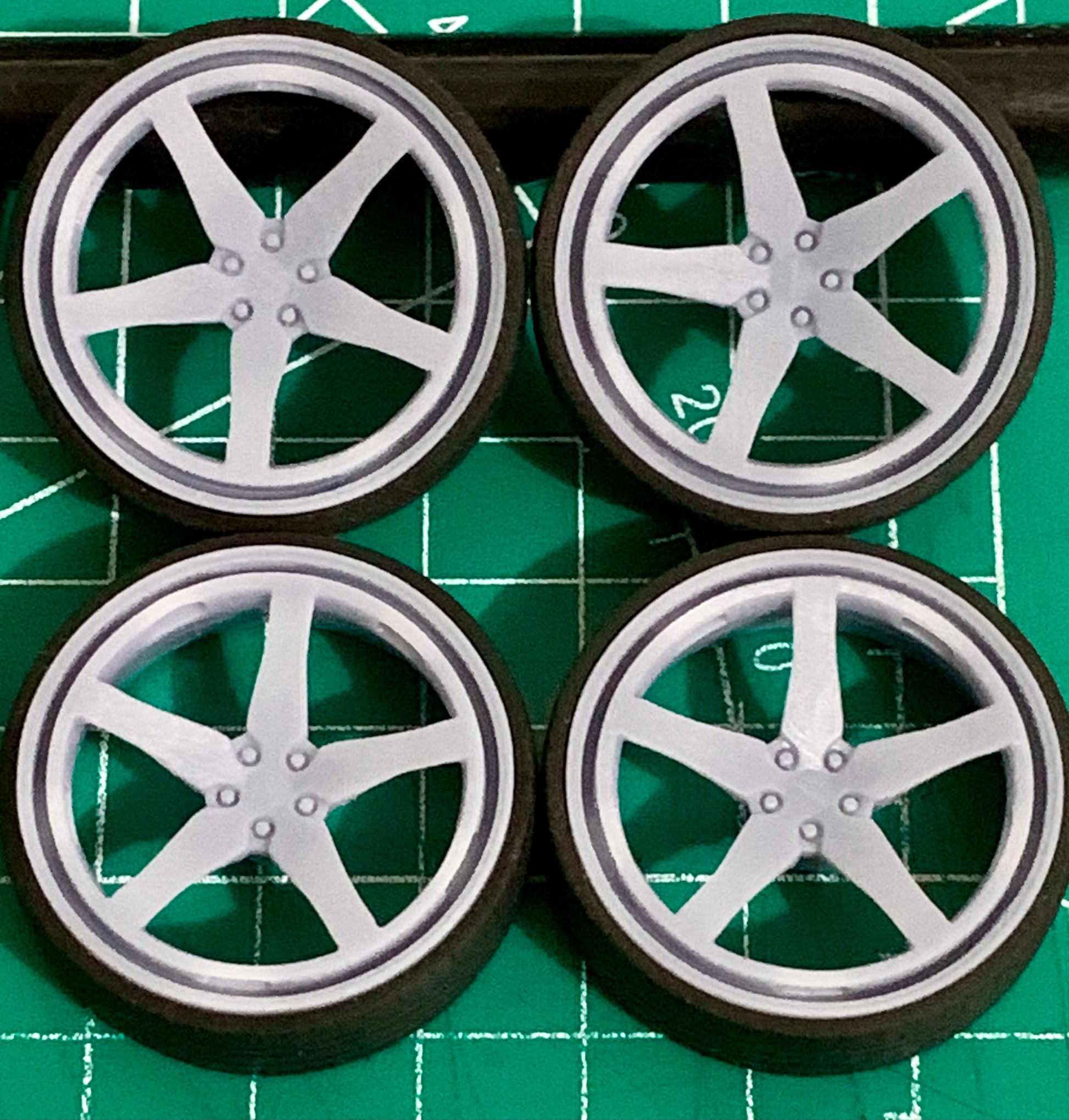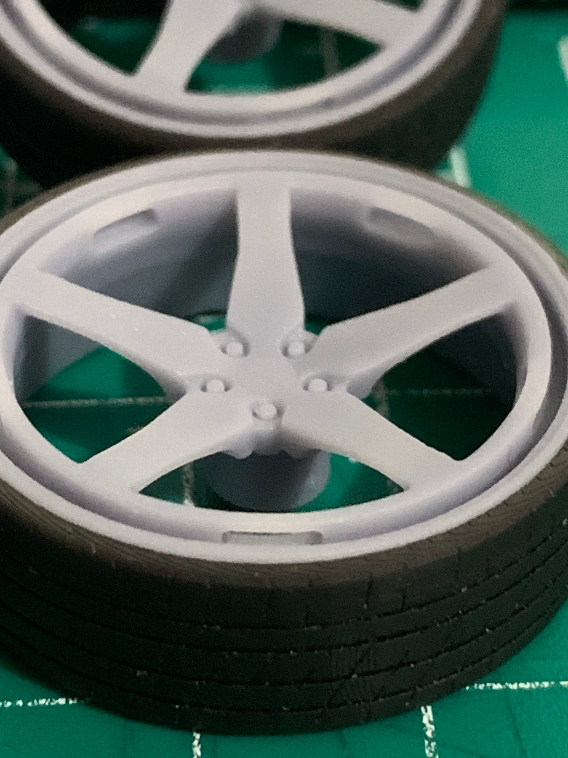 -3D printed resin wheels & tires for a 1/25 scale.