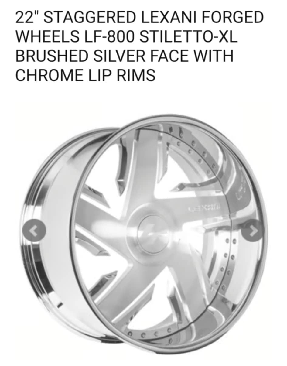 - LEXANI LF-800 Stilleto - 1pc or 2pc in a staggered off-set (has deep-dish rear rim) or standard offset (4-Front Rims). You can add a matching Steering Wheel if you choose.