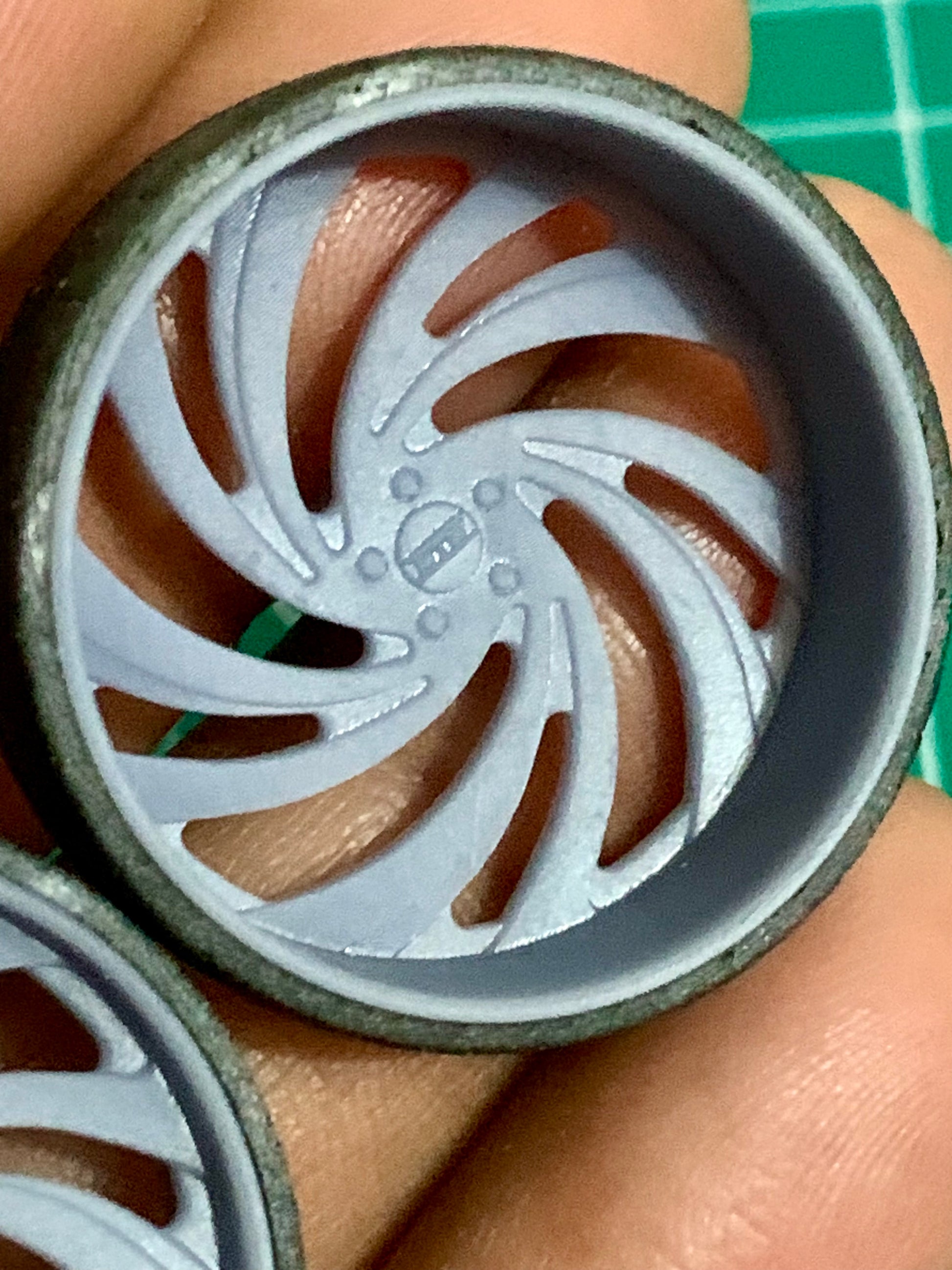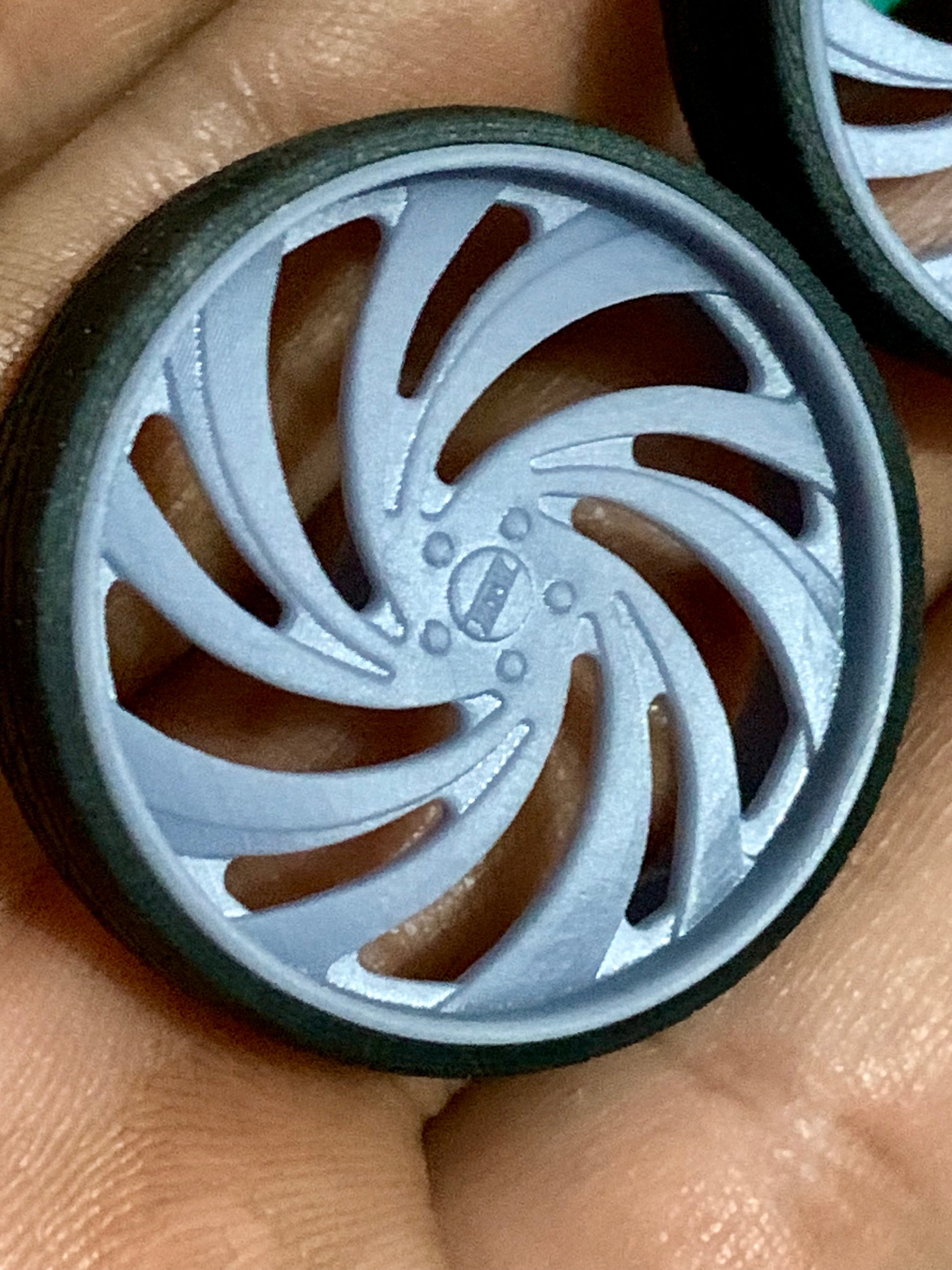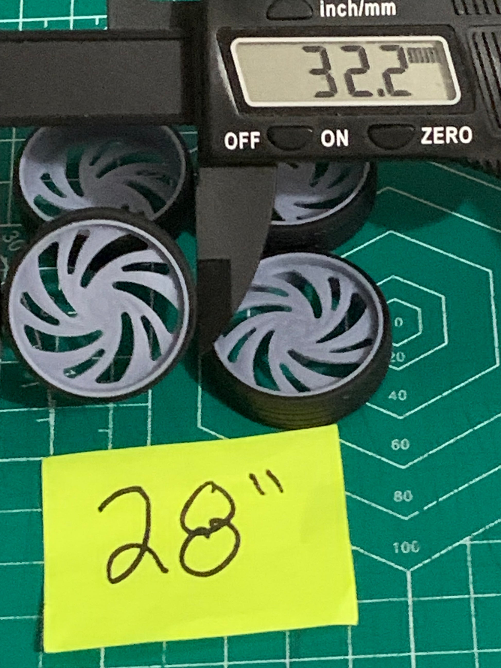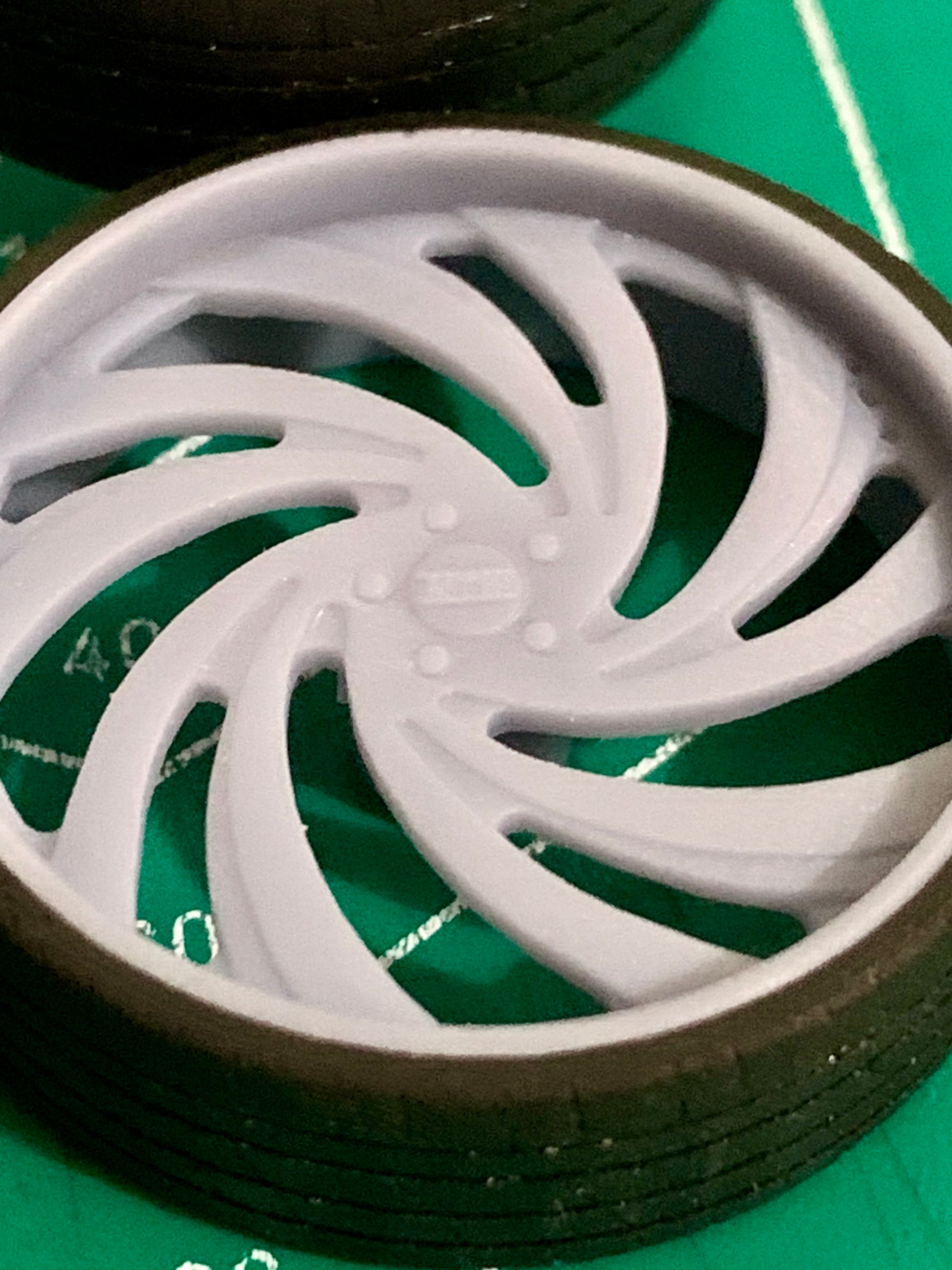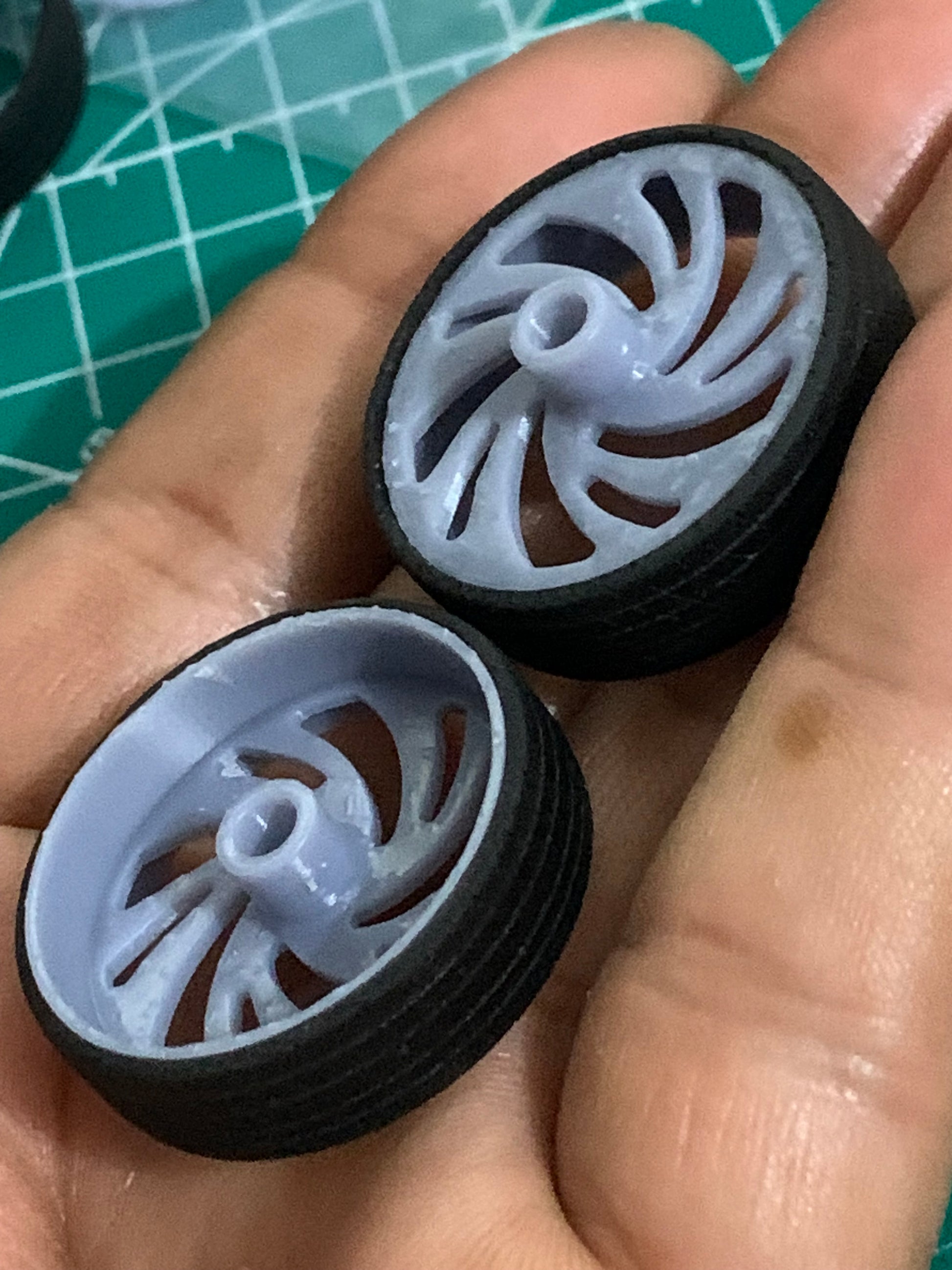 - 3D printed resin wheels & tires for a 1/25 scale.
