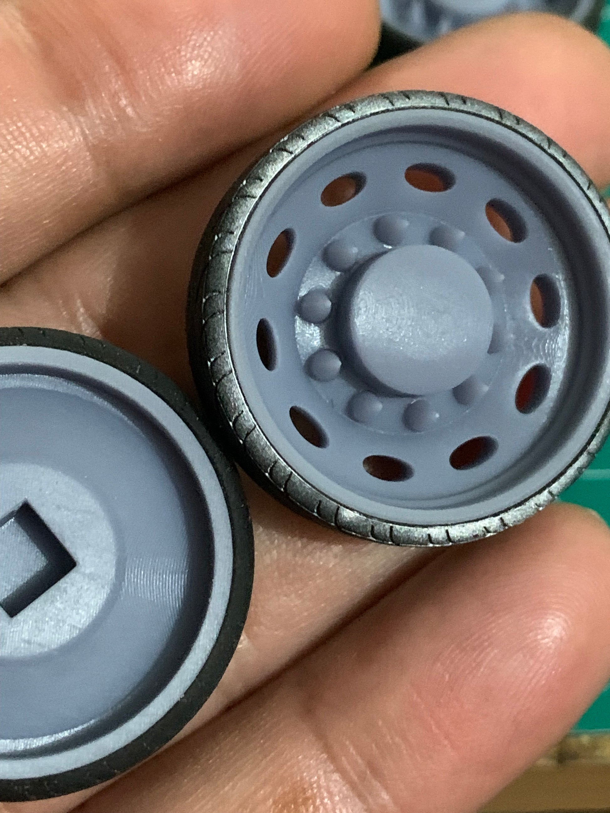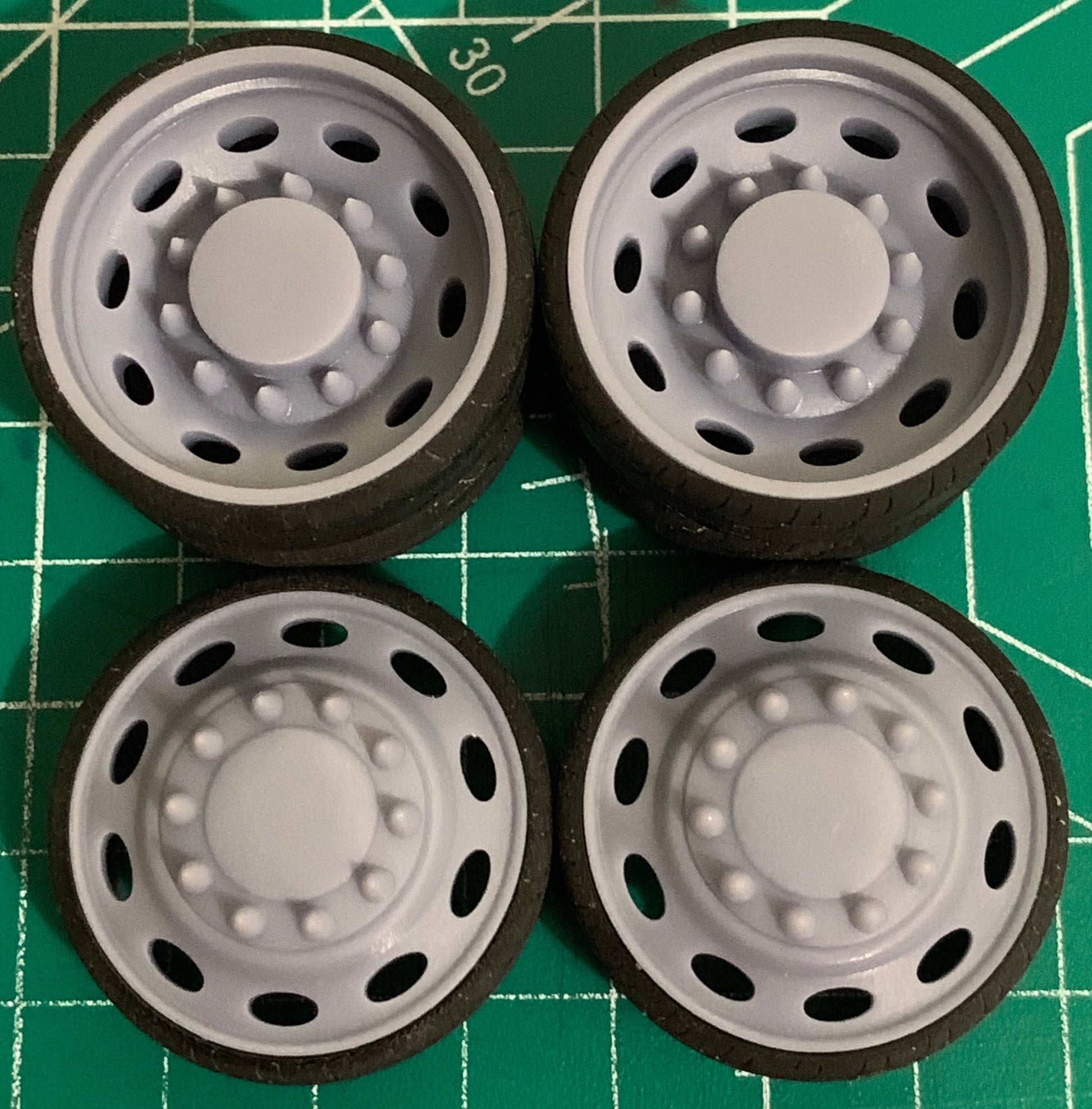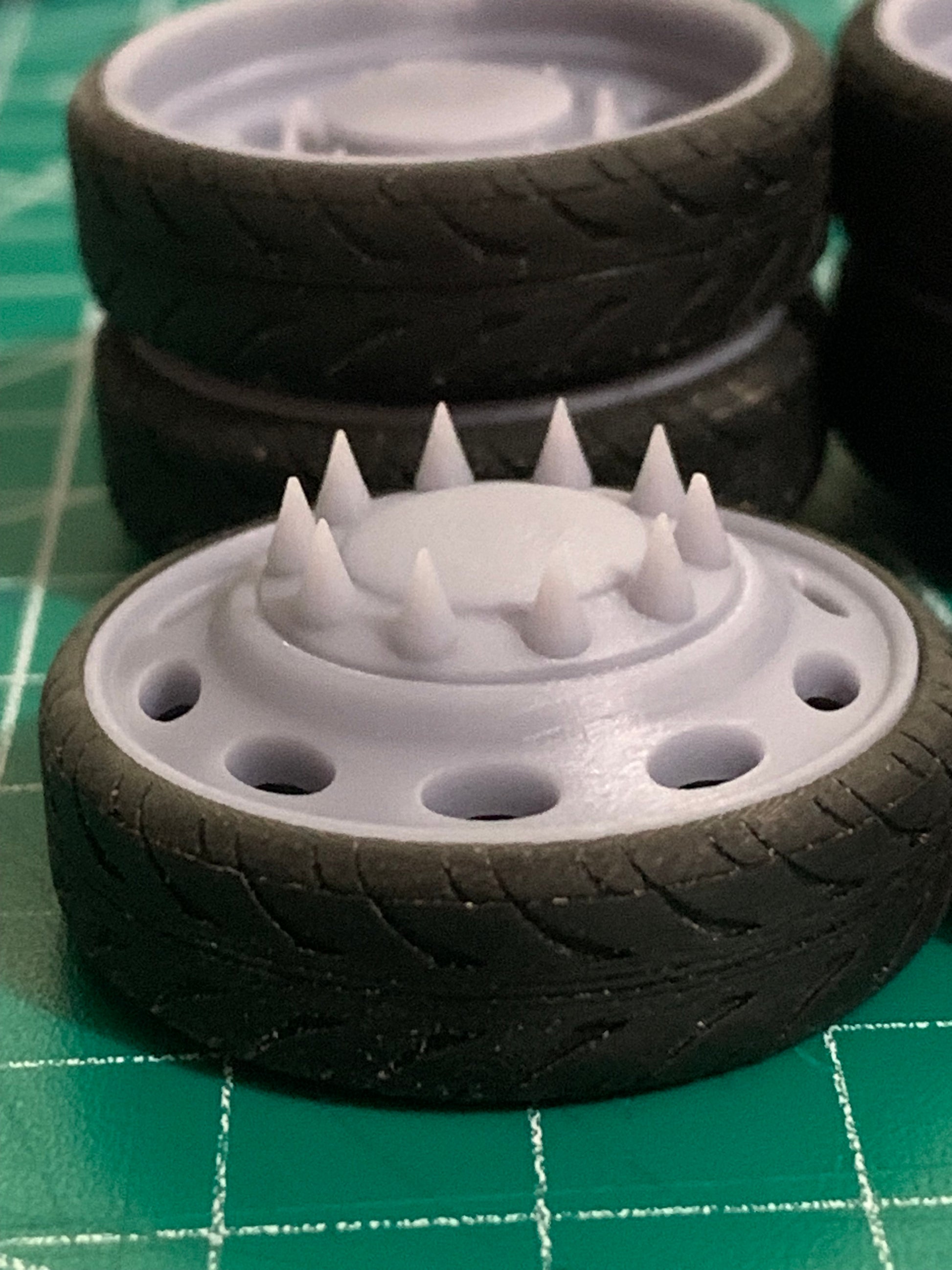 - 3D printed resin wheels & tires for a 1/25 scale model.