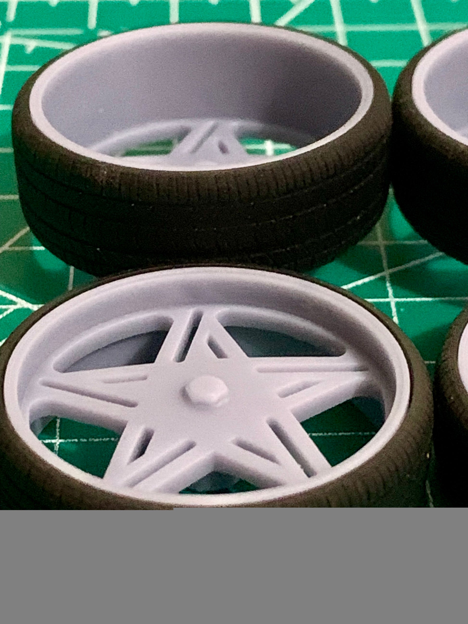 -3D printed resin wheels & tires for a 1/25 scale.