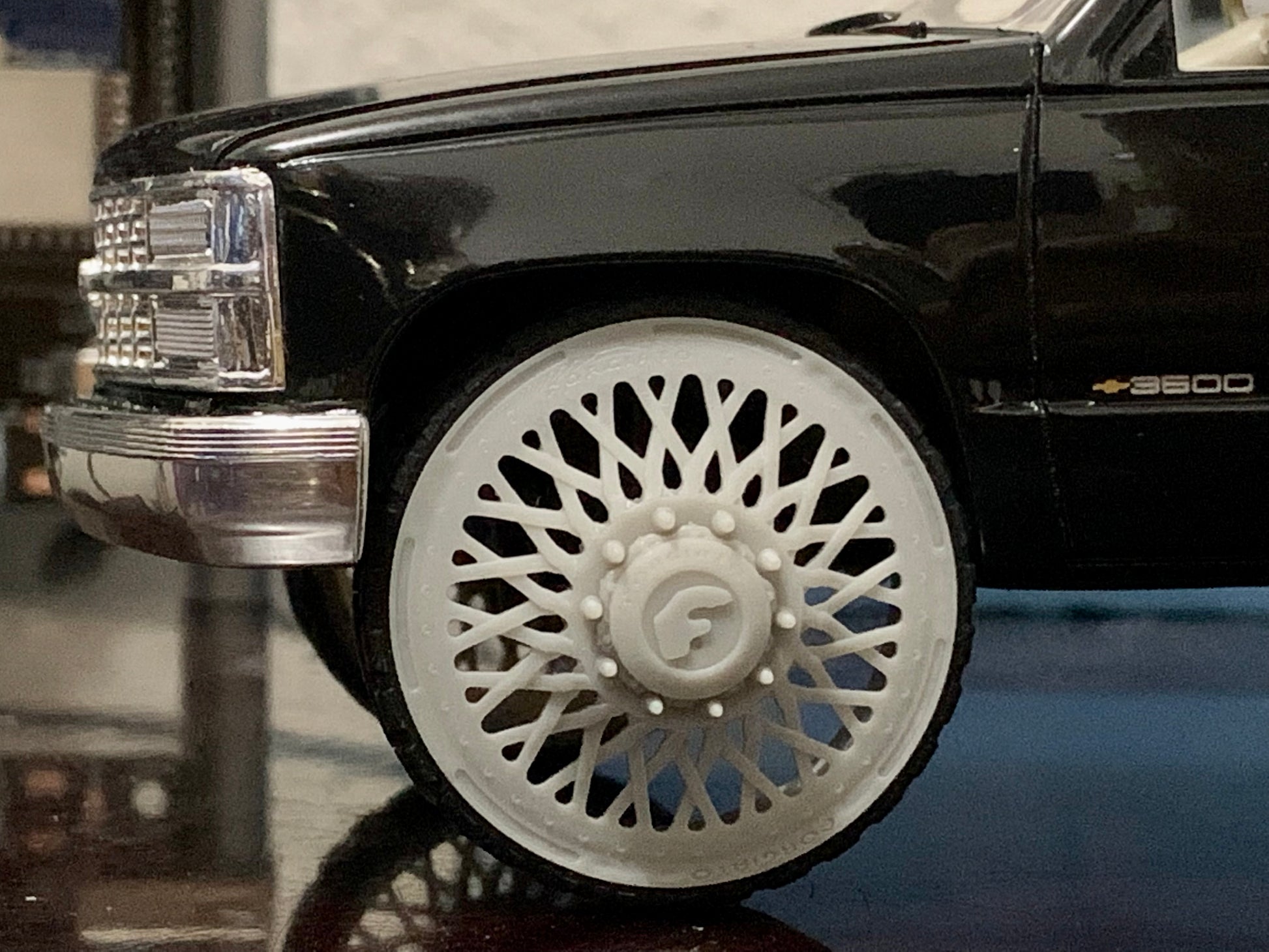 - 3D printed 32" resin wheels & tires for a 1/25 scale model.