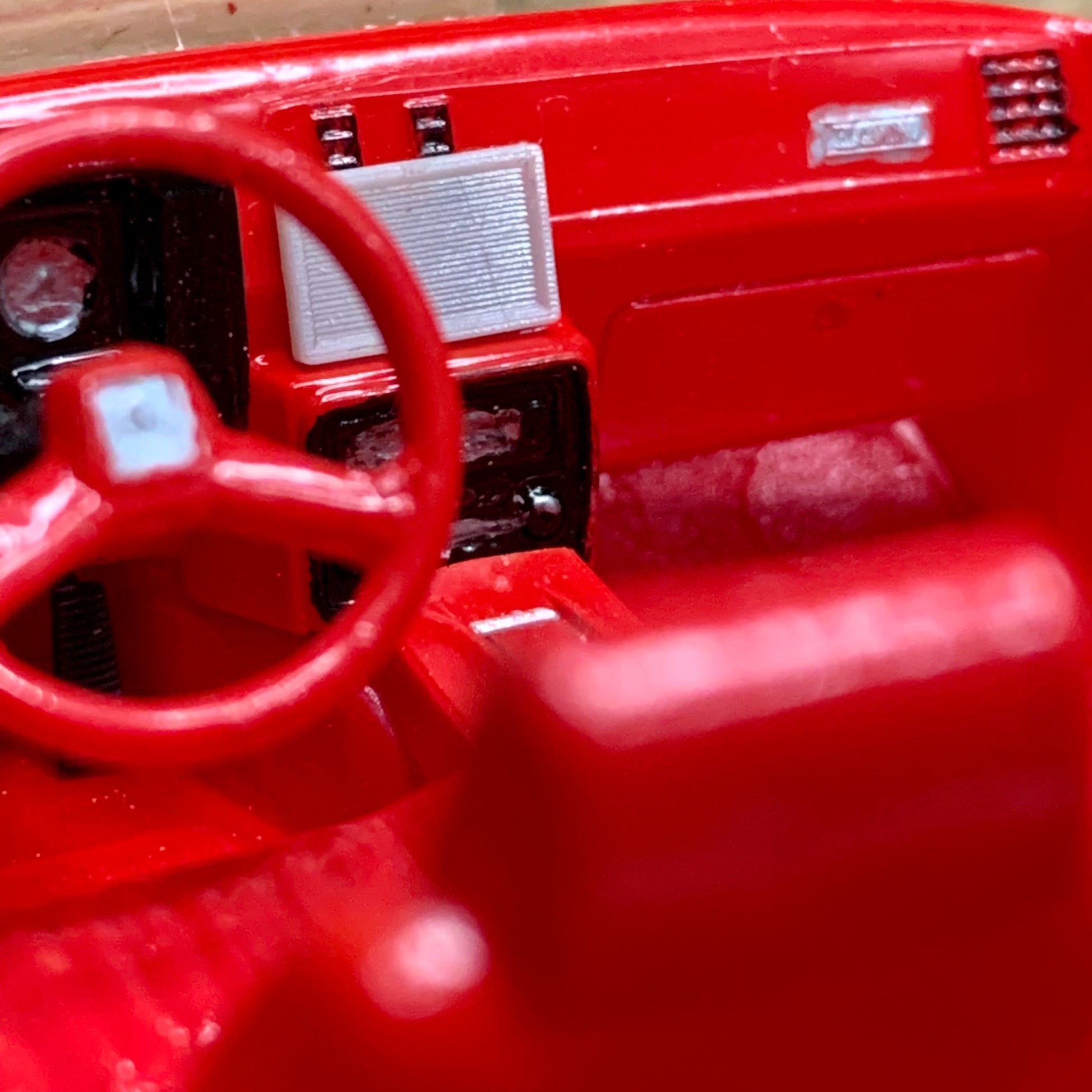 -These are a new redesigned version of the screens I use to sell. These are a tad bit larger, thicker with better bezel detail, so it looks like a scale screen and not a little flat rectangle. I just have the screen sitting on the dash in the pics just to give you a good understanding of the scale. These will look great detailed and installed in a custom interior and or truck etc. Please excuse the dust all over everything in the pics.