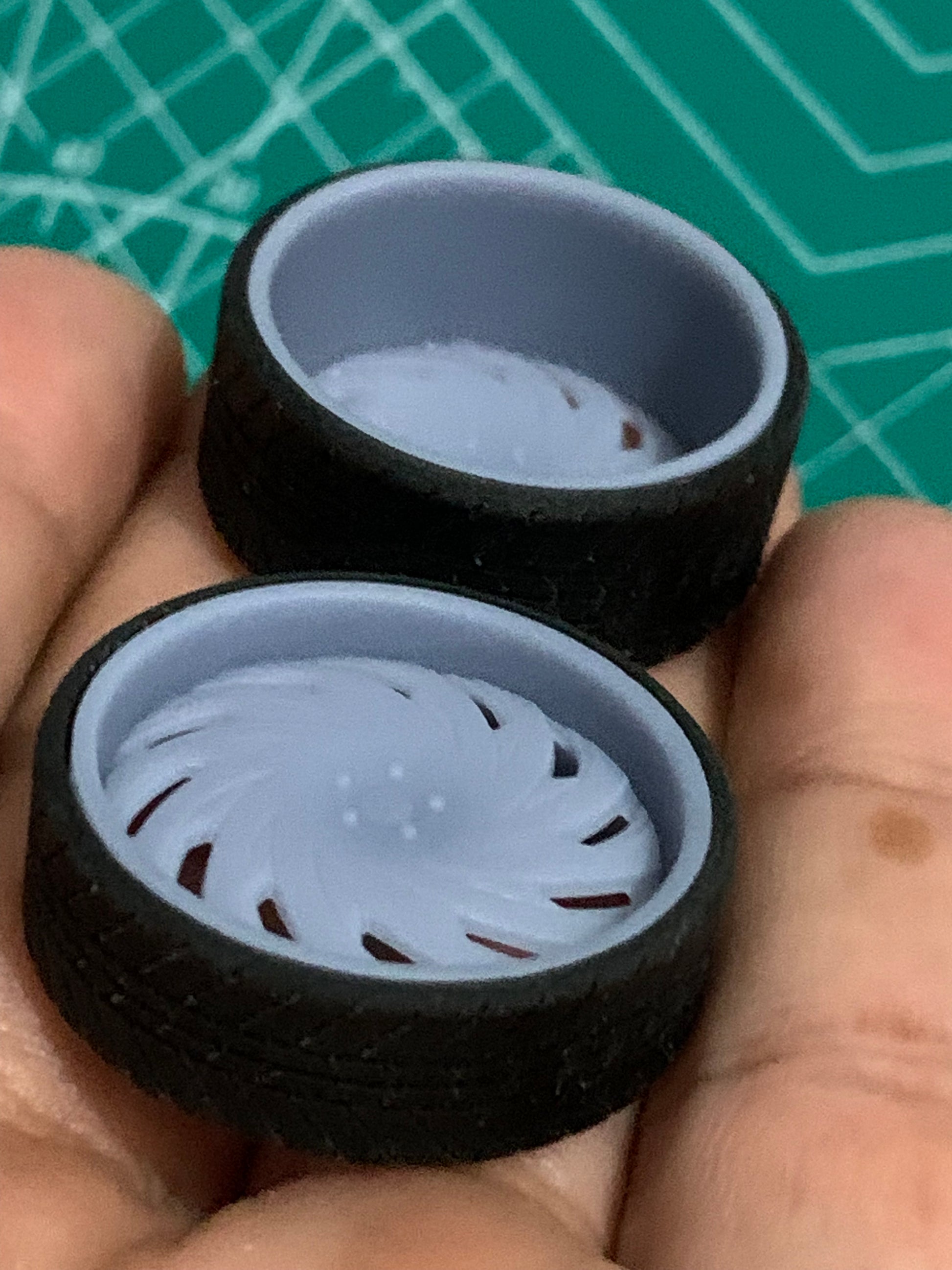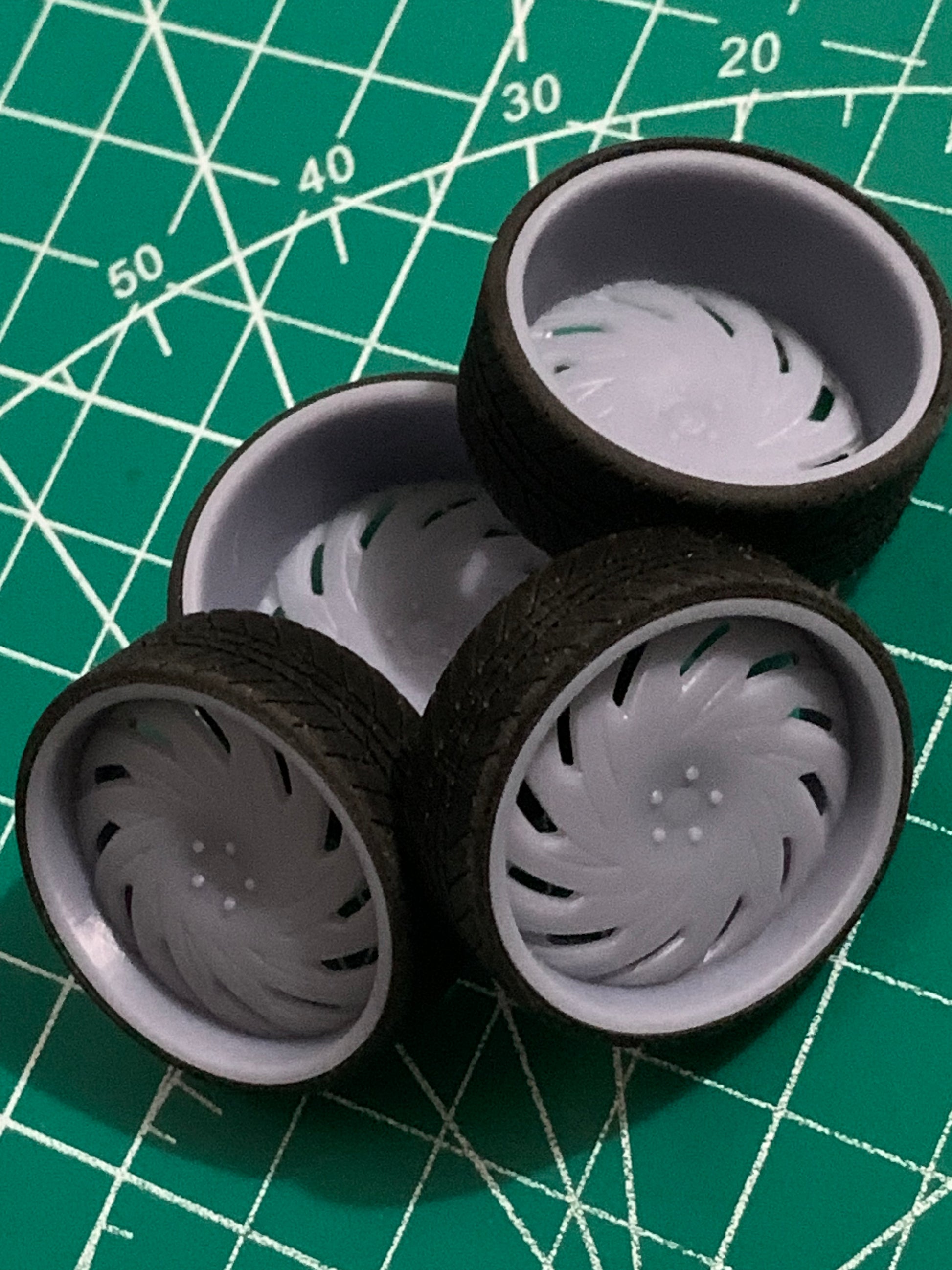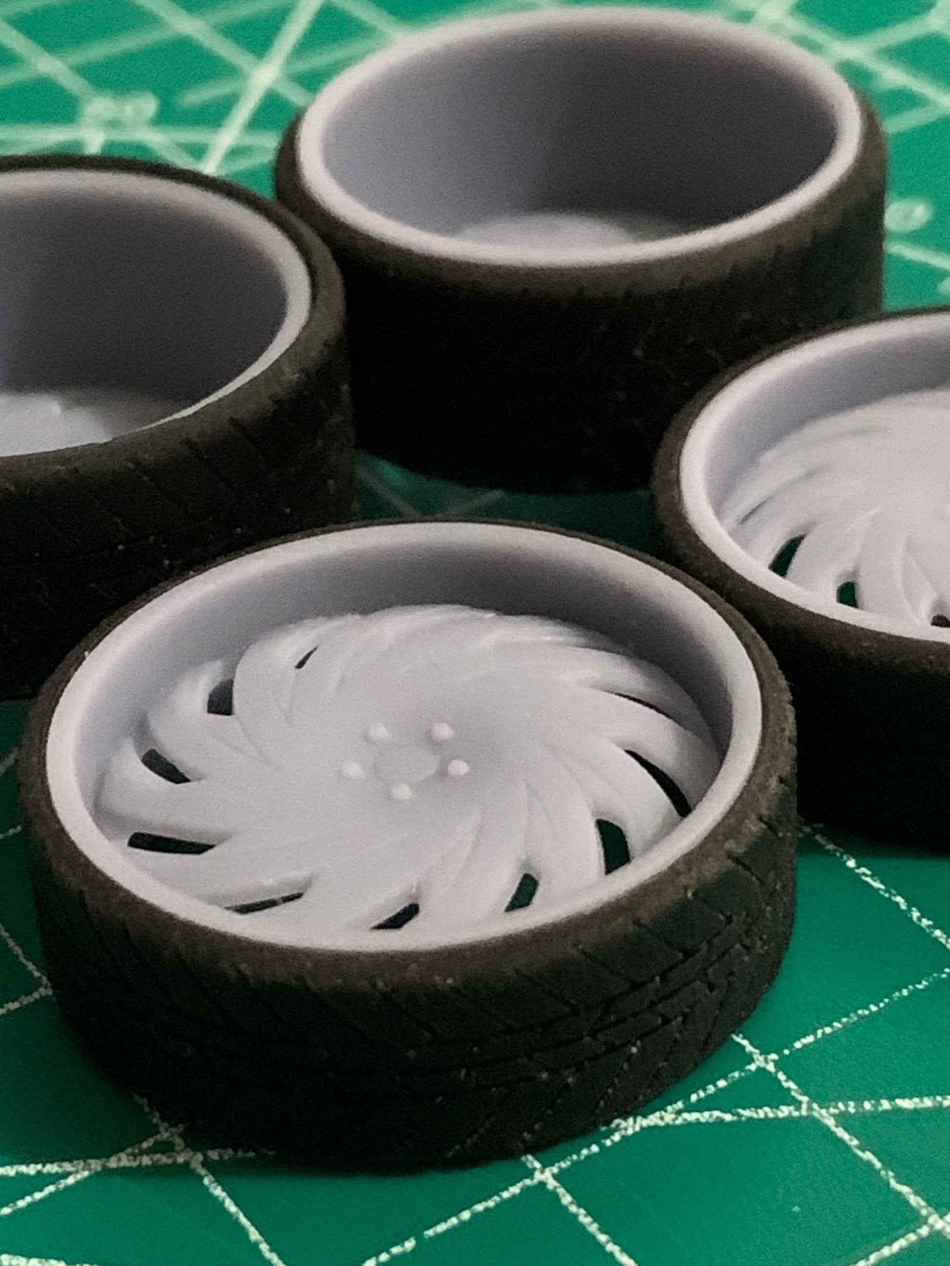 -3D printed resin wheels & tires for a 1/25 scale.