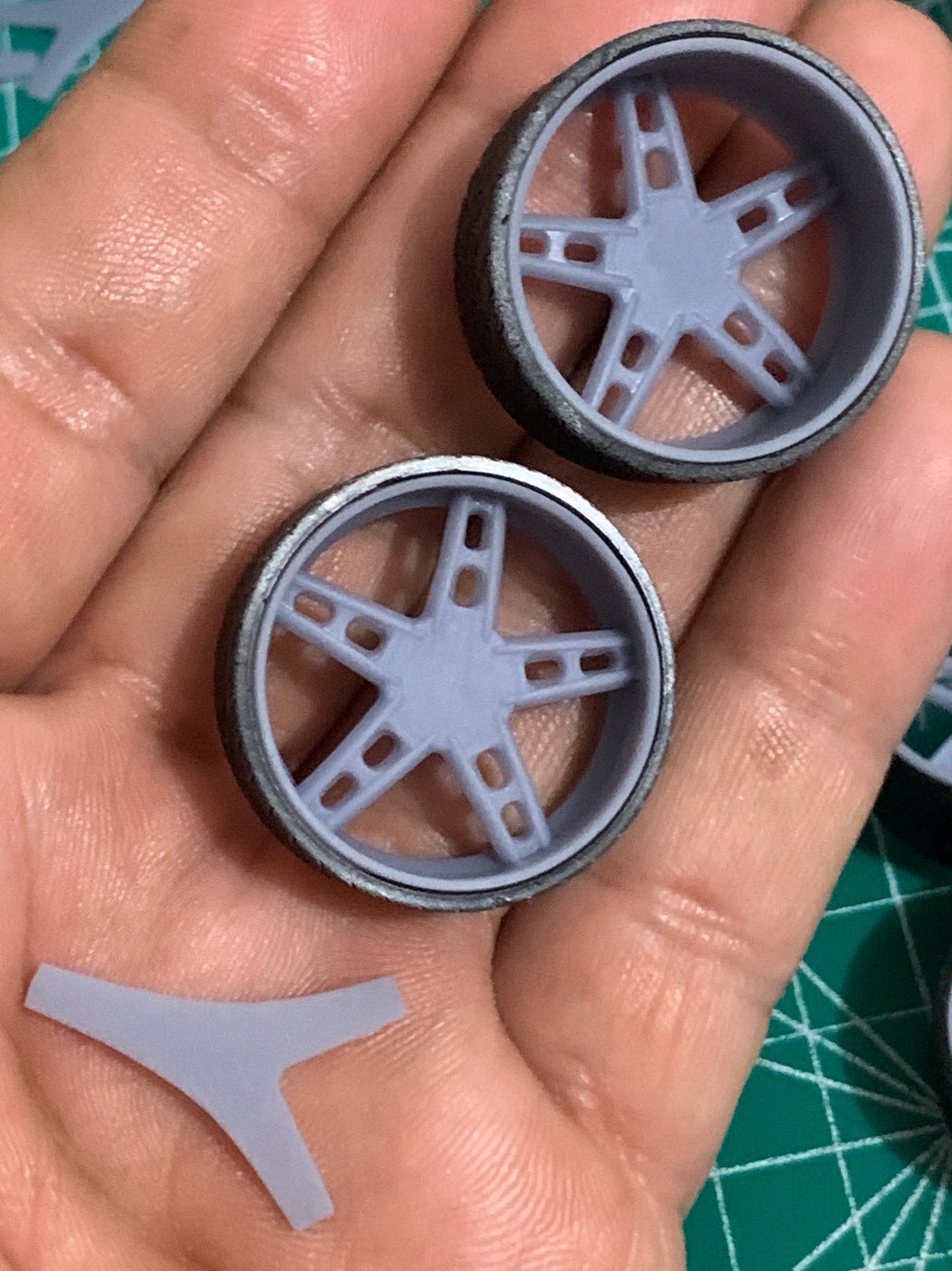 -3D printed resin wheels & tires for a 1/25 scale.
