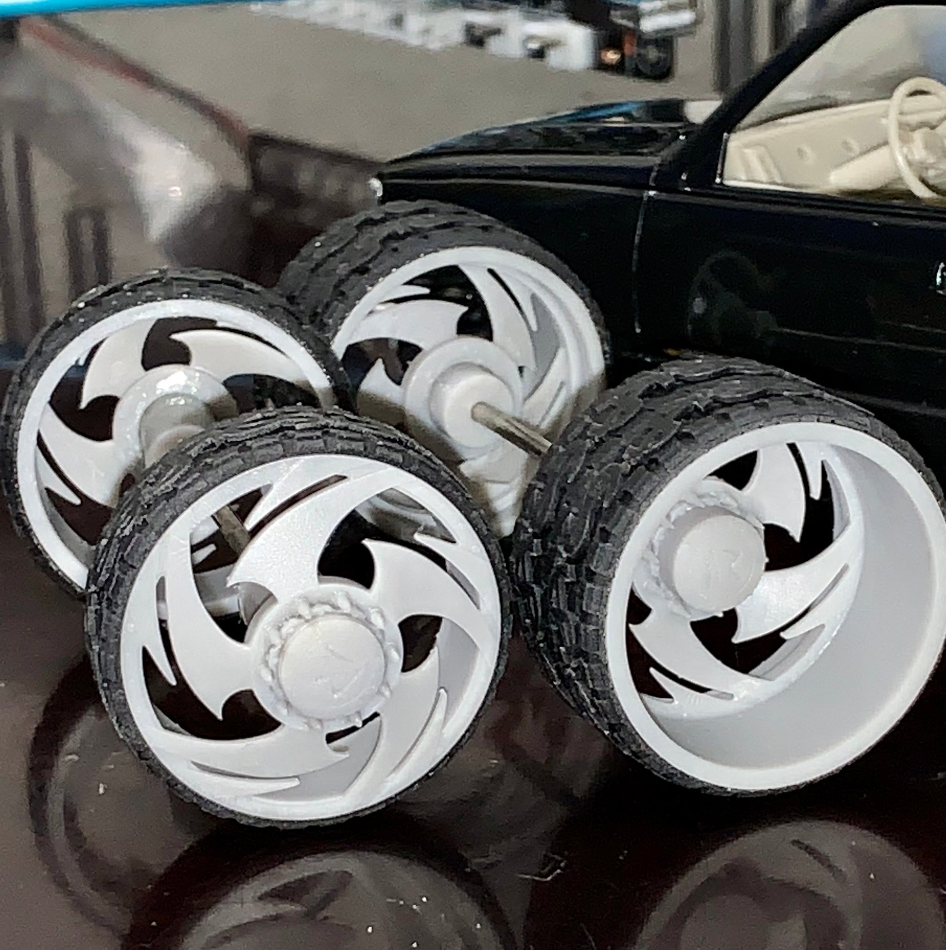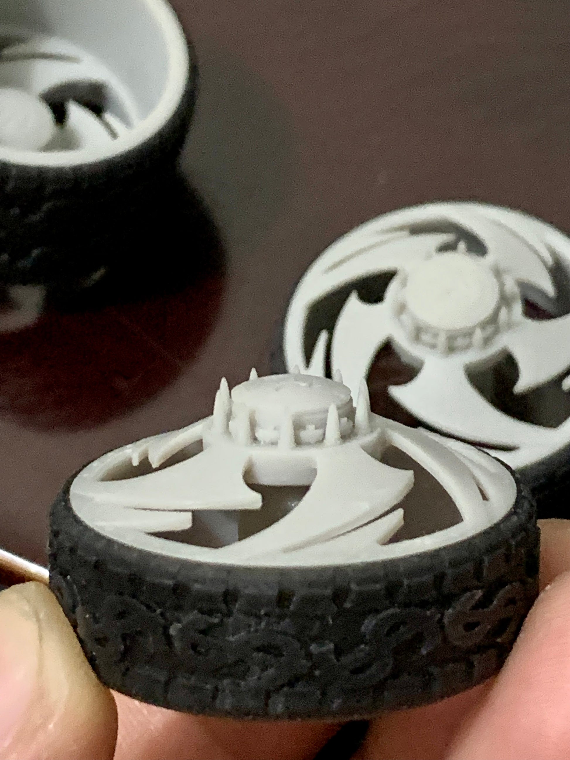 - 3D printed 32" resin wheels & tires for a 1/25 scale model.