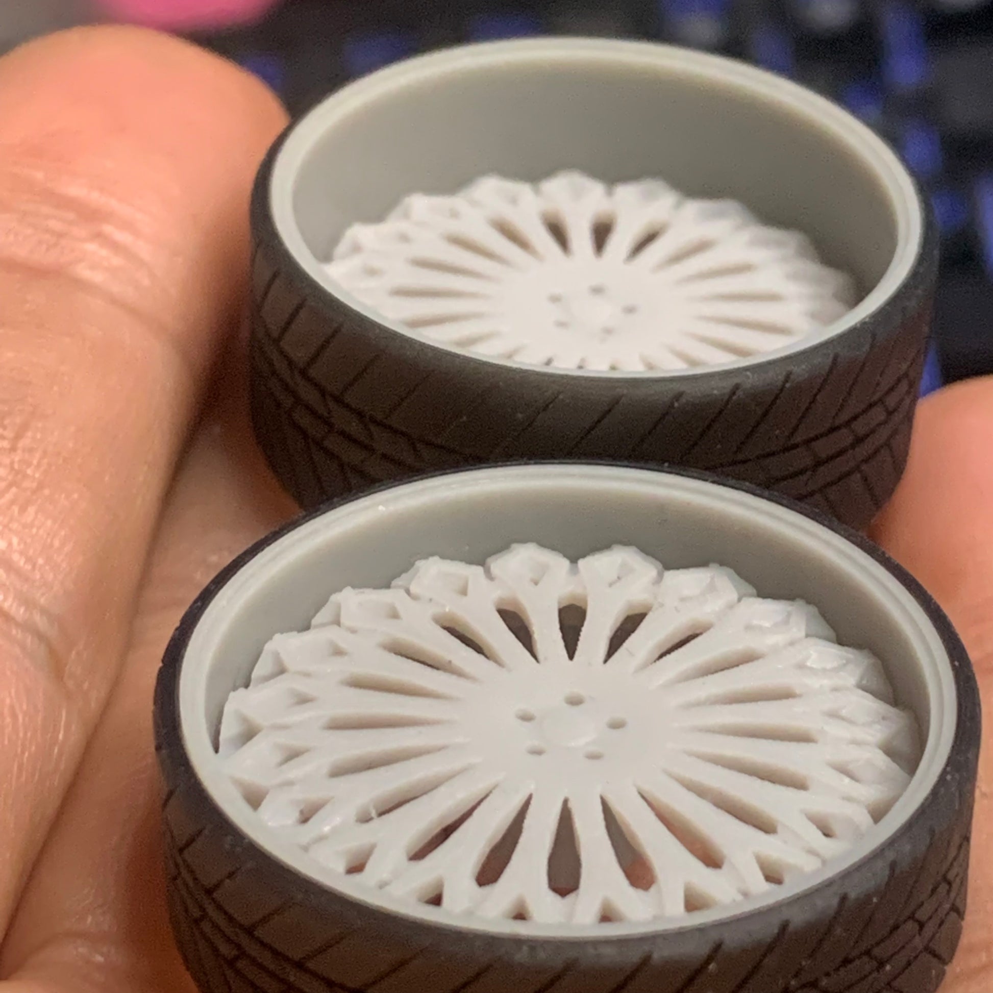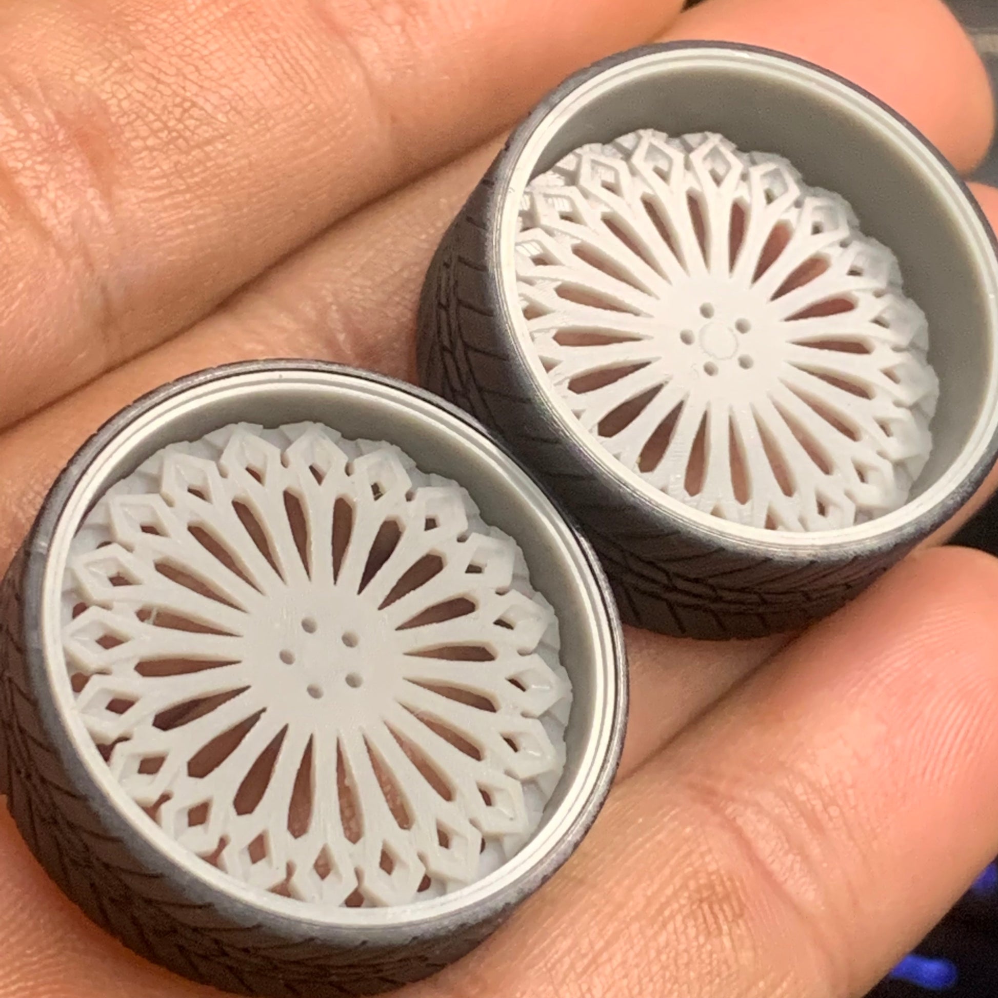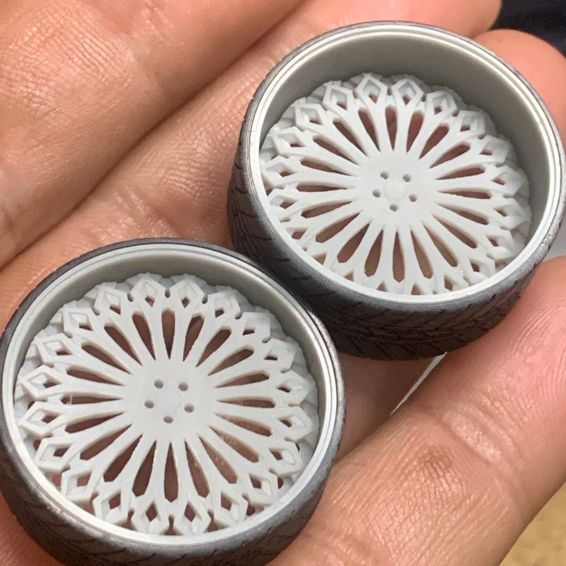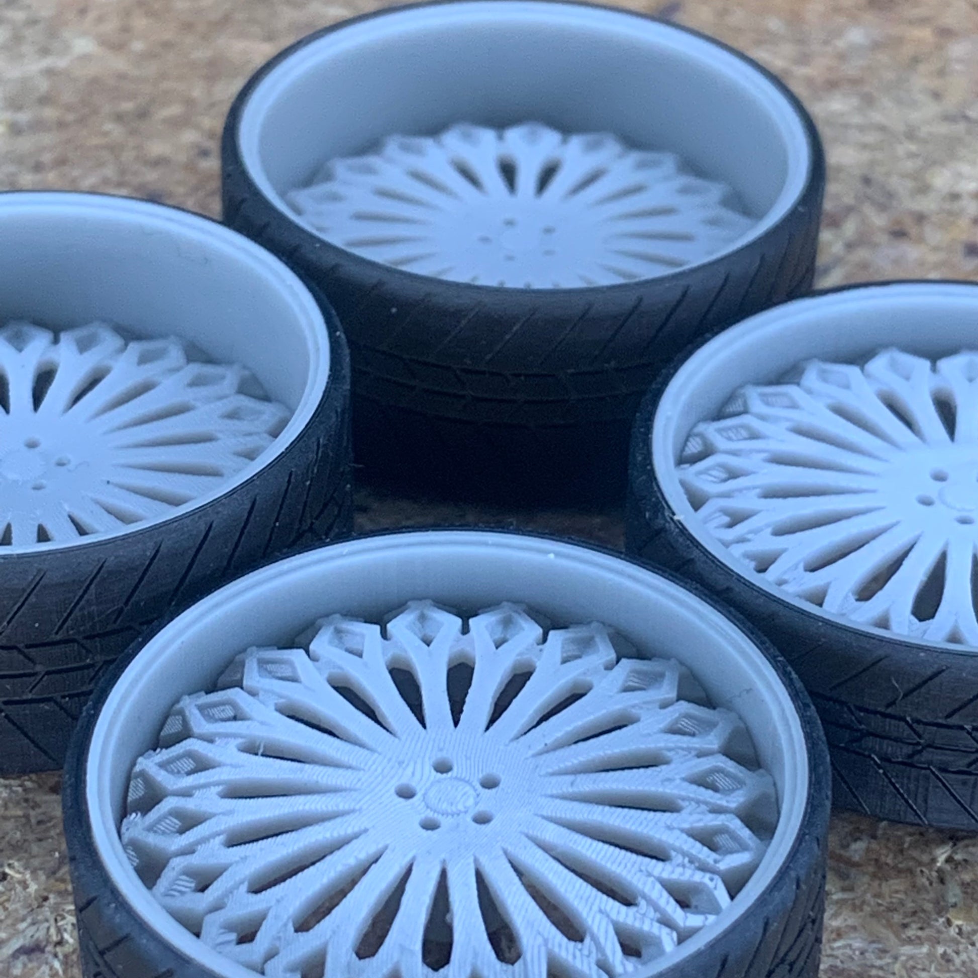 -3D printed resin wheels & tires for a 1/25 scale.