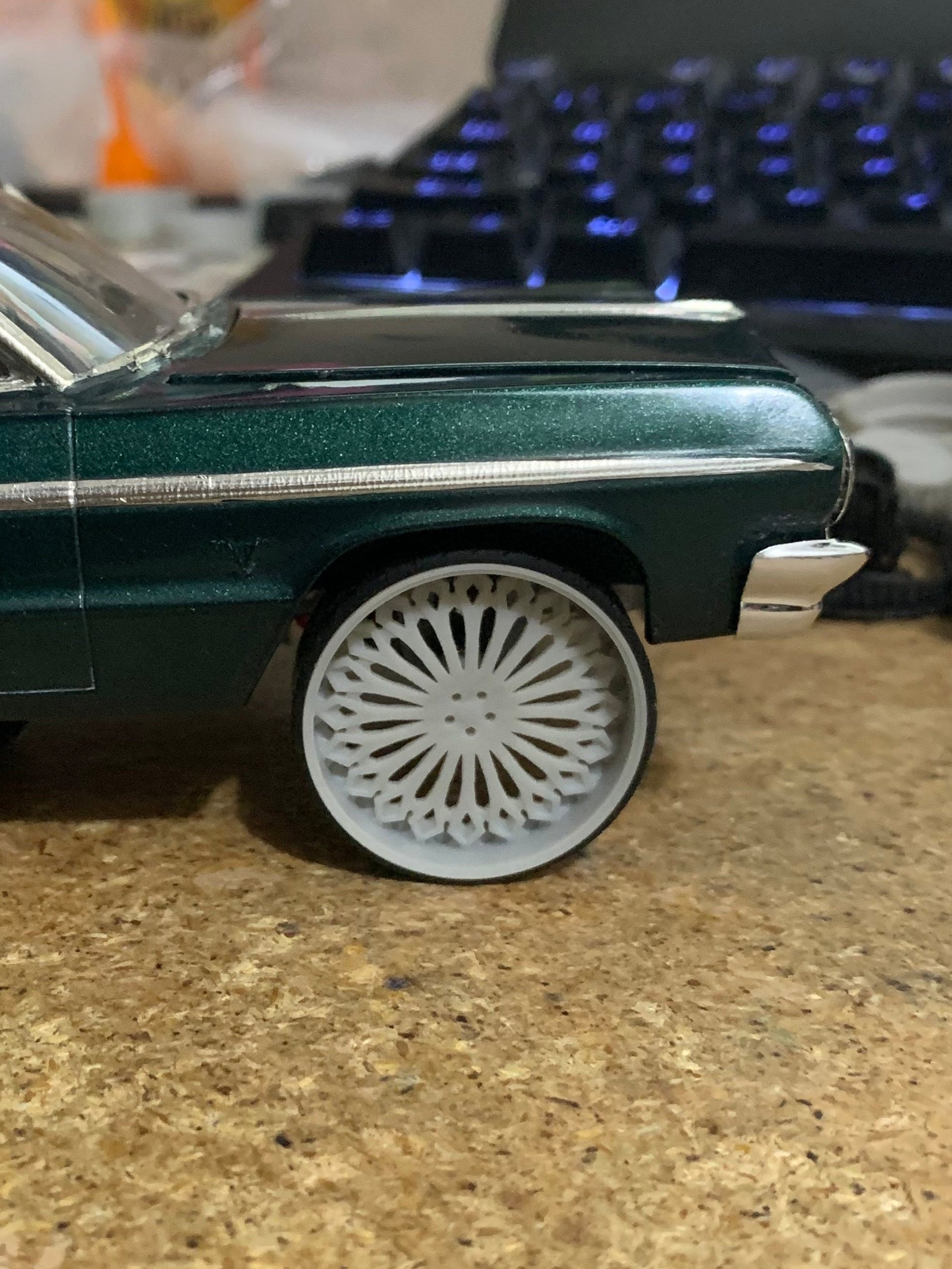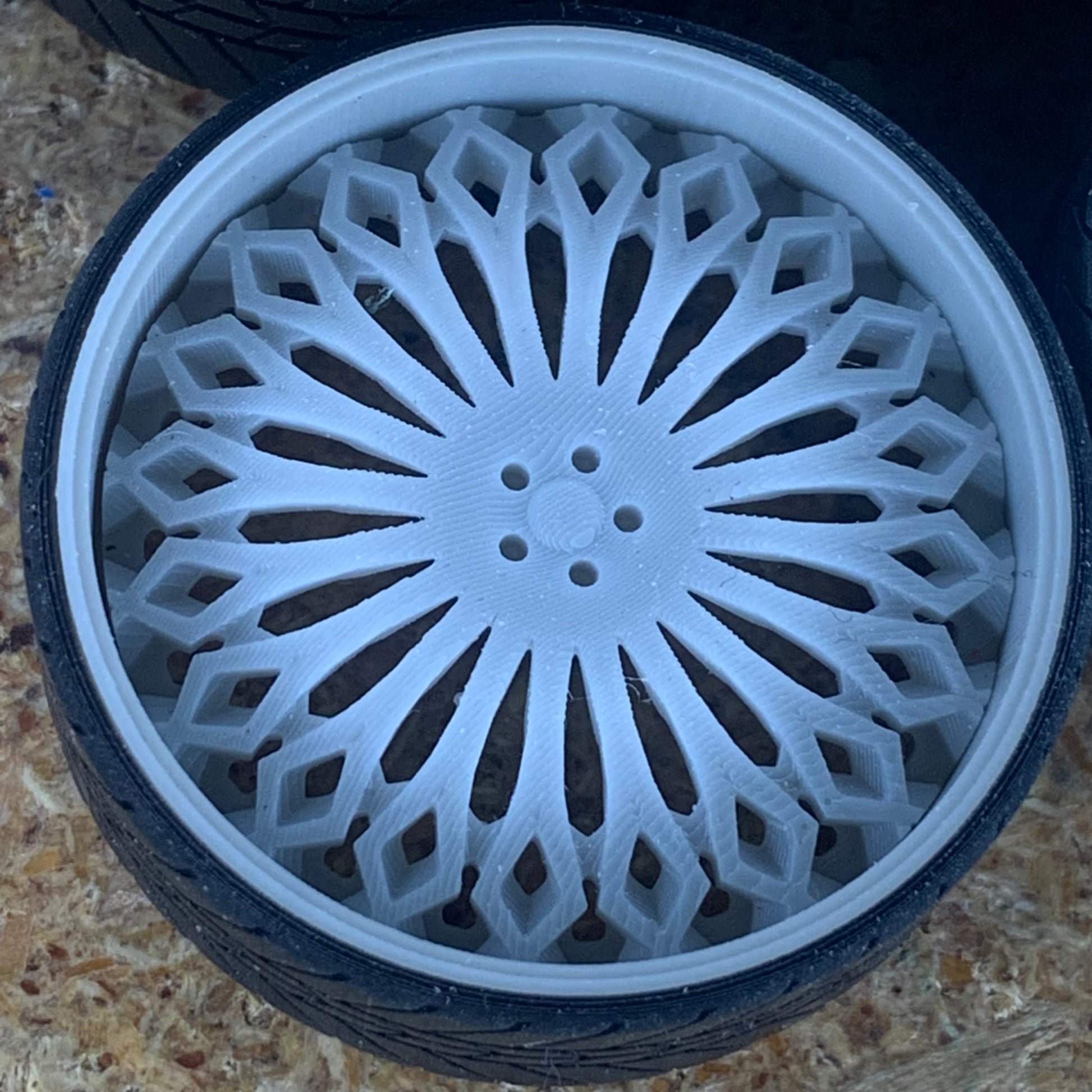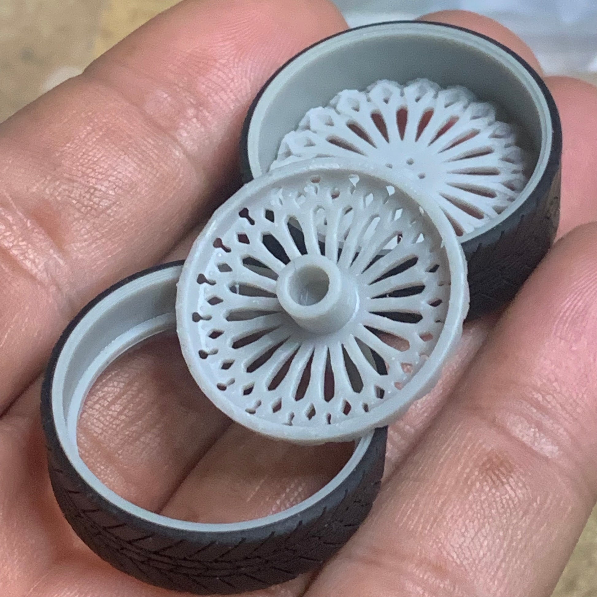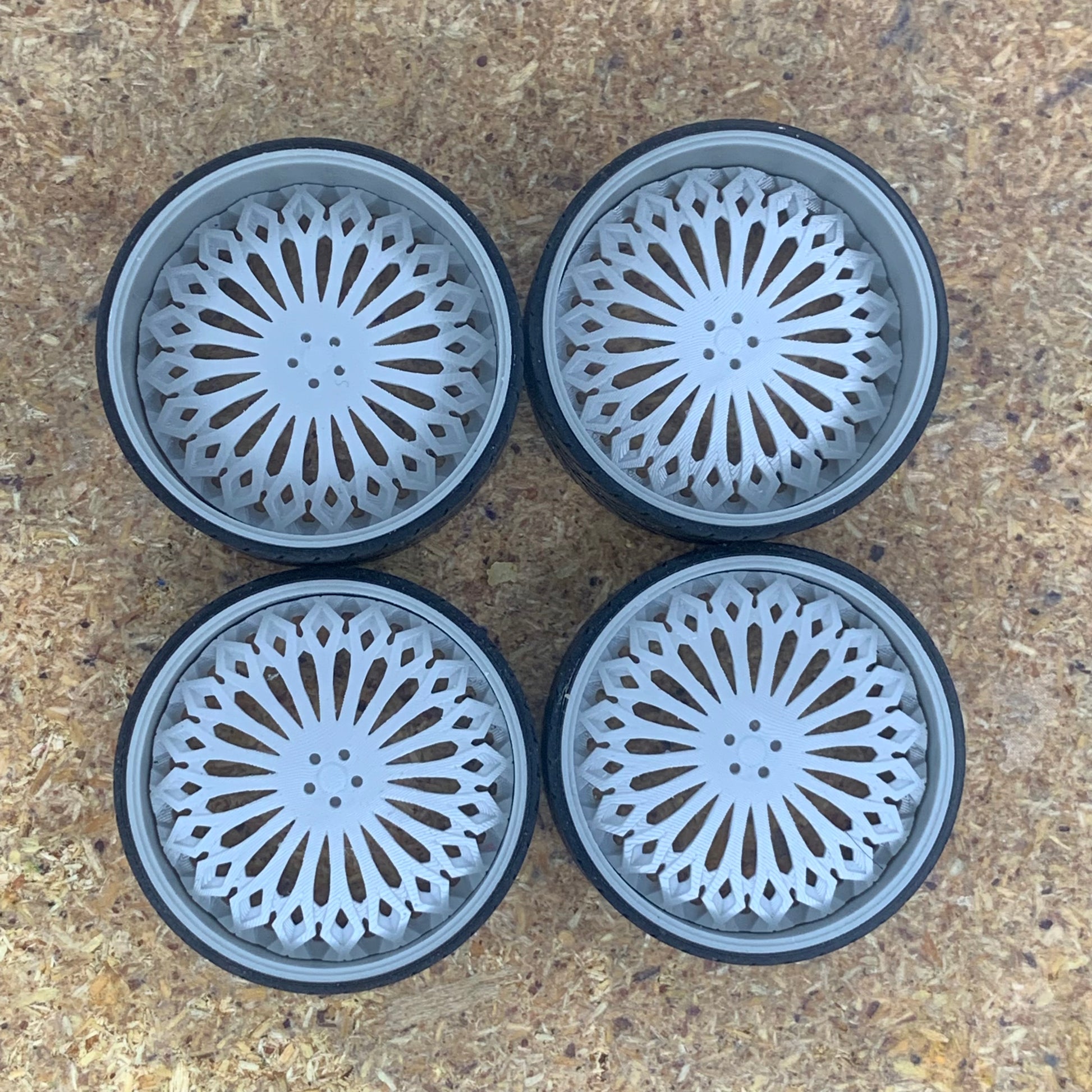 -3D printed resin wheels & tires for a 1/25 scale.